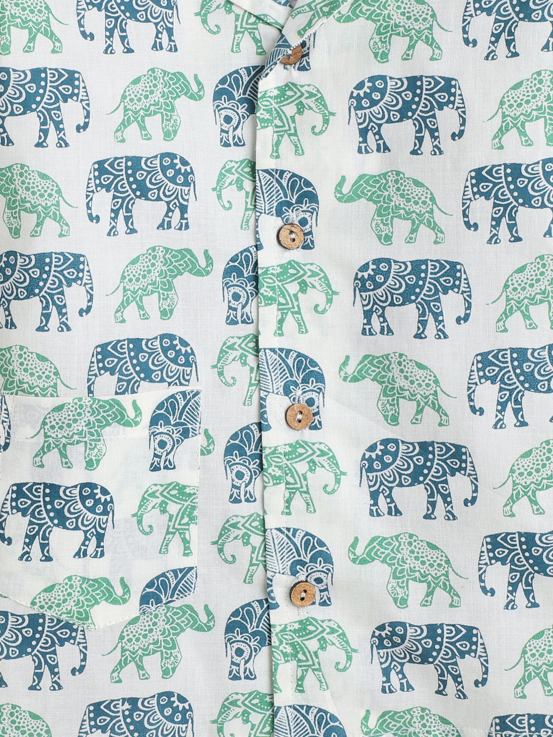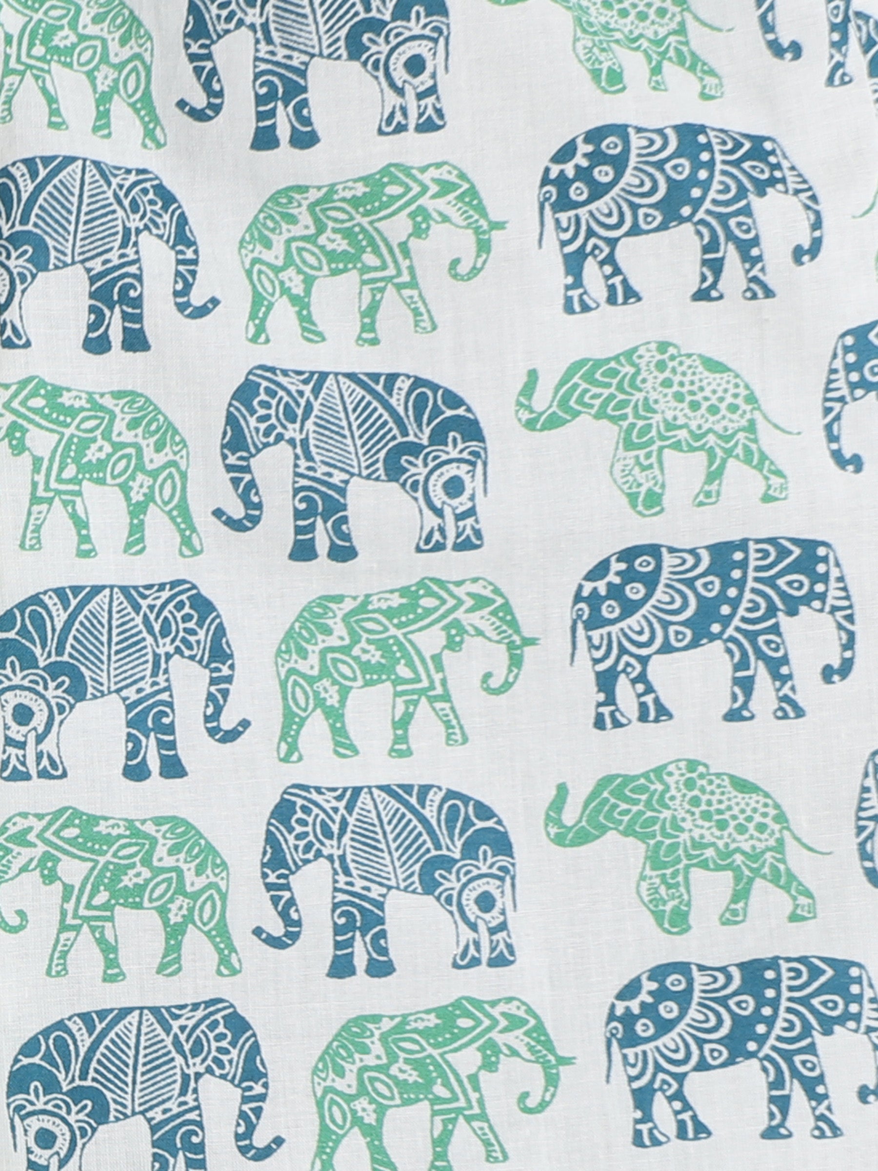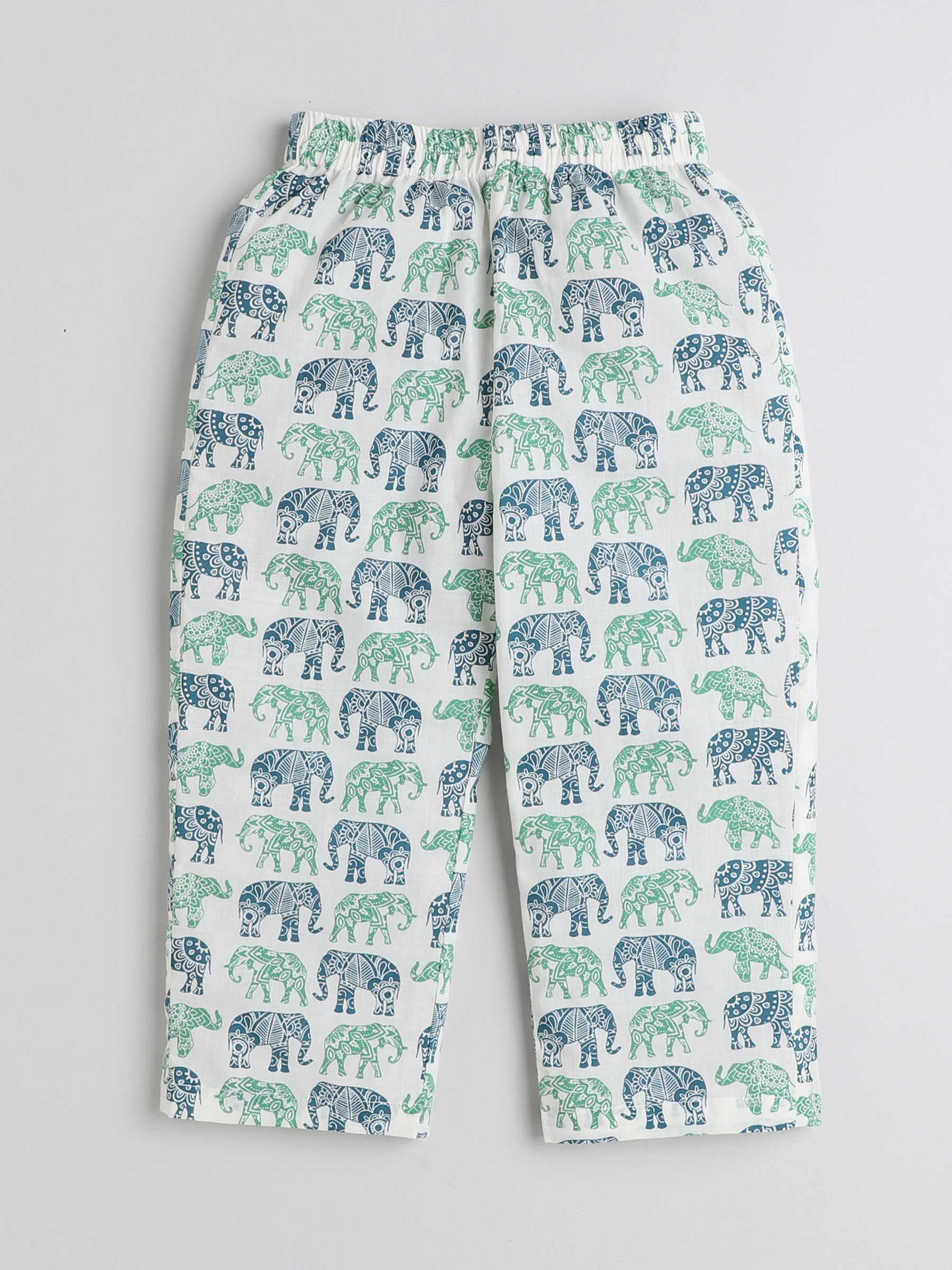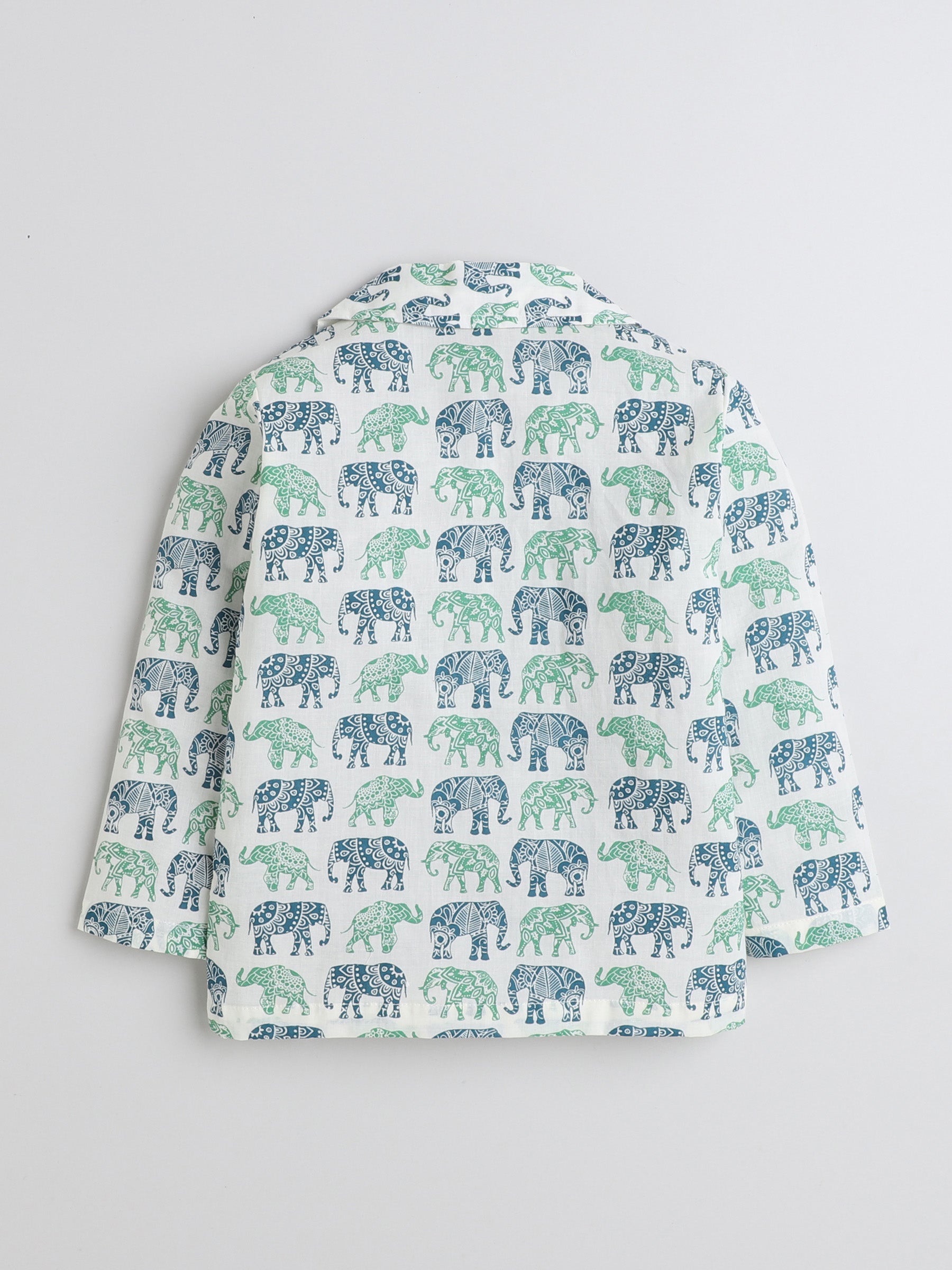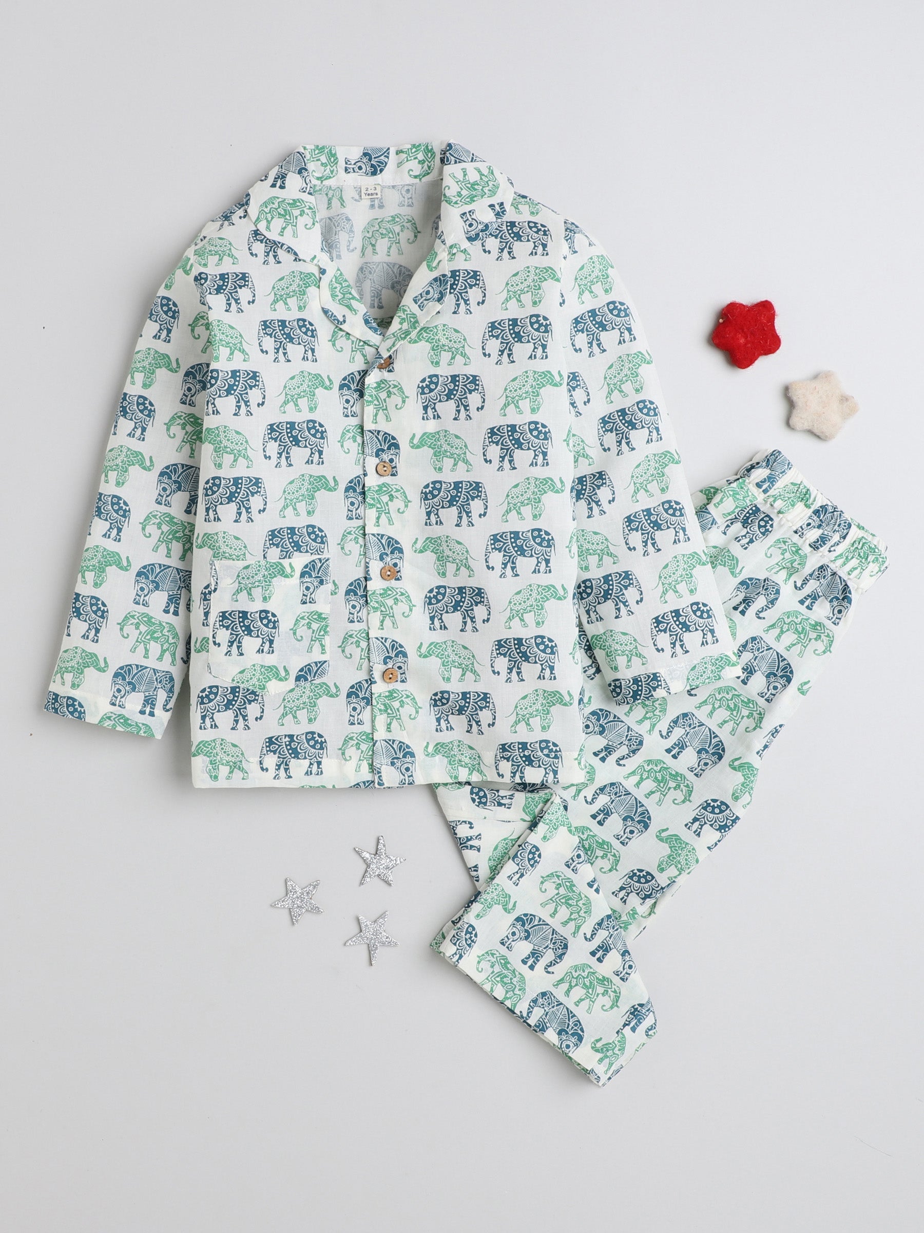 Full Sleeves Elephant Printed Cotton Lounge Wear Night Suit Set For Kids Blue