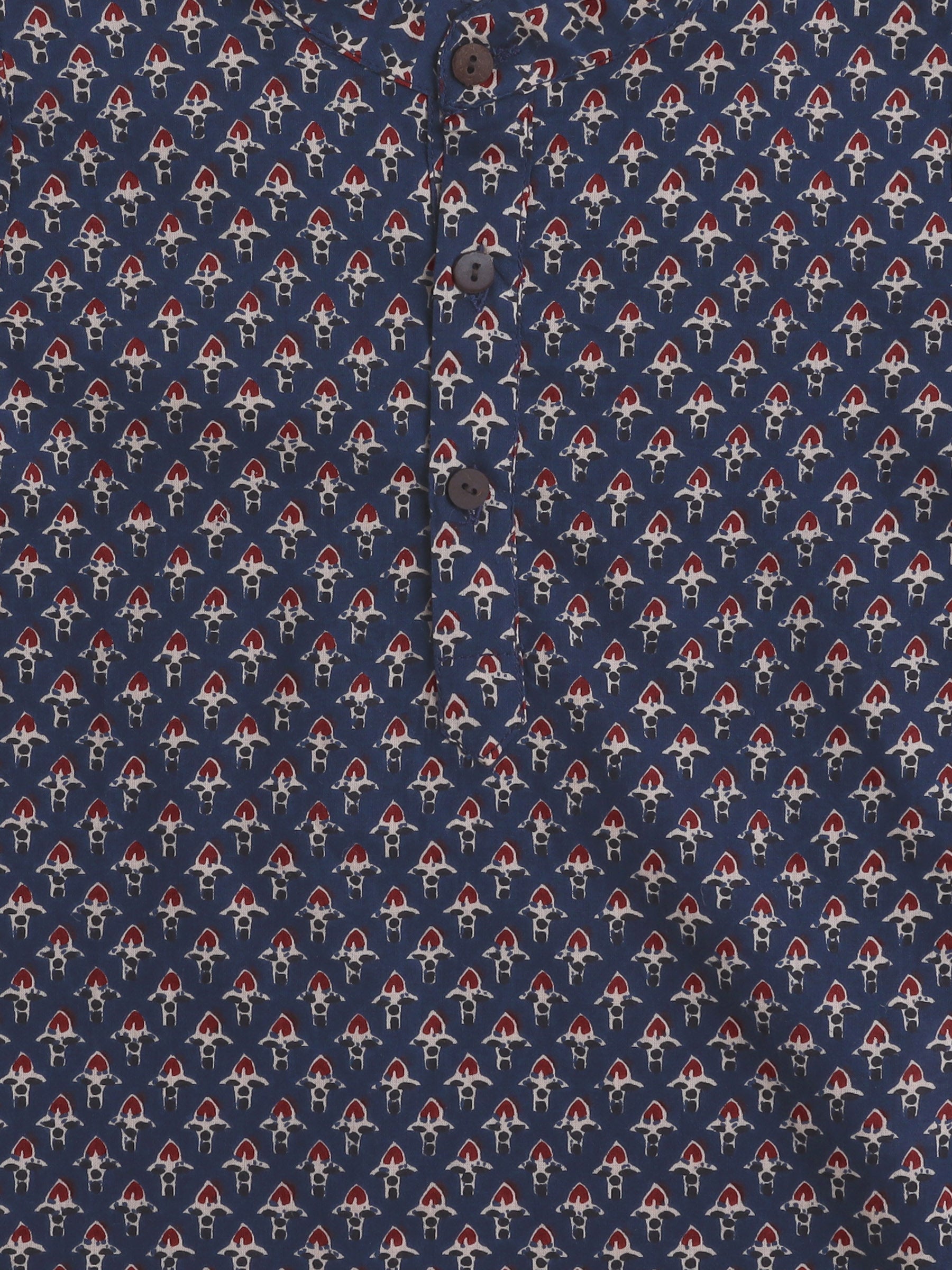 Full Sleeves Floral Print Dhoti Kurta Set- Navy Blue