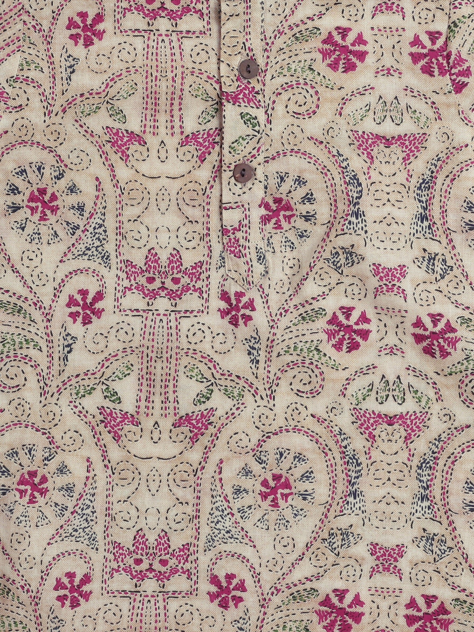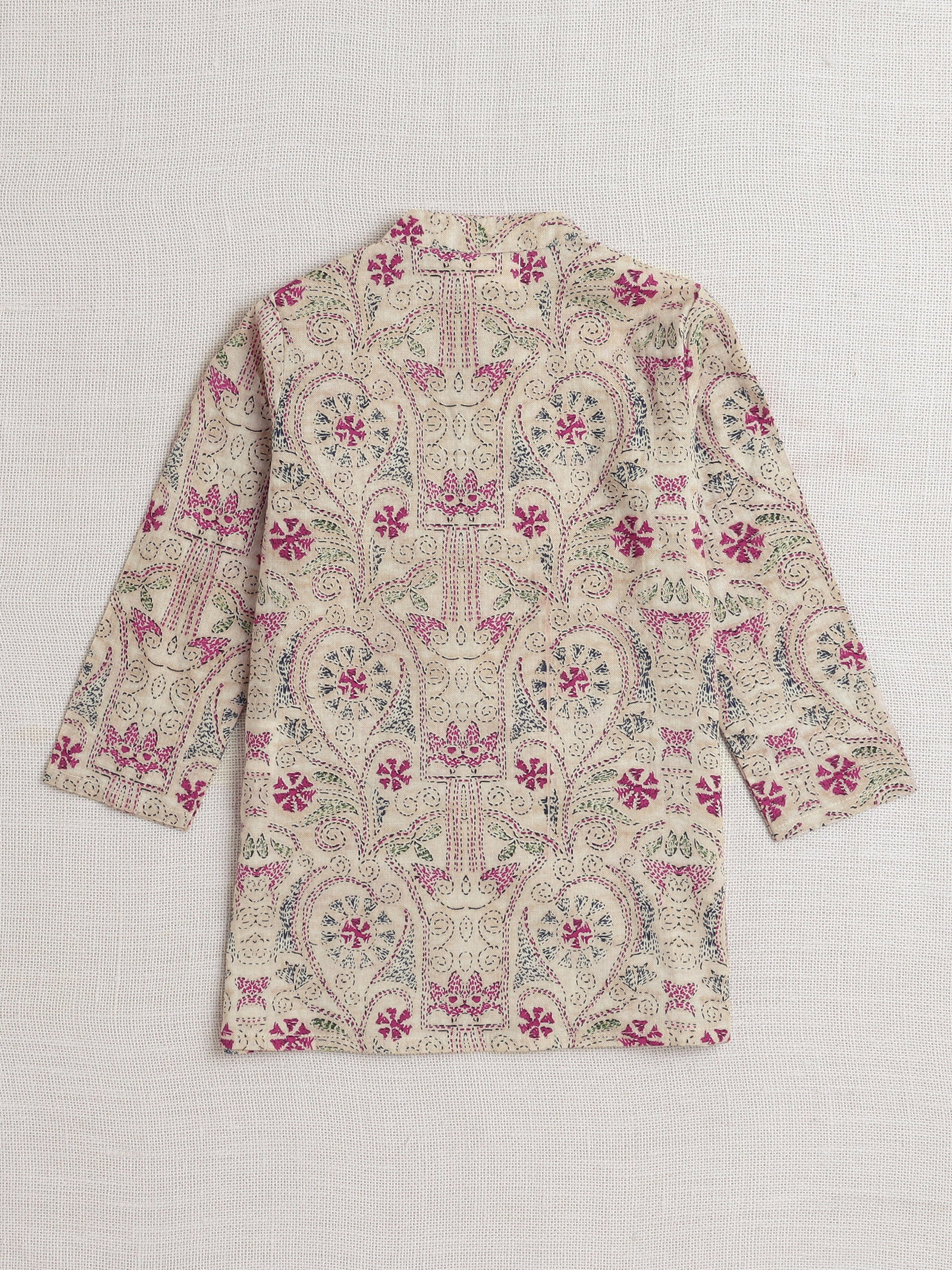 Full Sleeves Floral Print Dhoti Kurta Set- Off White