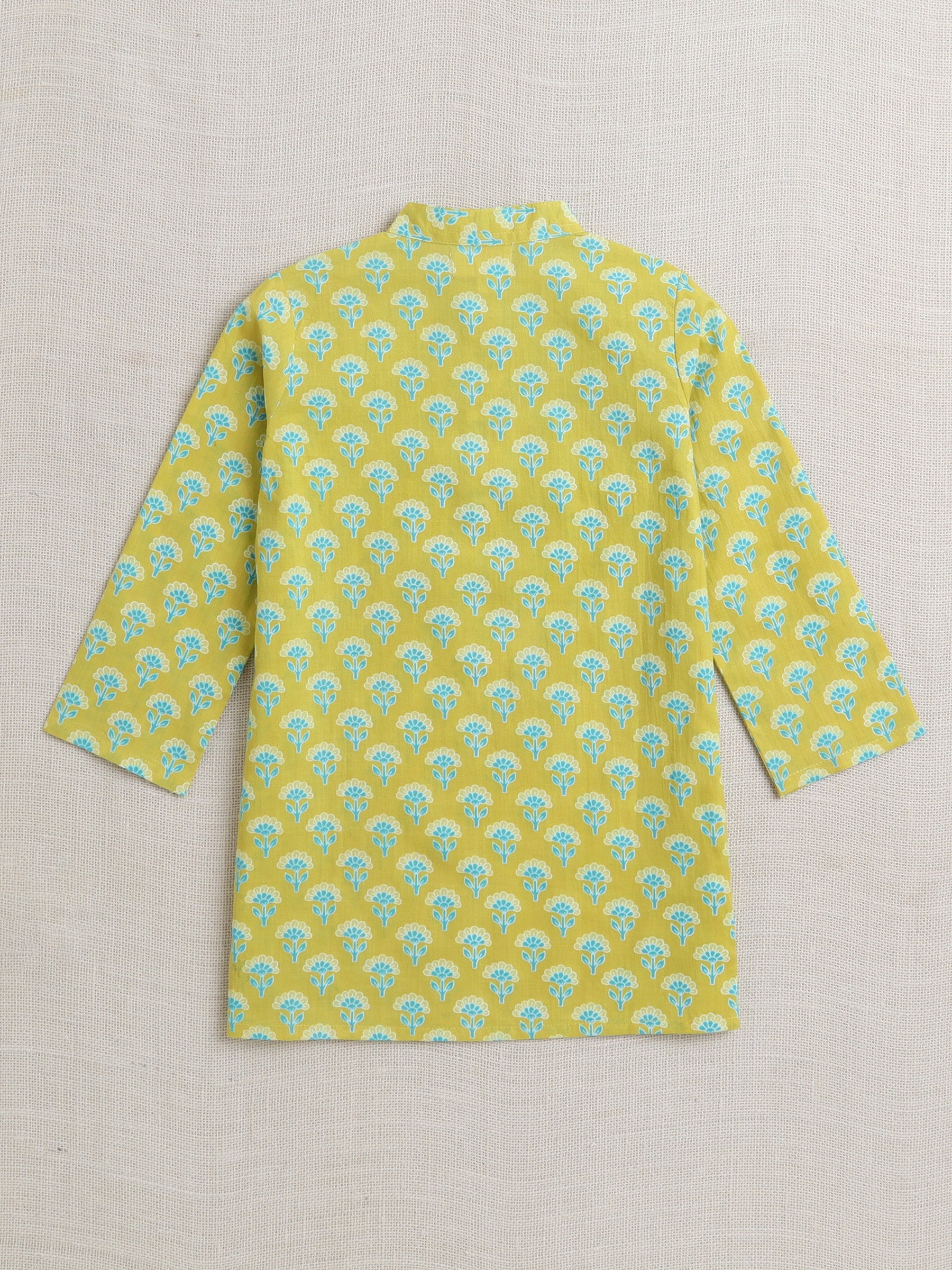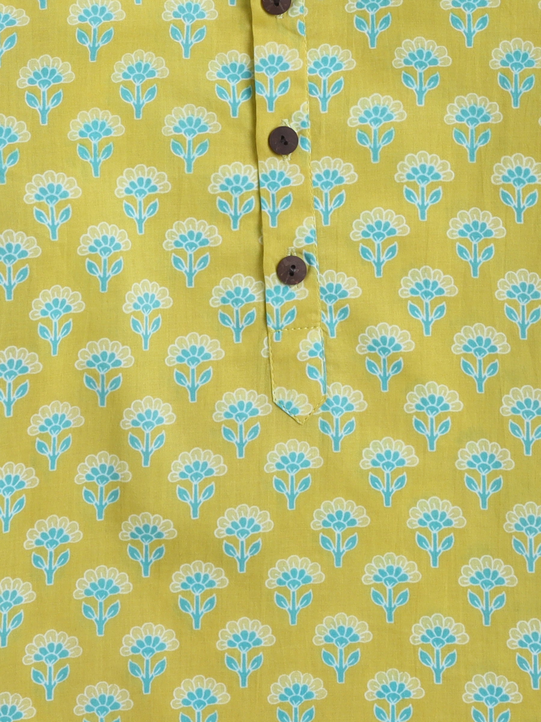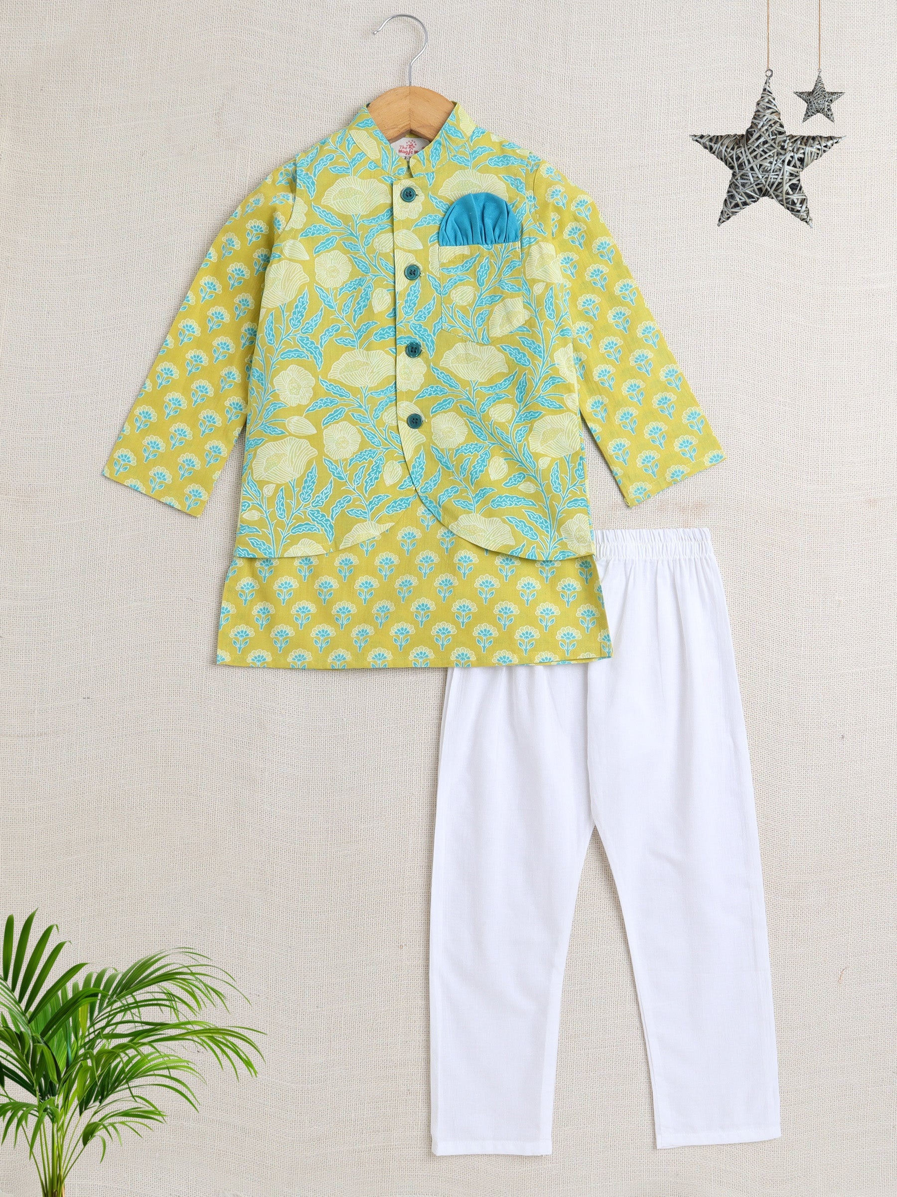 Full Sleeves Floral Printed Kurta Pyjama With Jacket Set - Green
