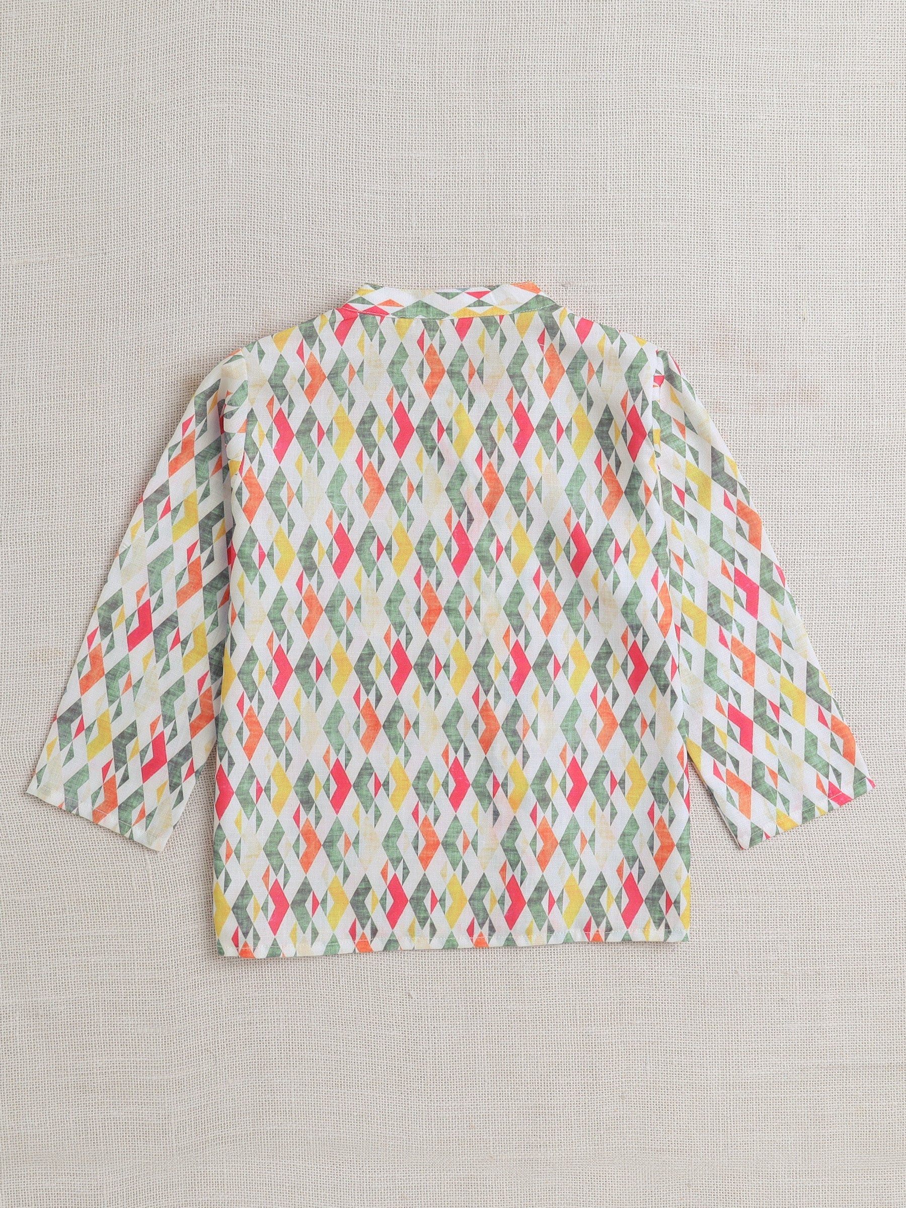 Full Sleeves Ikat Printed Kurta & Dhoti Set - Multi Colour