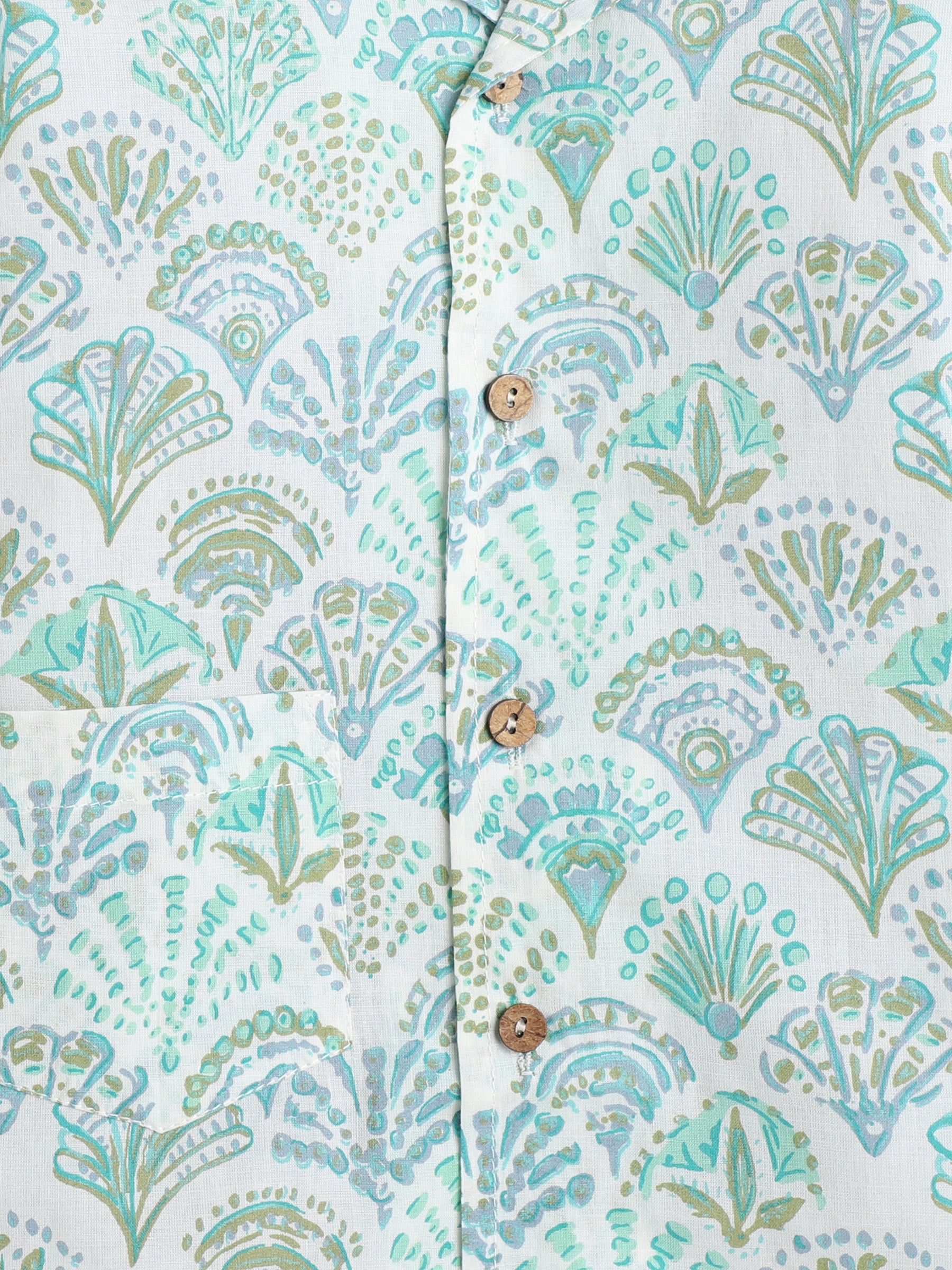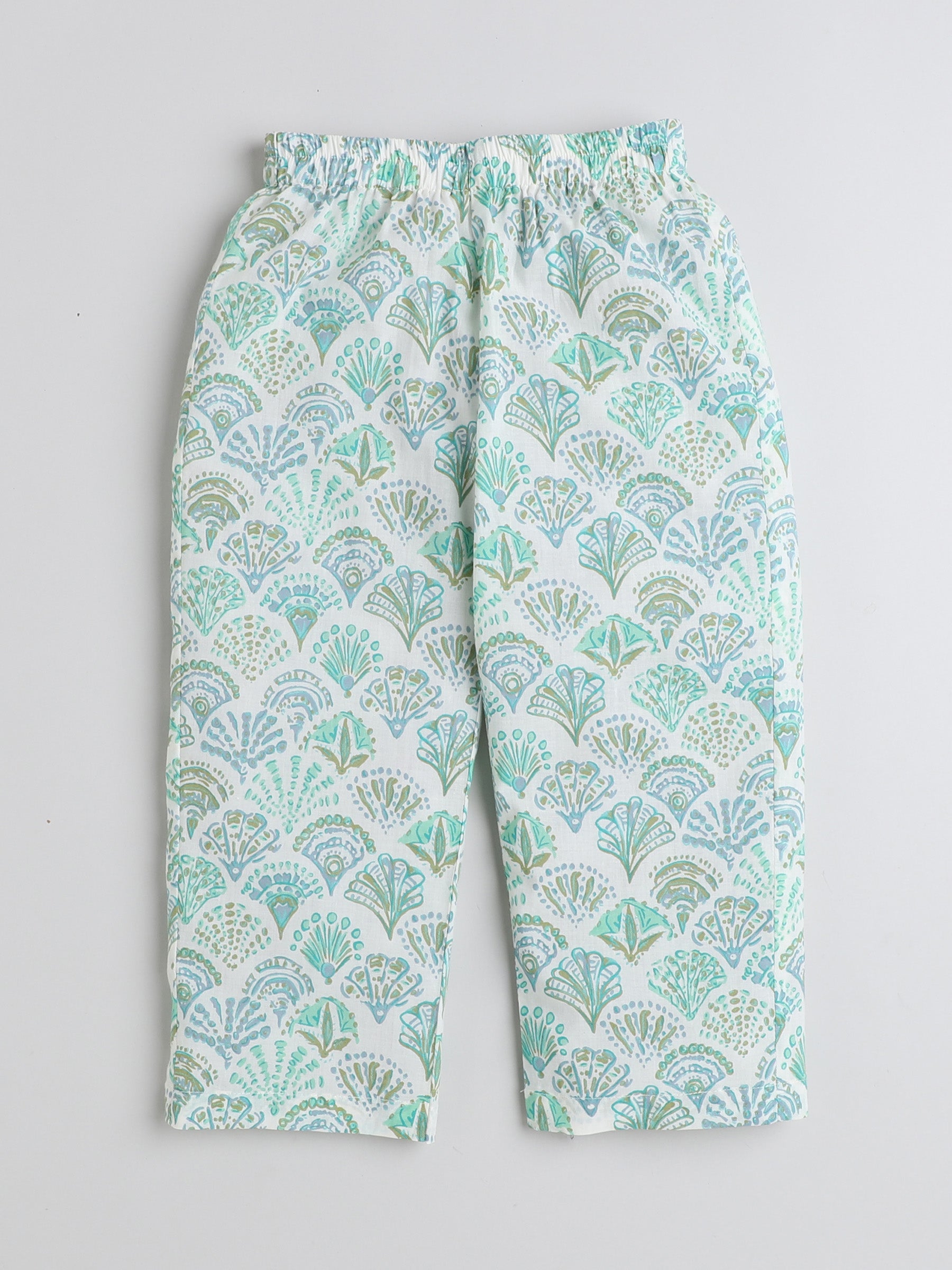 Full Sleeves Leaf Printed Cotton Lounge Wear Night Suit Set For Kids Blue