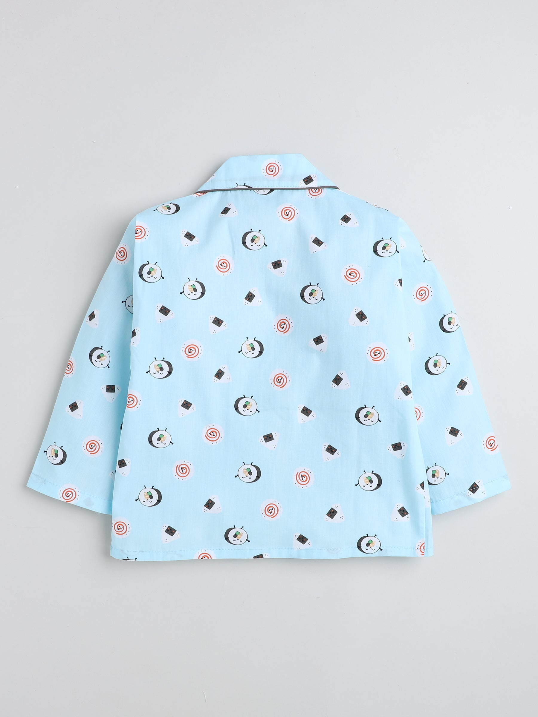 Full Sleeves Printed Lounge Wear Night Suit Set For Kids Sky Blue