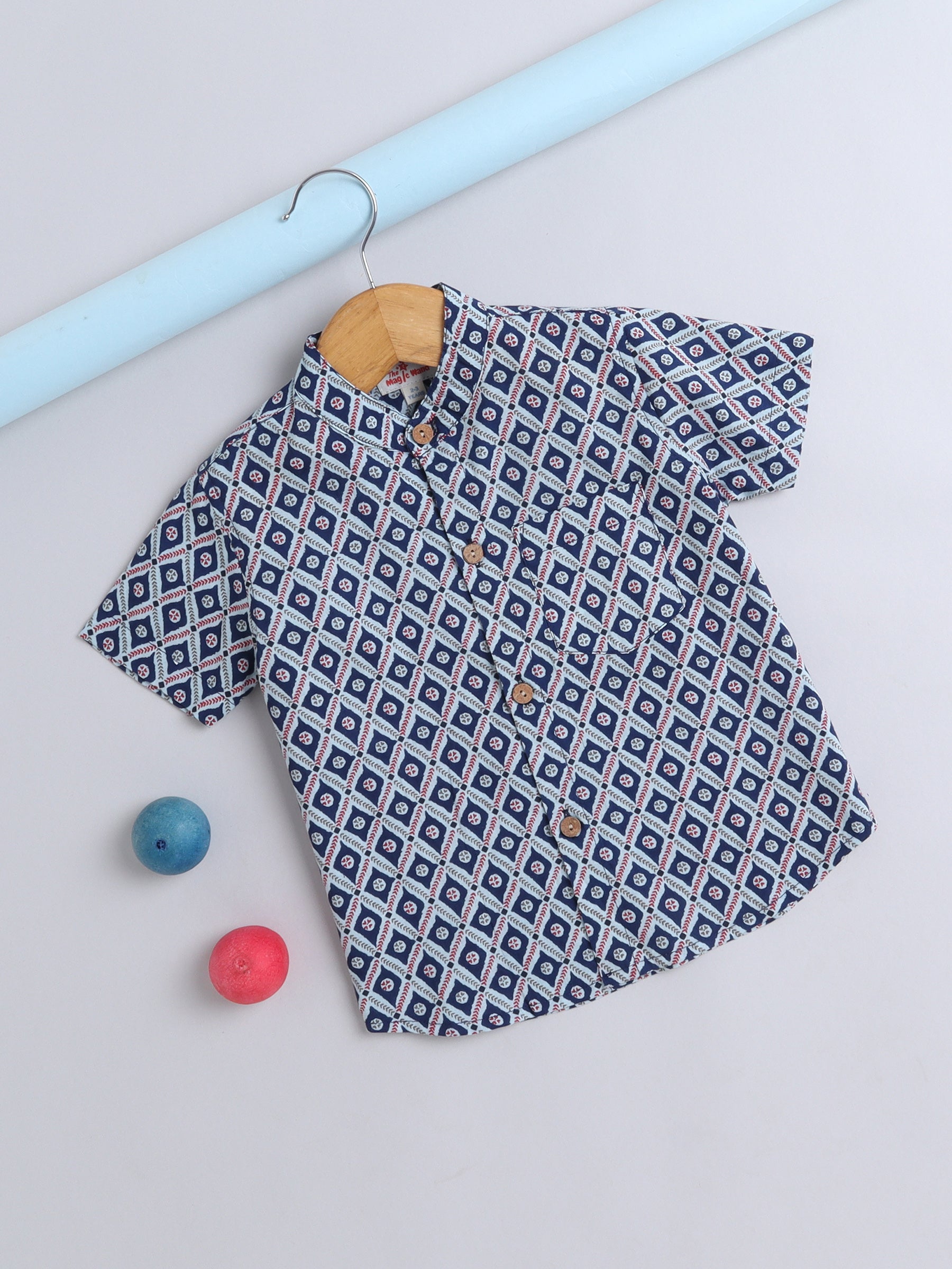 Half Sleeve Block Printed Shirt - Blue