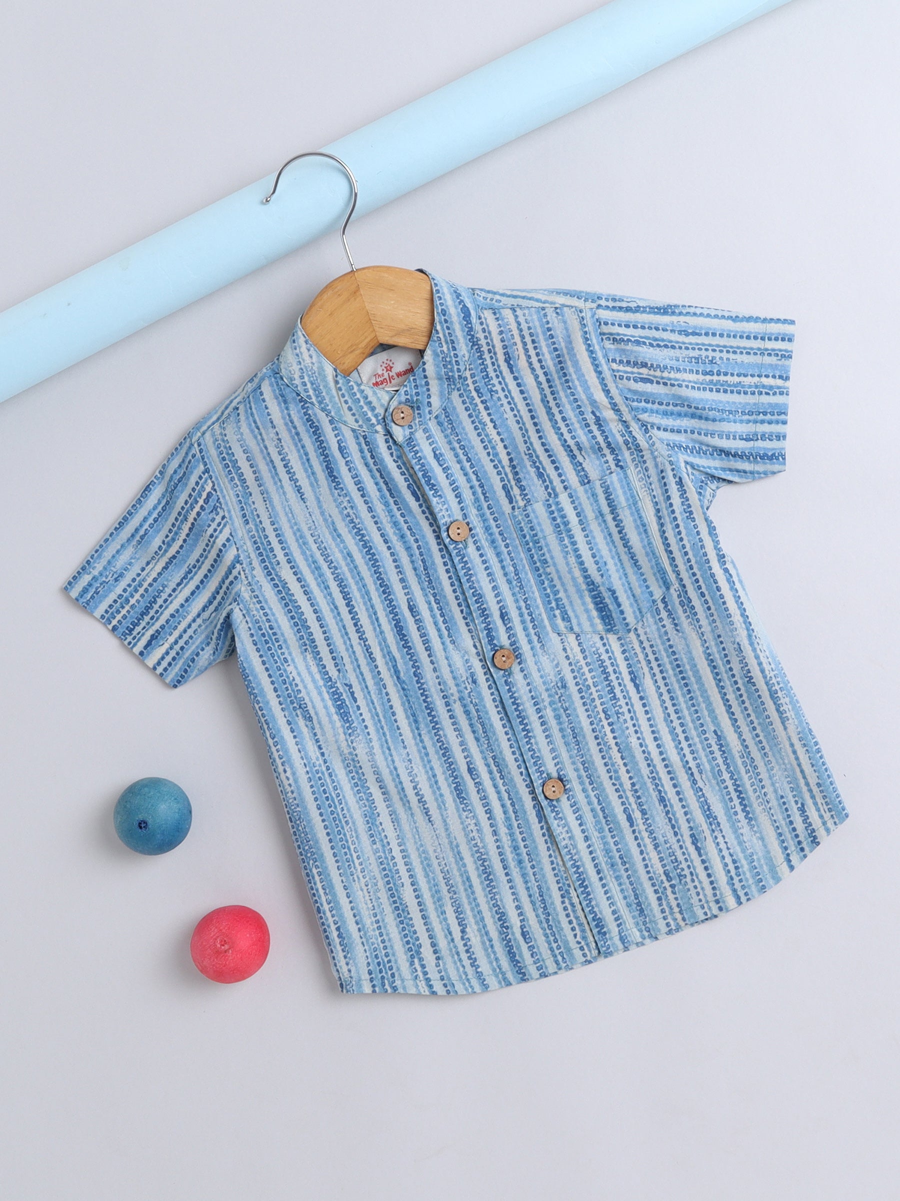 Half Sleeve Stripe Printed Shirt - Blue