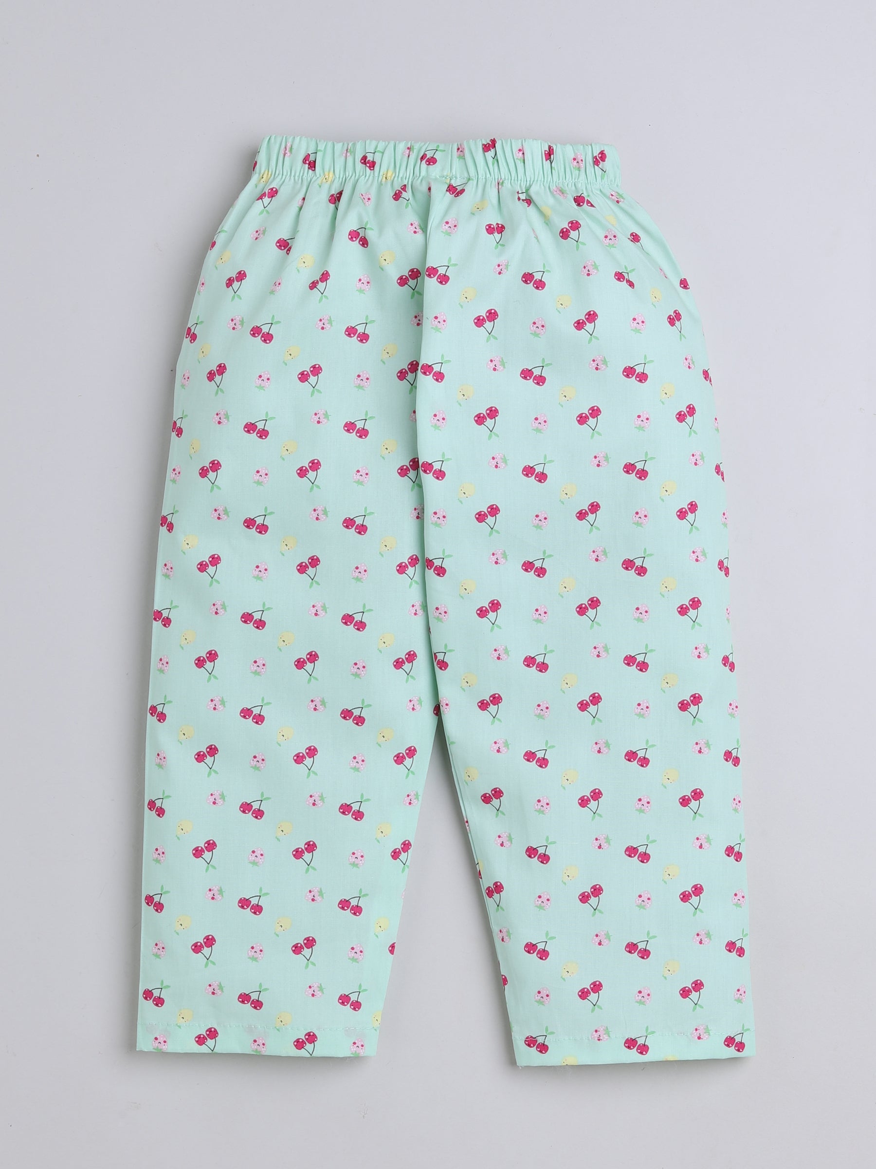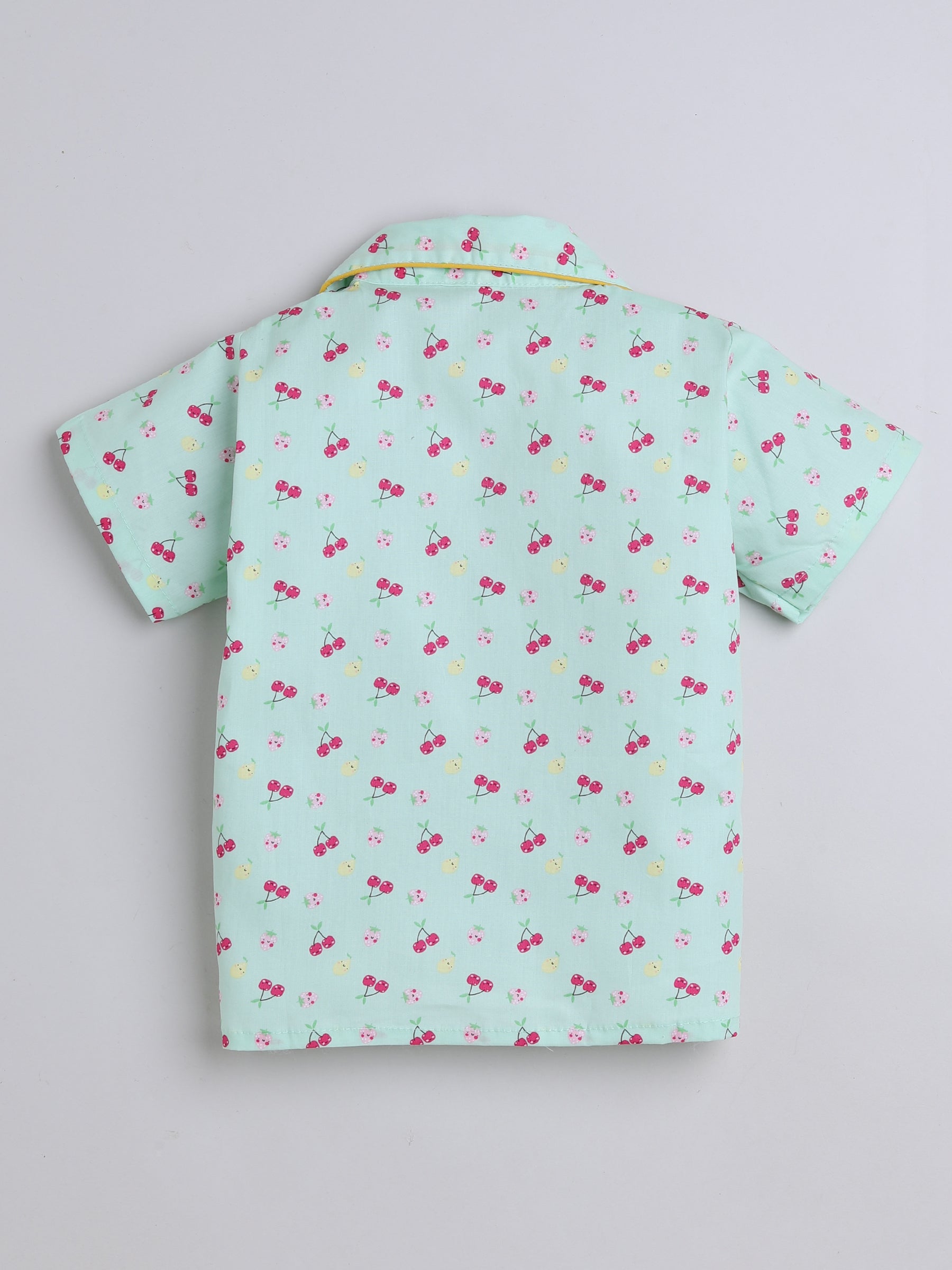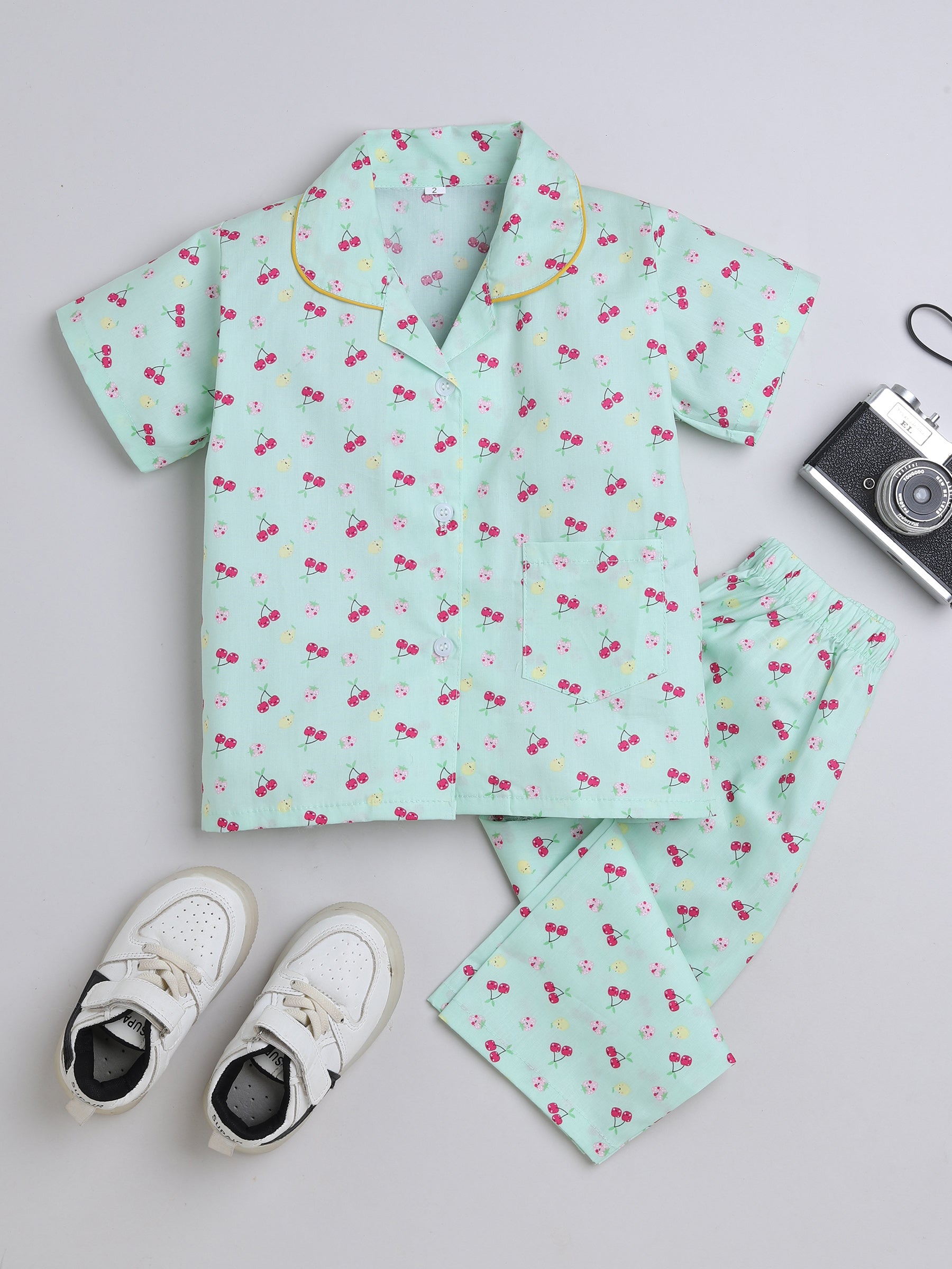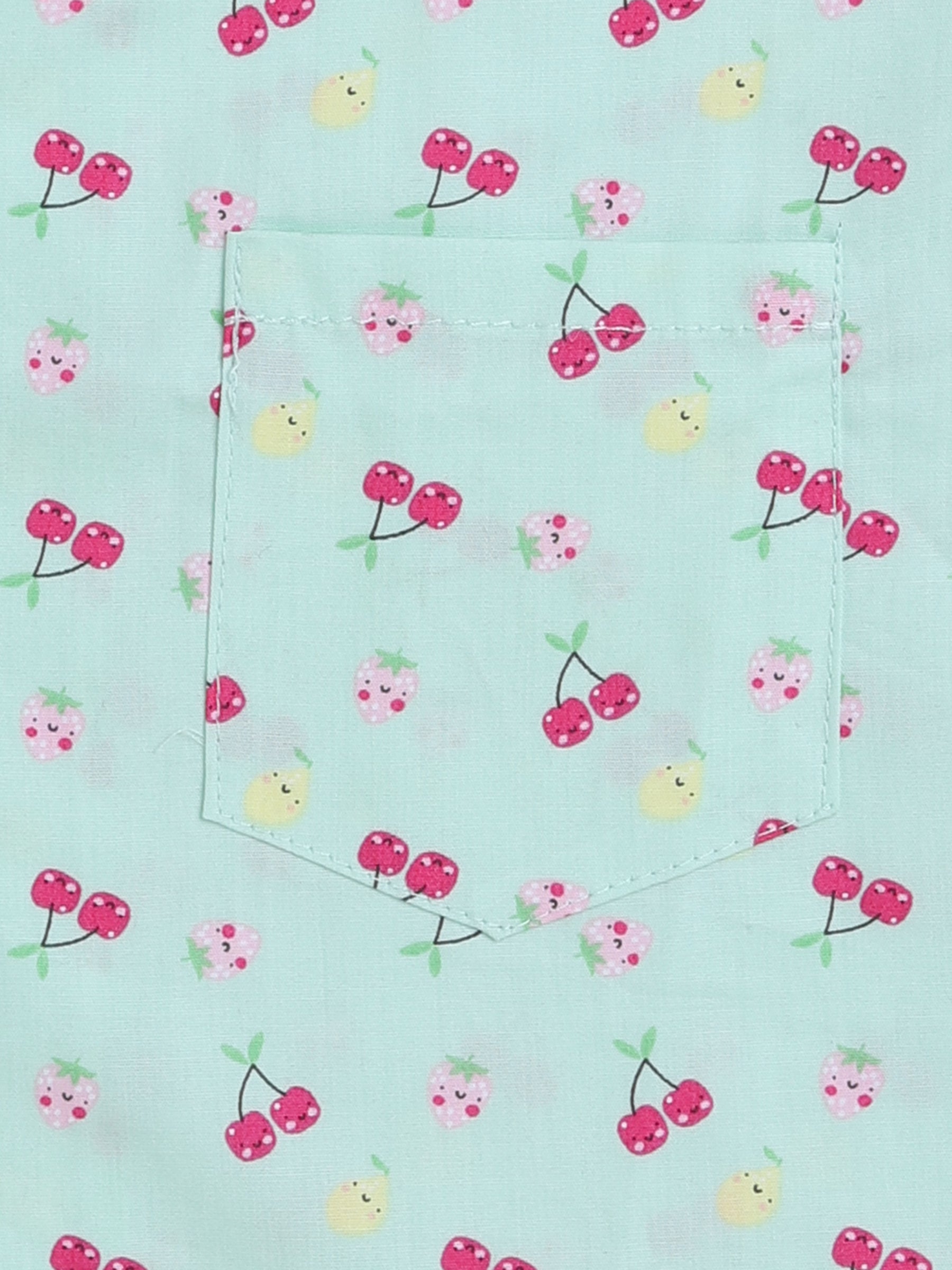 Half Sleeves Cherry Printed Night Suit Set Blue