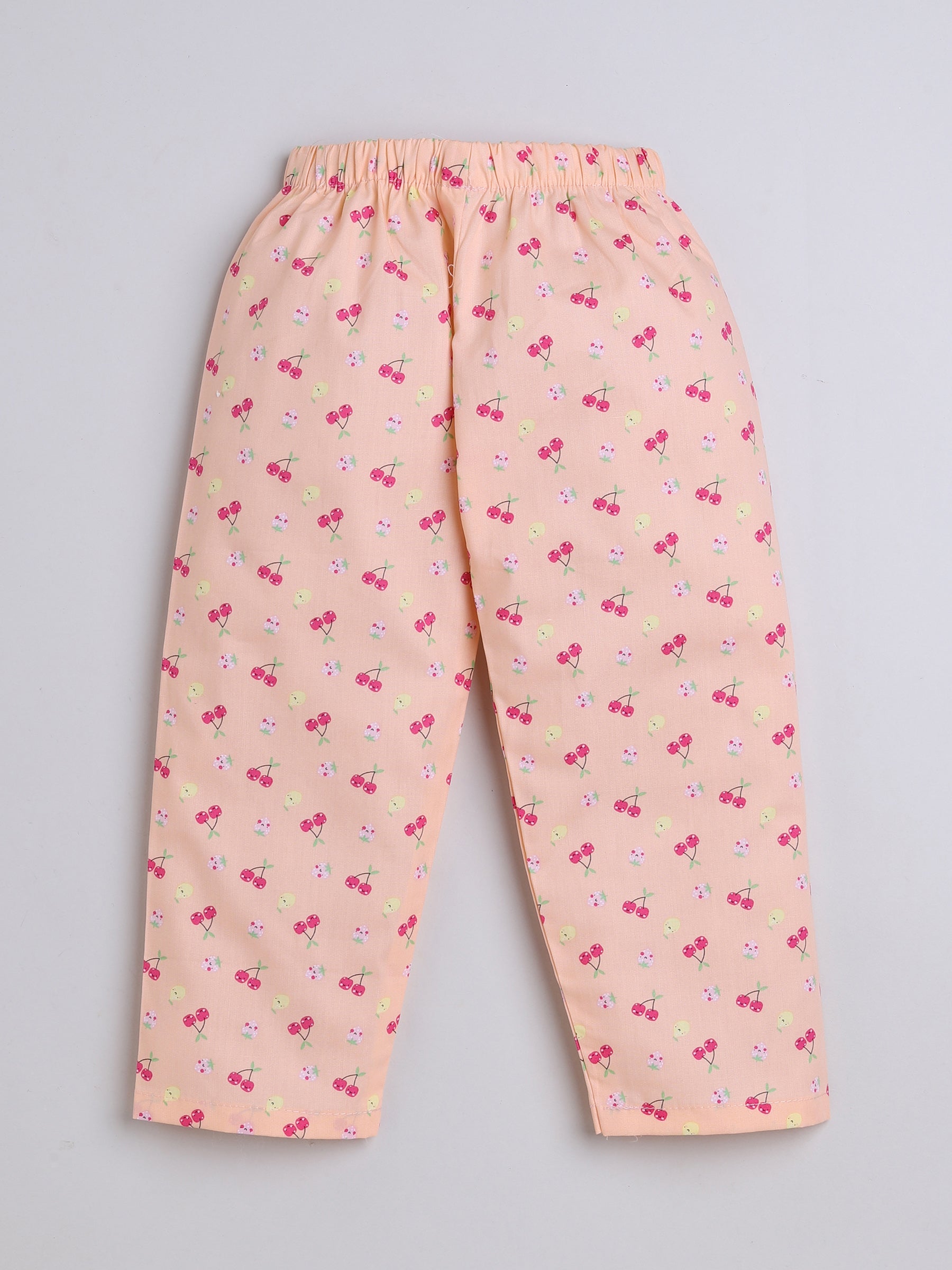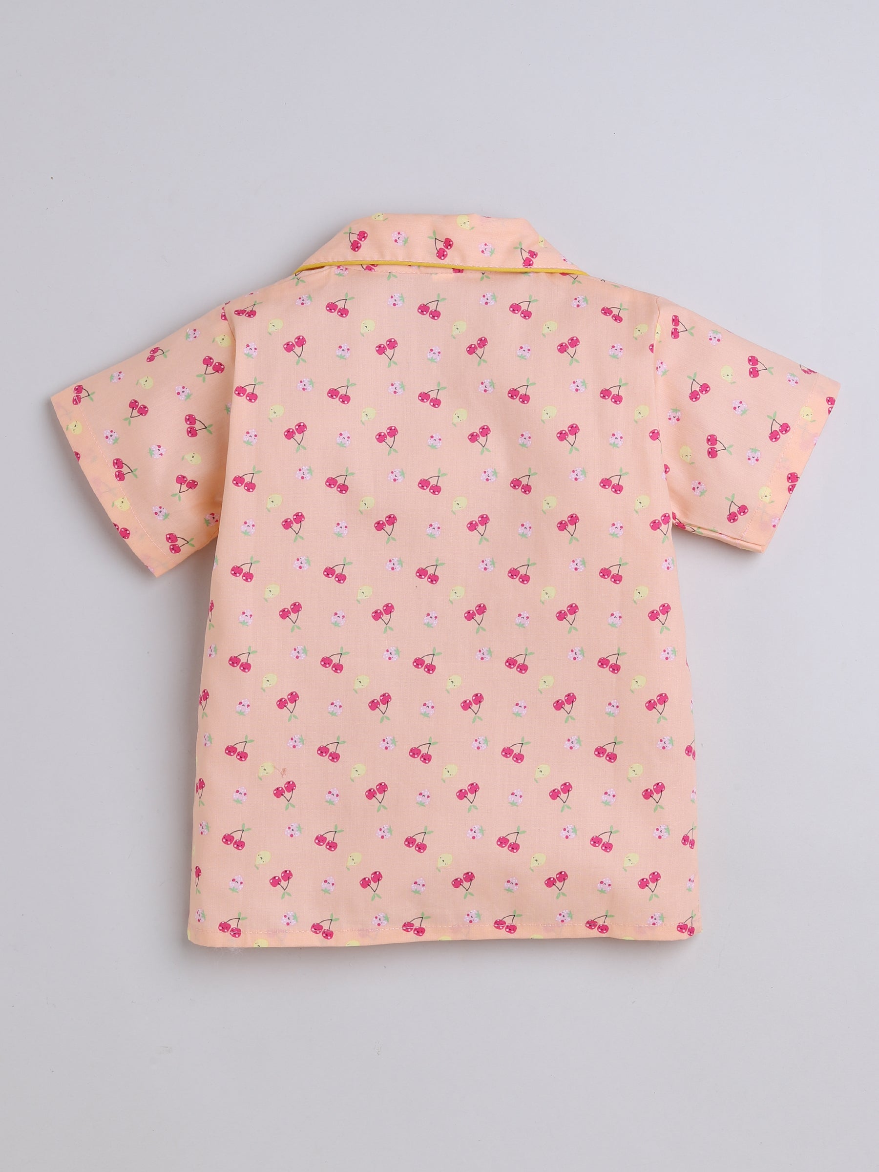 Half Sleeves Cherry Printed Night Suit Set Peach
