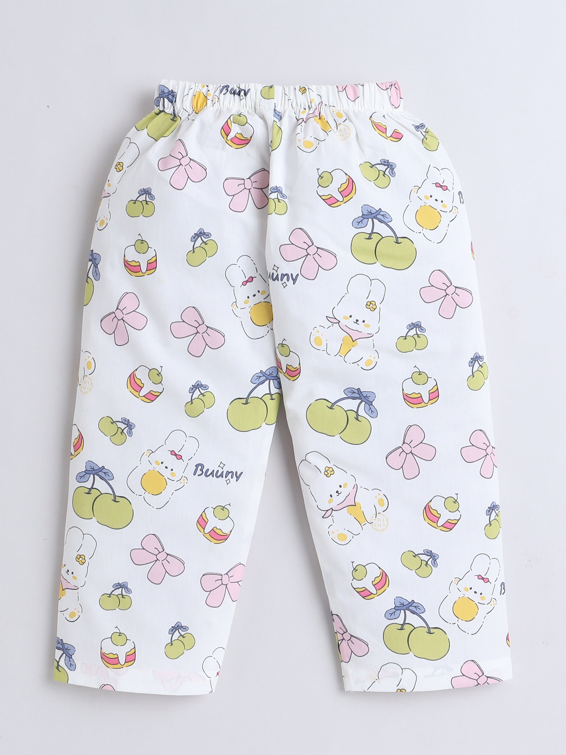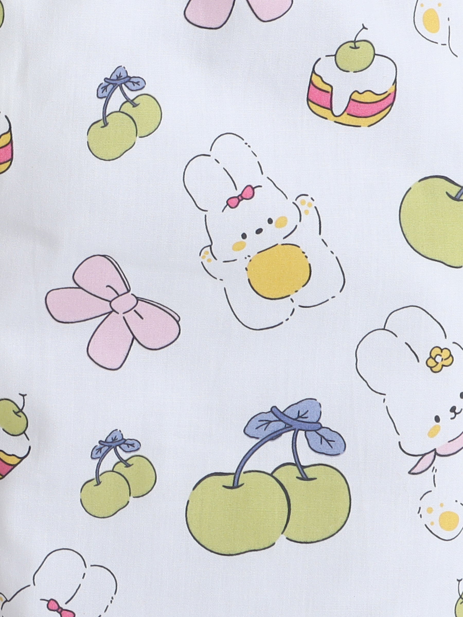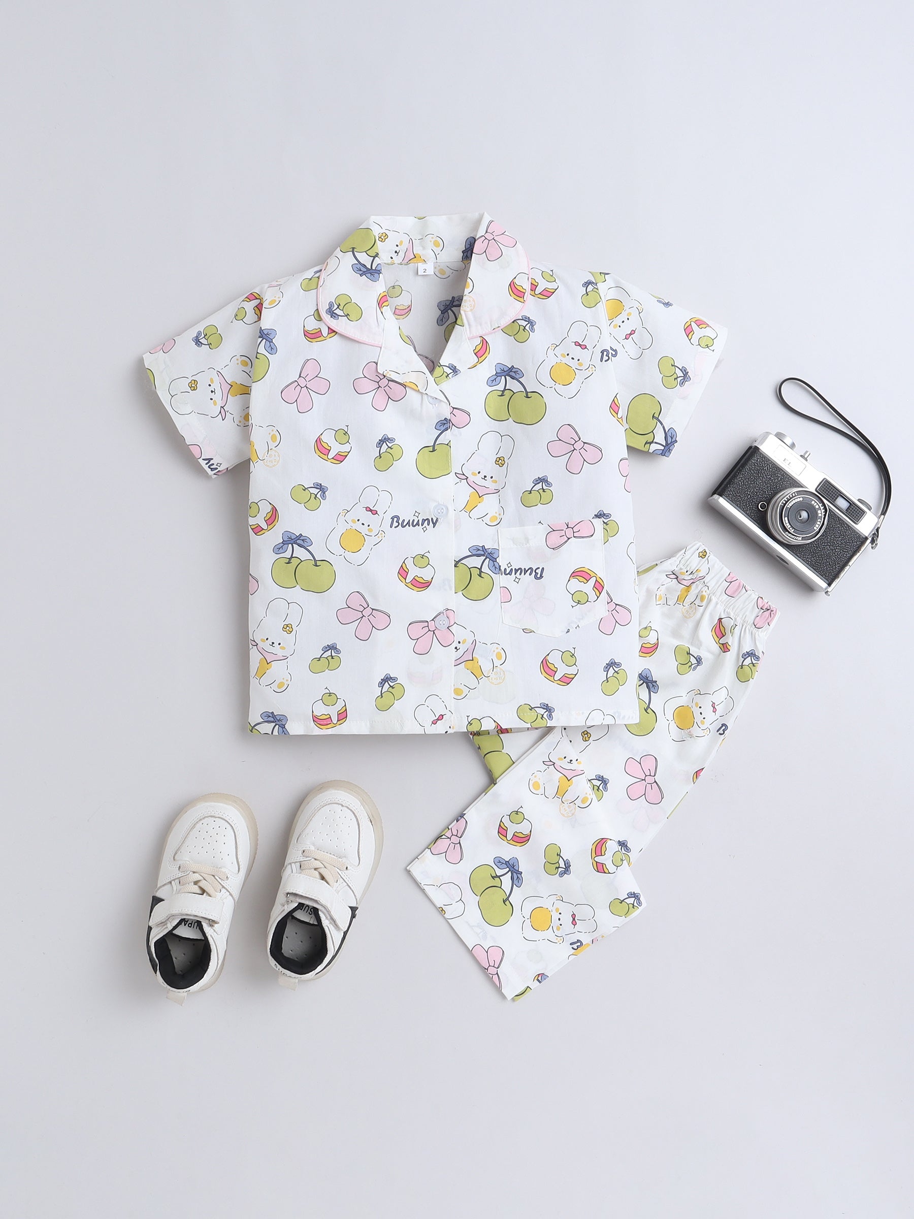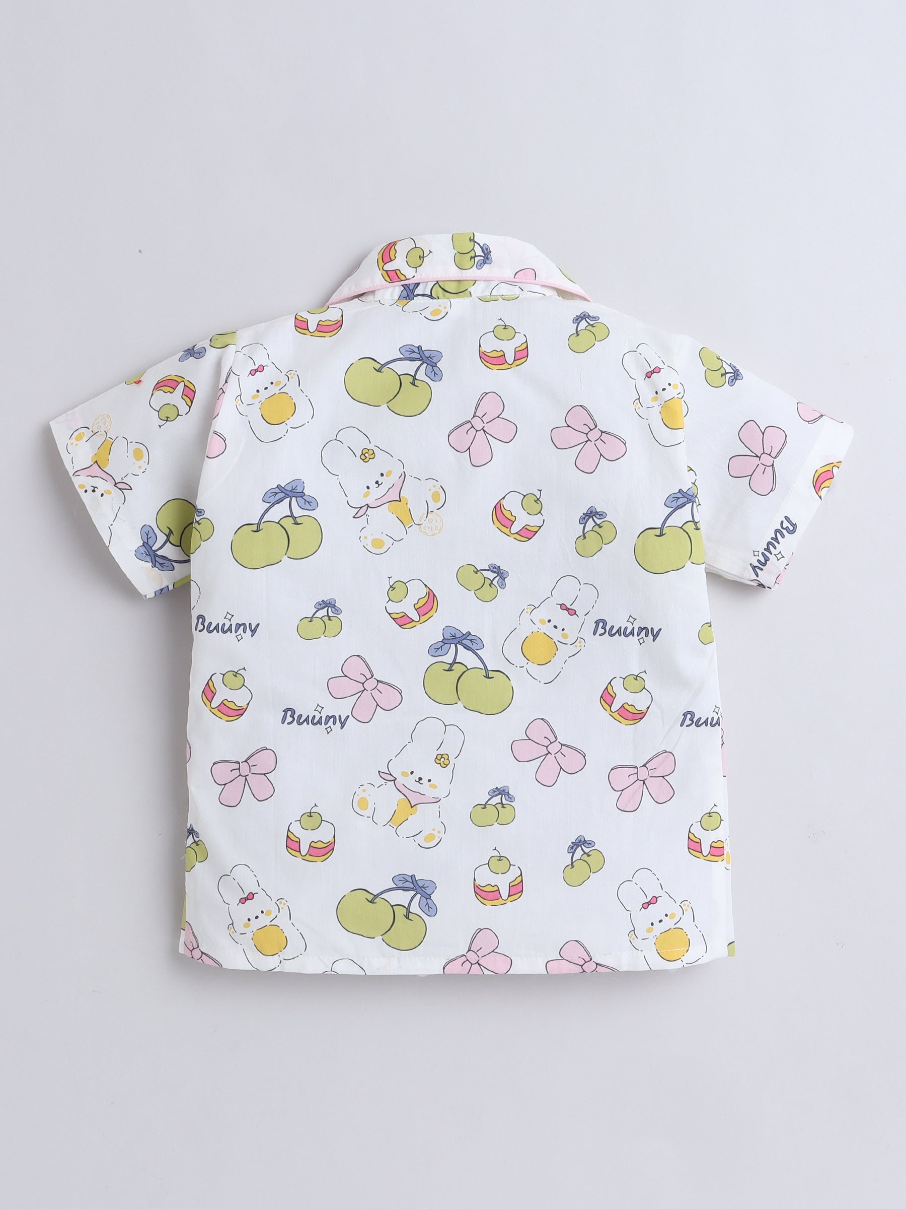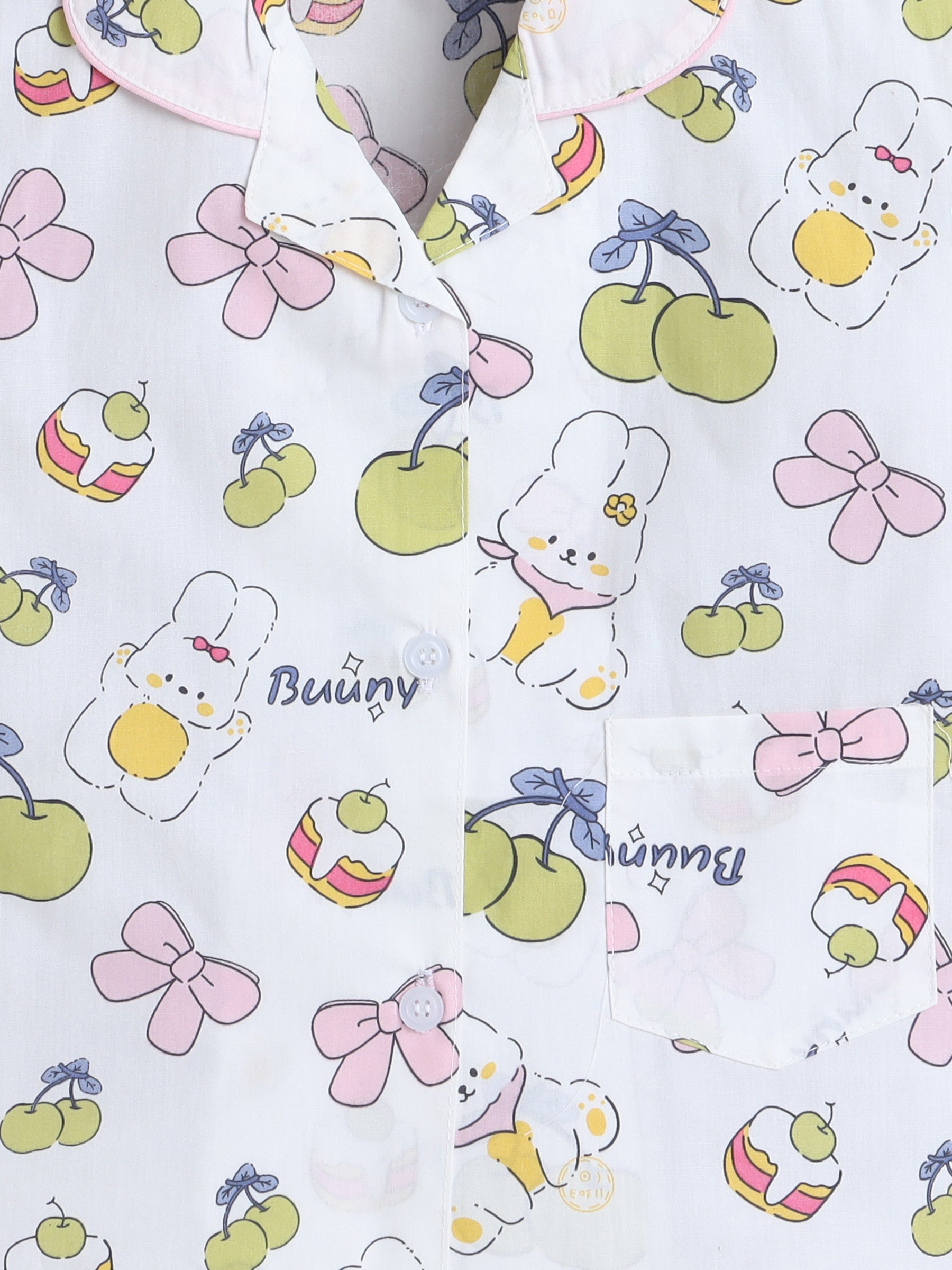 Half Sleeves Cotton Bunny Printed Night Suit Set Green