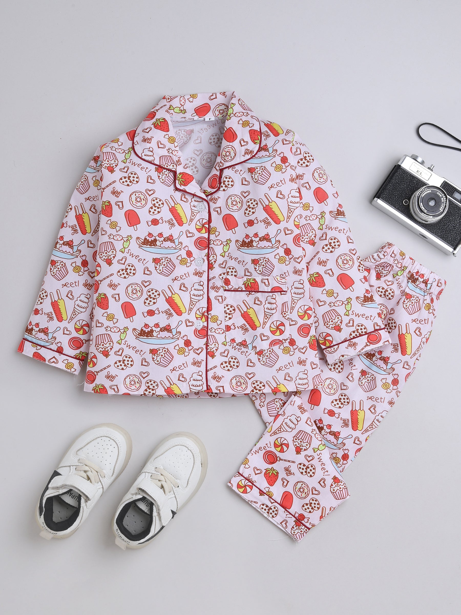 3/4 Sleeves Desert Printed Night Suit Set Beige
