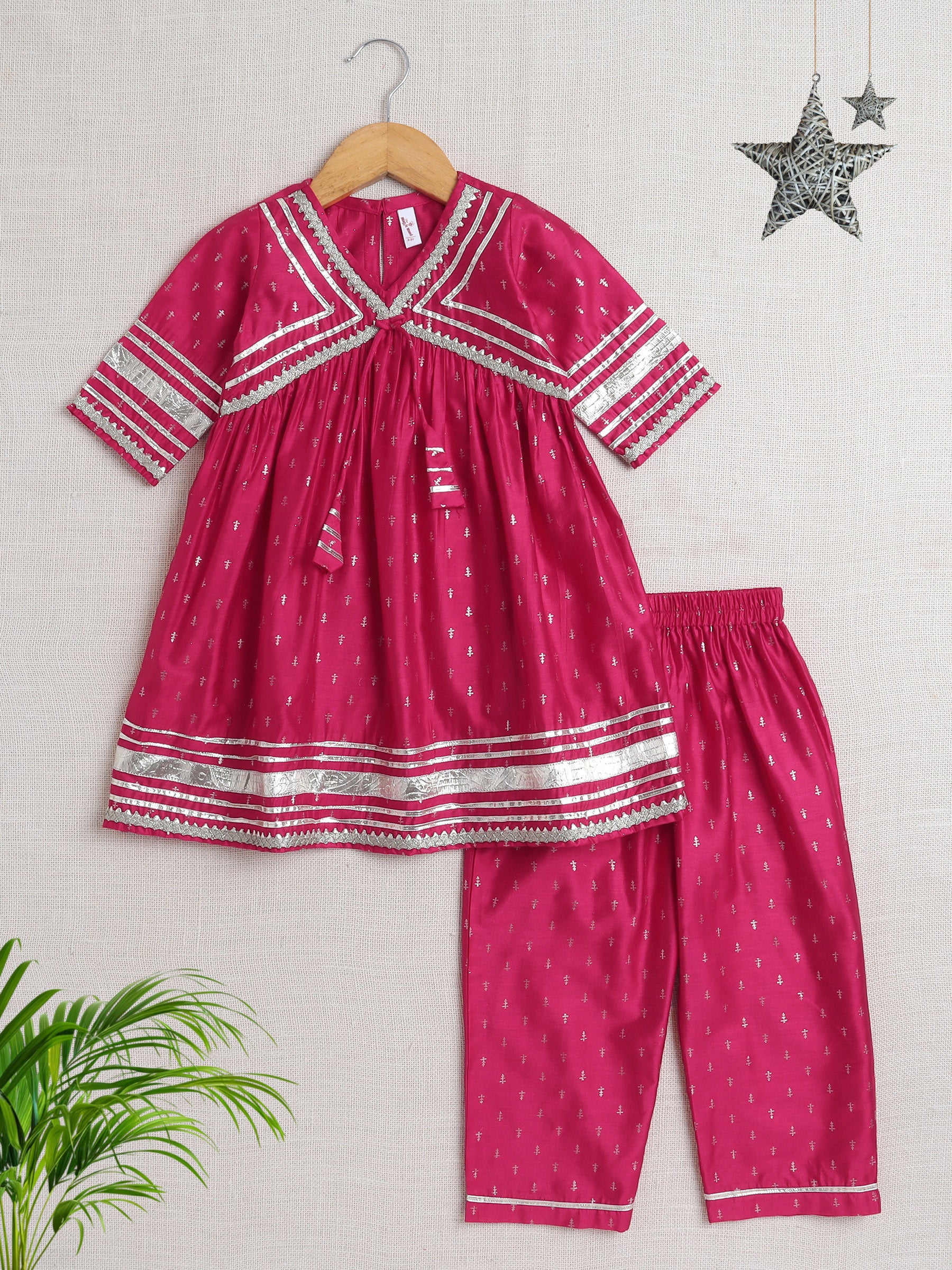 Half Sleeves Embellished Alia Cut with Gota Lace Kurta Set- Green
