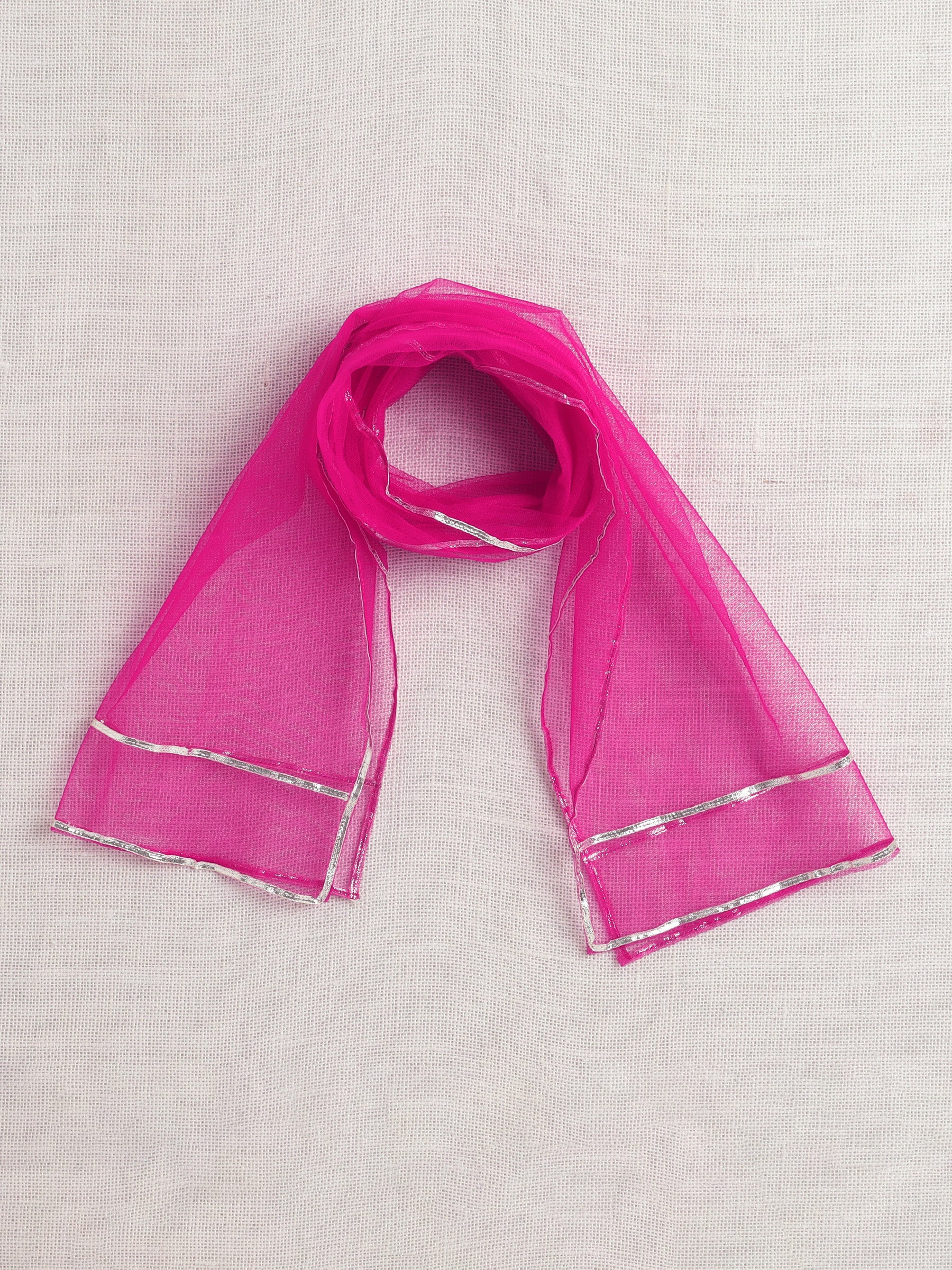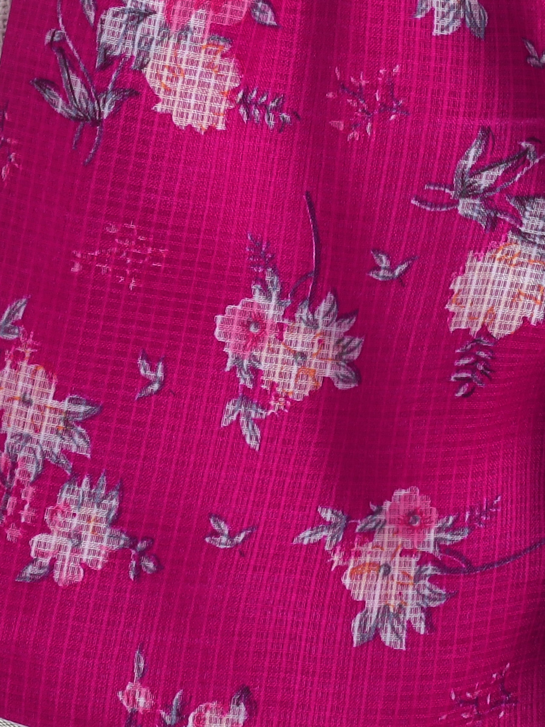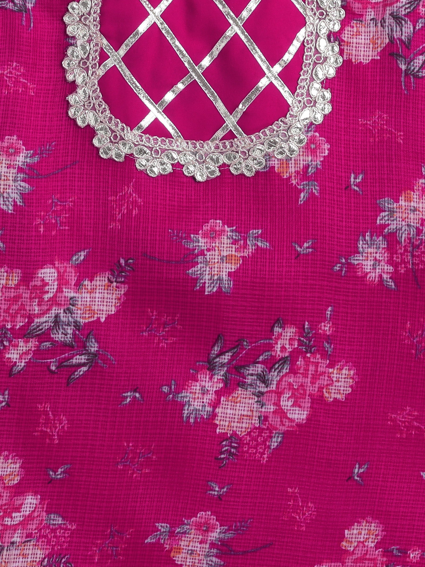 Half Sleeves Floral Printed Gota Lace Embellished Kurta & Sharara Set With Dupatta Fuchsia