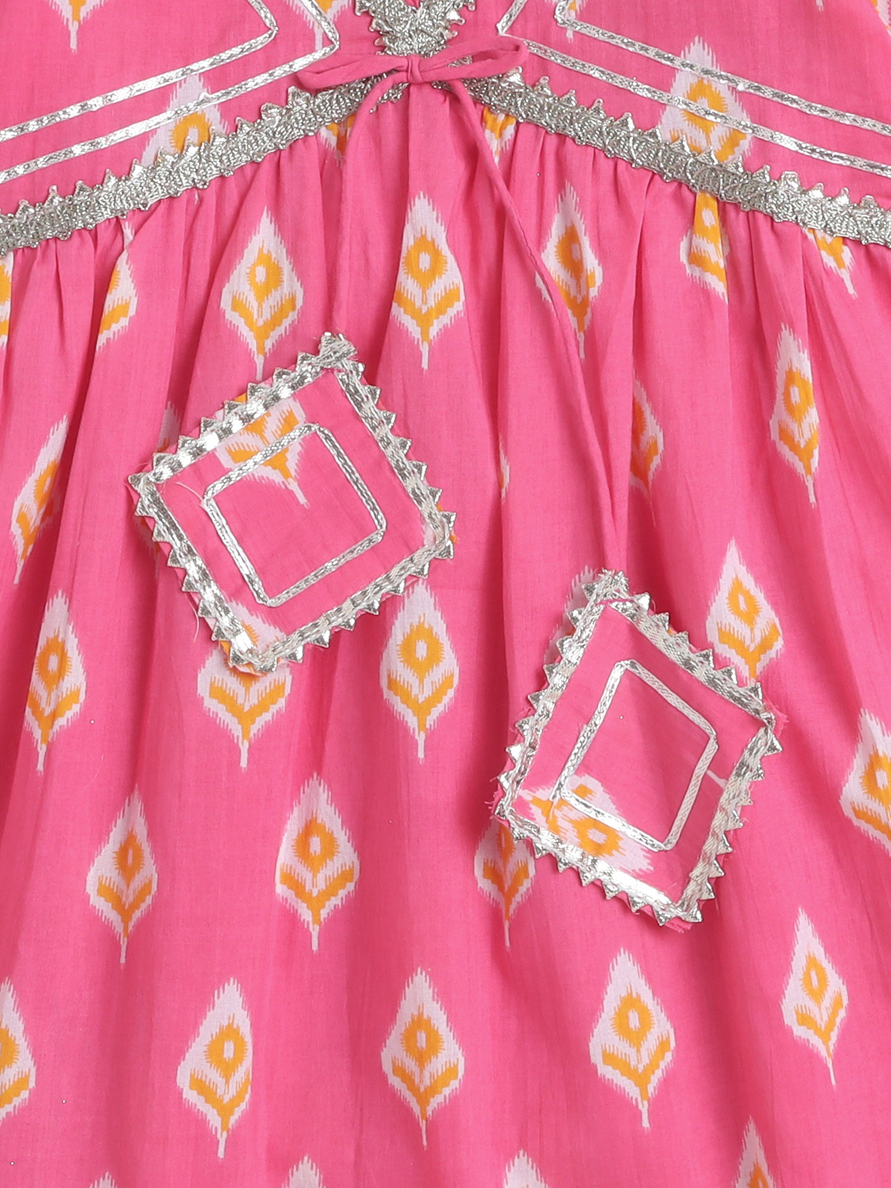 Half Sleeves Floral Print Alia Cut Kurta Set Pink