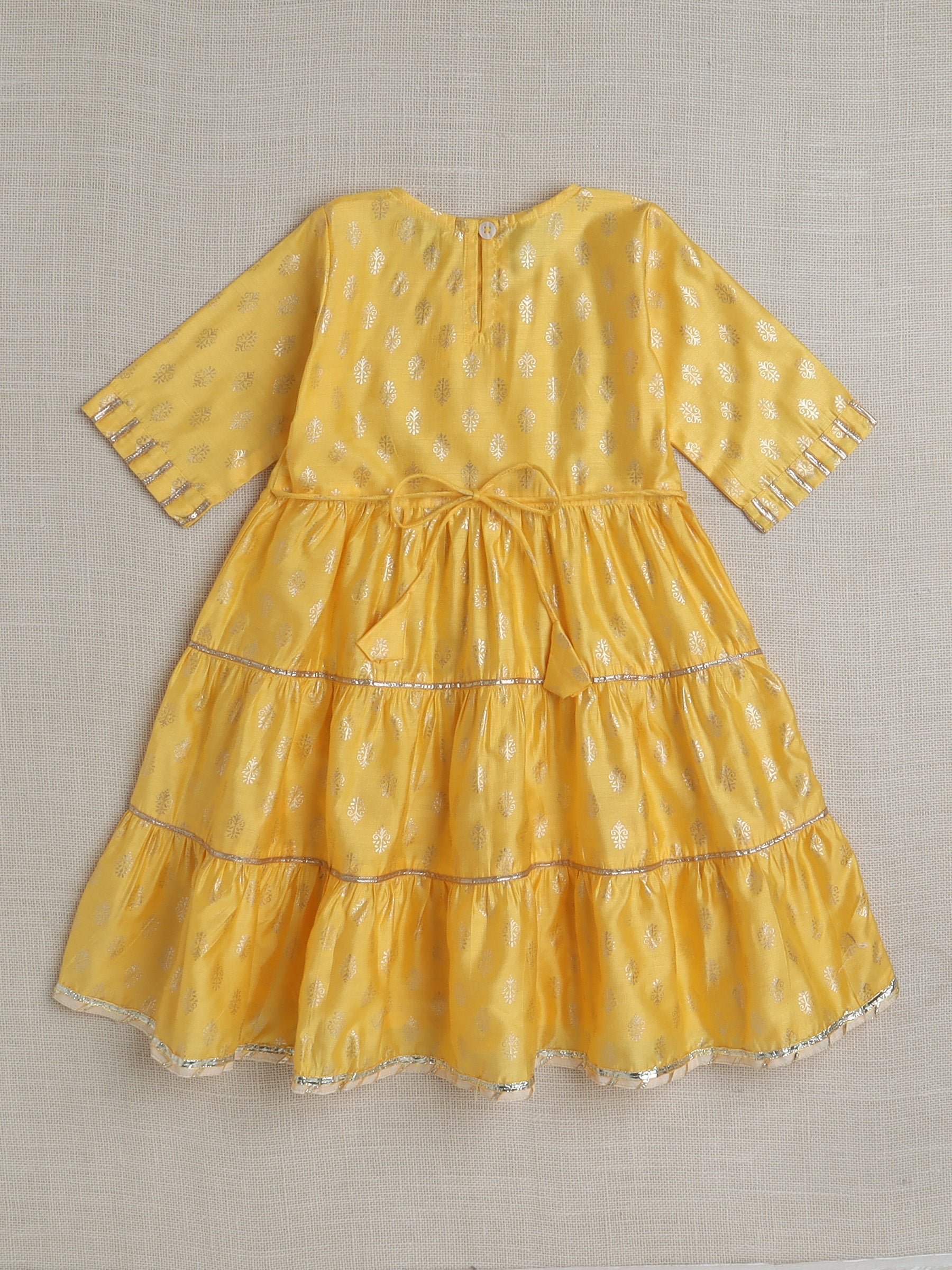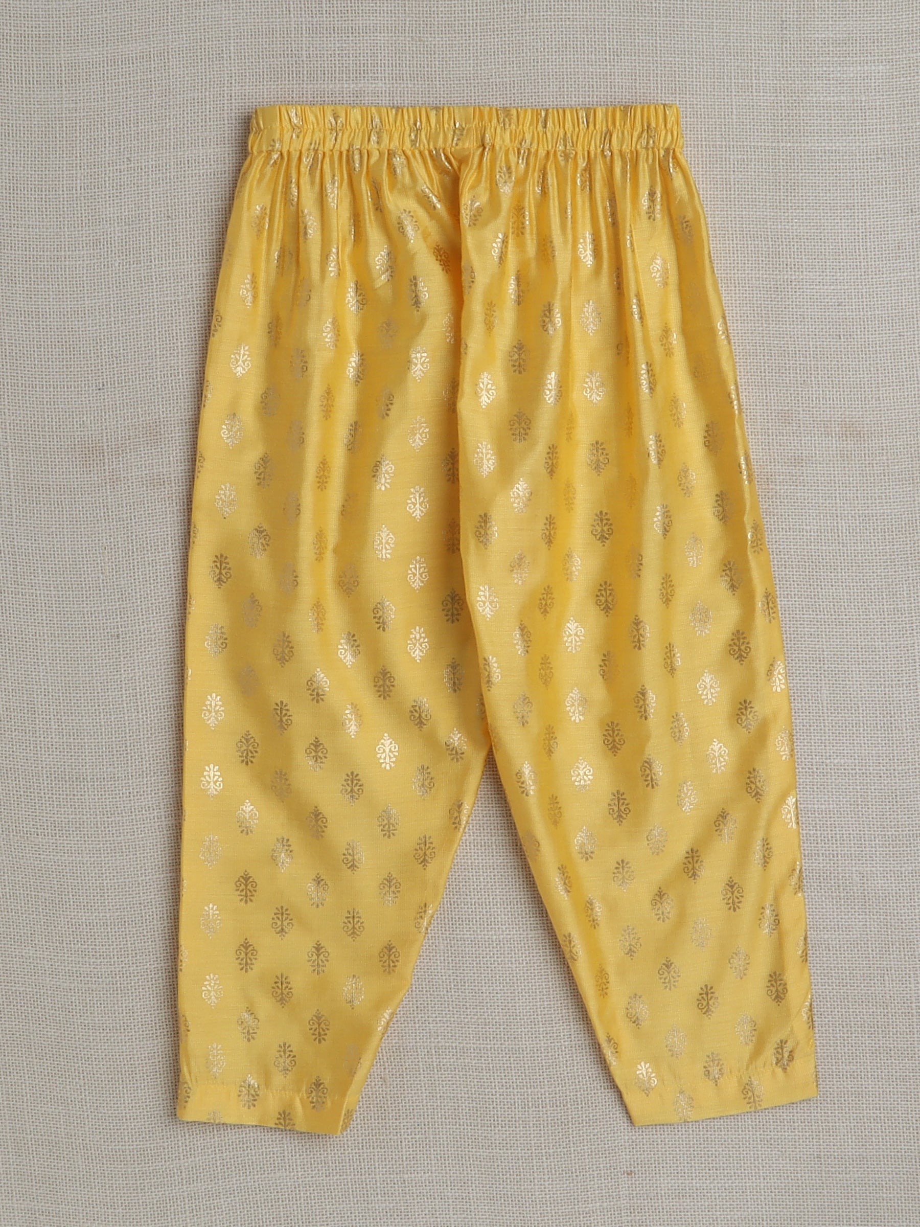 Half Sleeves Lace Embellished Floral Motif Foil Printed Coordinating Kurta & Salwar Set - Yellow