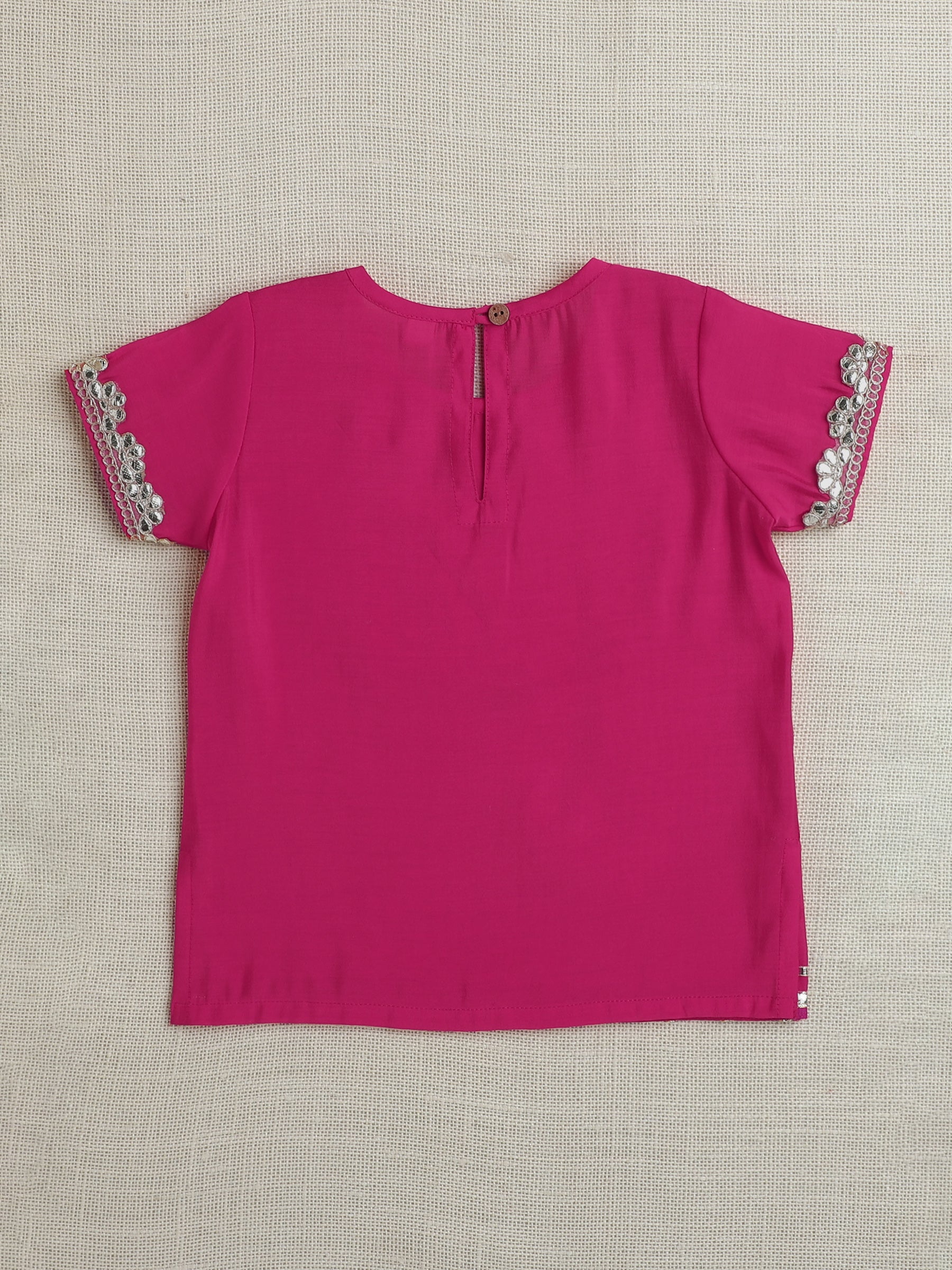 Half Sleeves Lace Embellished Pattu Pavadai Lehenga Choli Set - Fuchsia