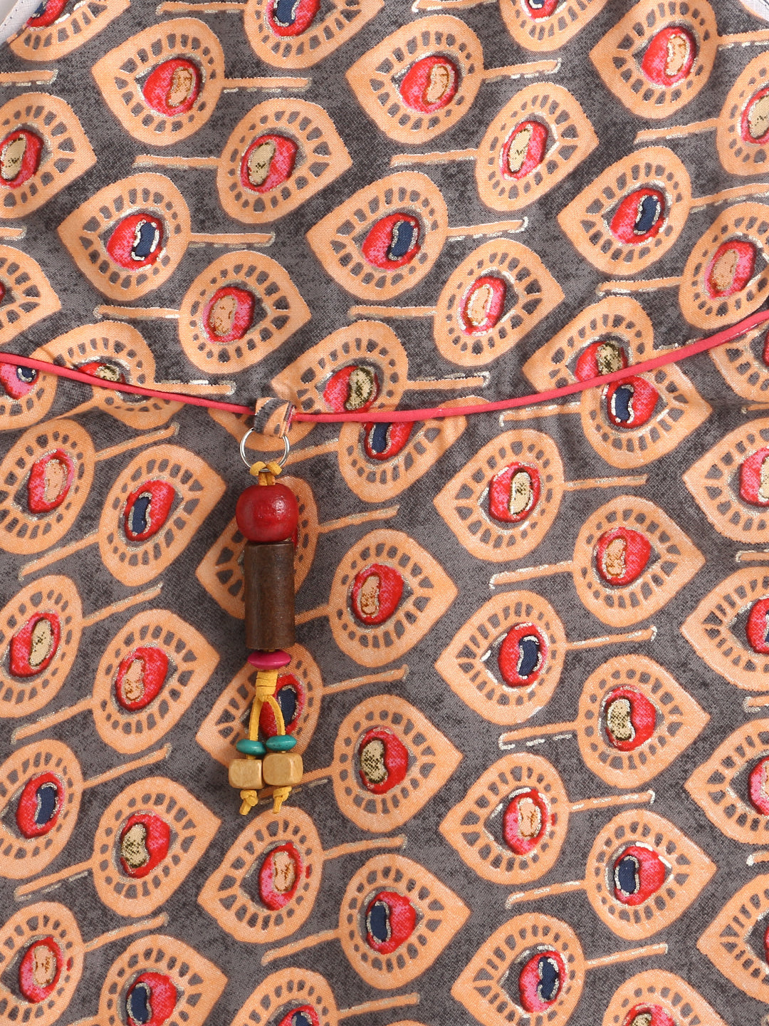 Halter Neck Printed Rayon Flared Hem Dress With Dangler Tassel -Peach