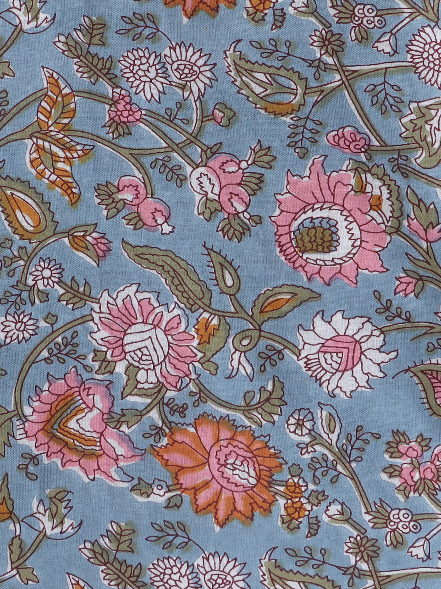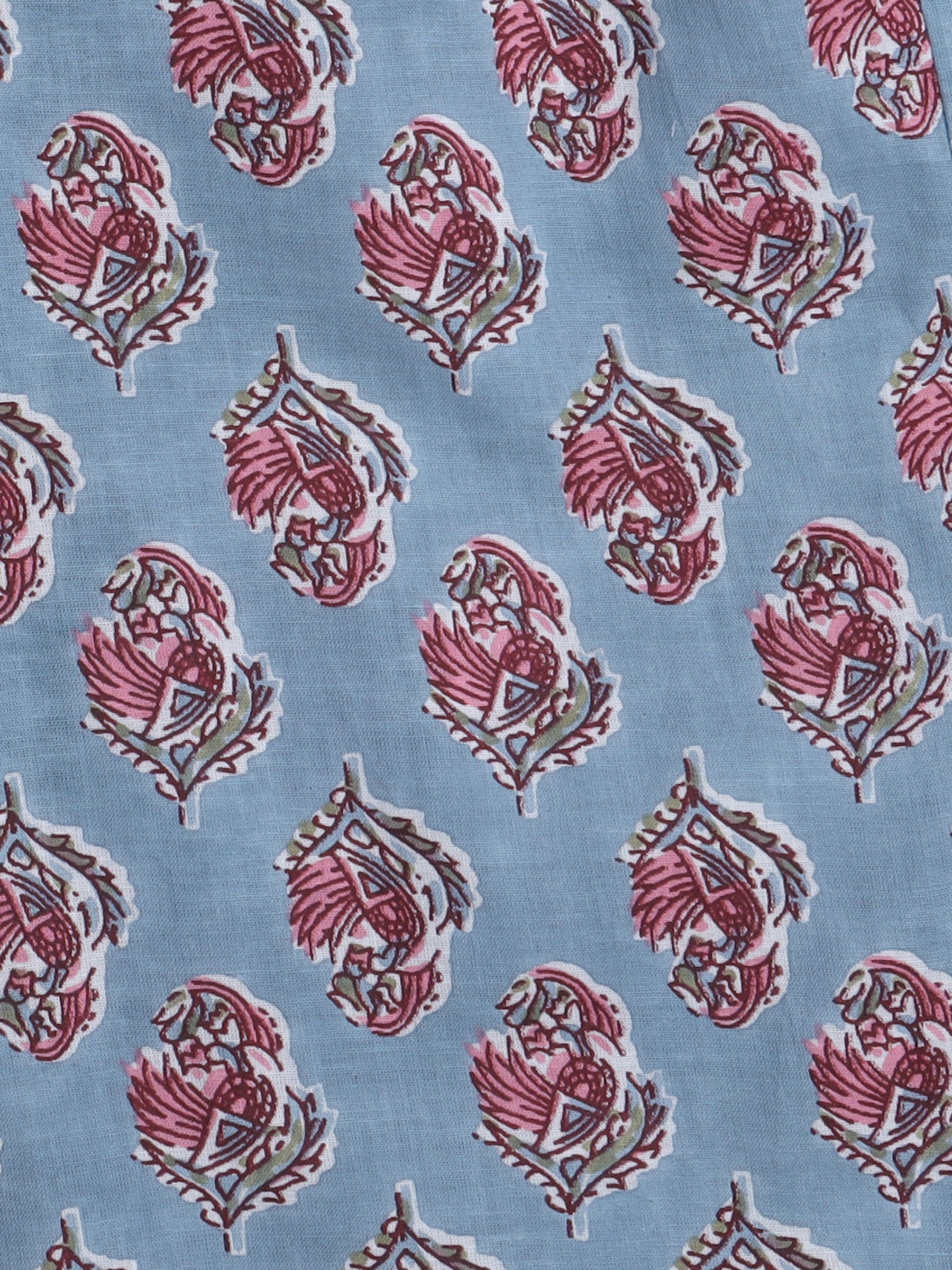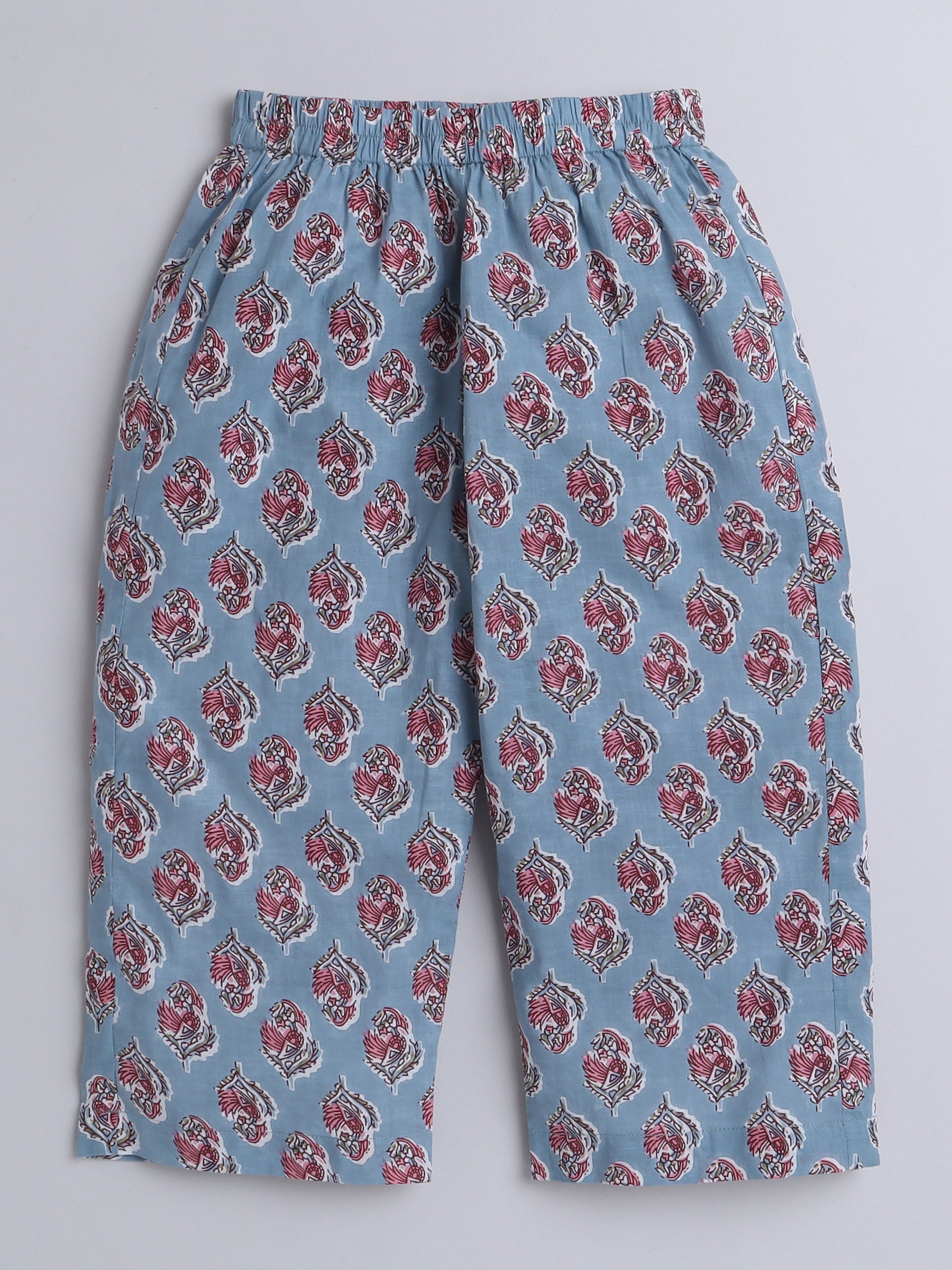 Hand Block Printed Cotton Lace Embelished 3/4th Sleeves Top and Pant Night Wear Lounge Wear Set For Girls Grey