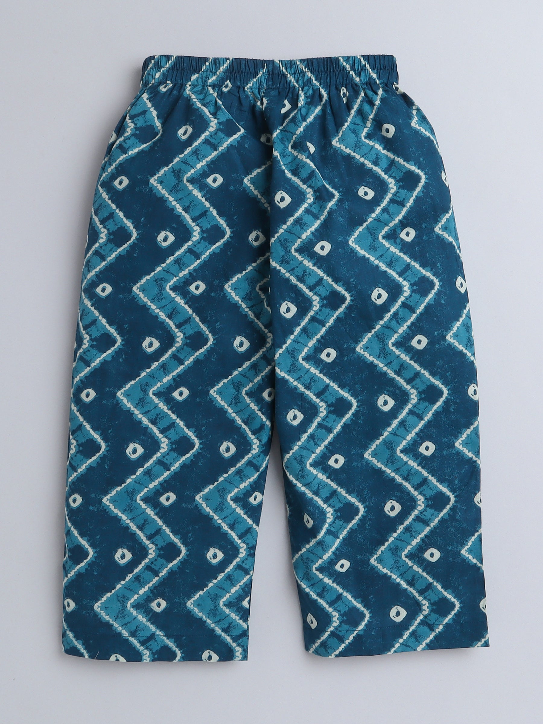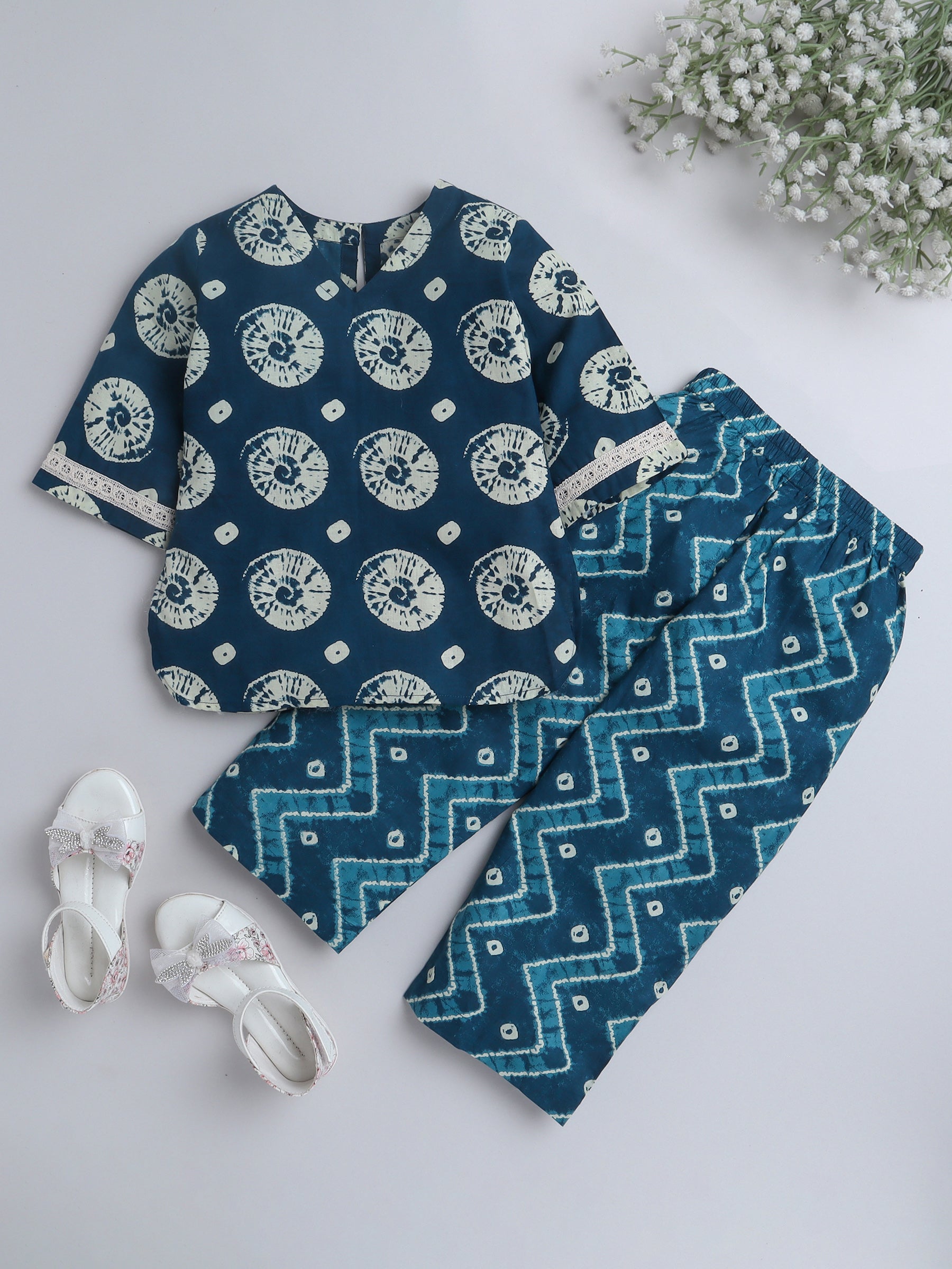 Hand Block Printed Cotton Lace Embelished 3/4th Sleeves Top and Pant Night Wear Lounge Wear Set For Girls Indigo Blue
