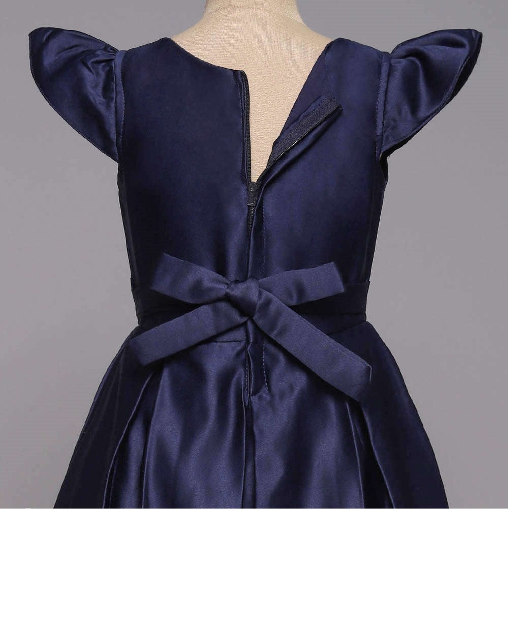 Long Gown Bow Embellished Cap Sleeves Dress For Girls - Navy