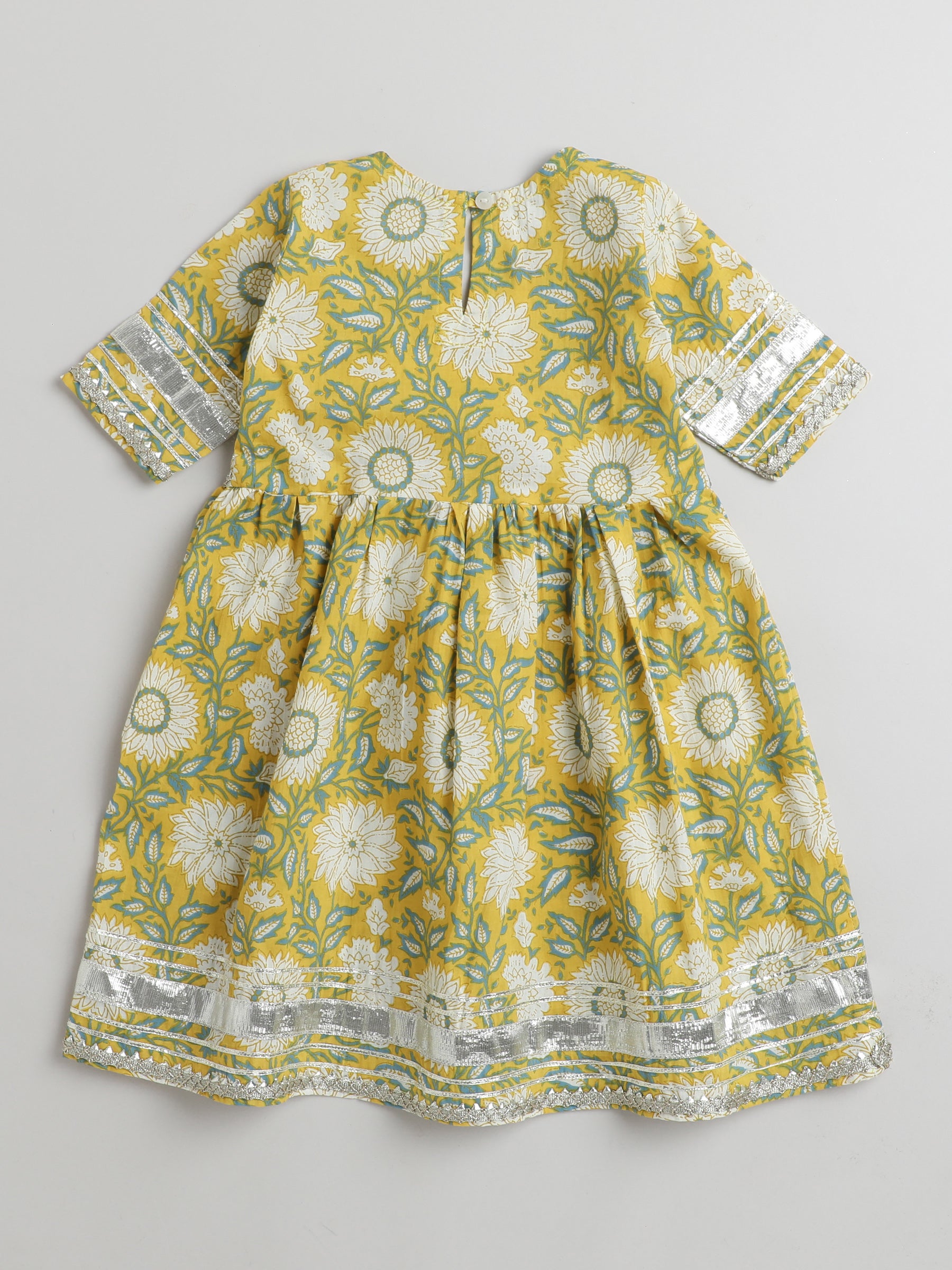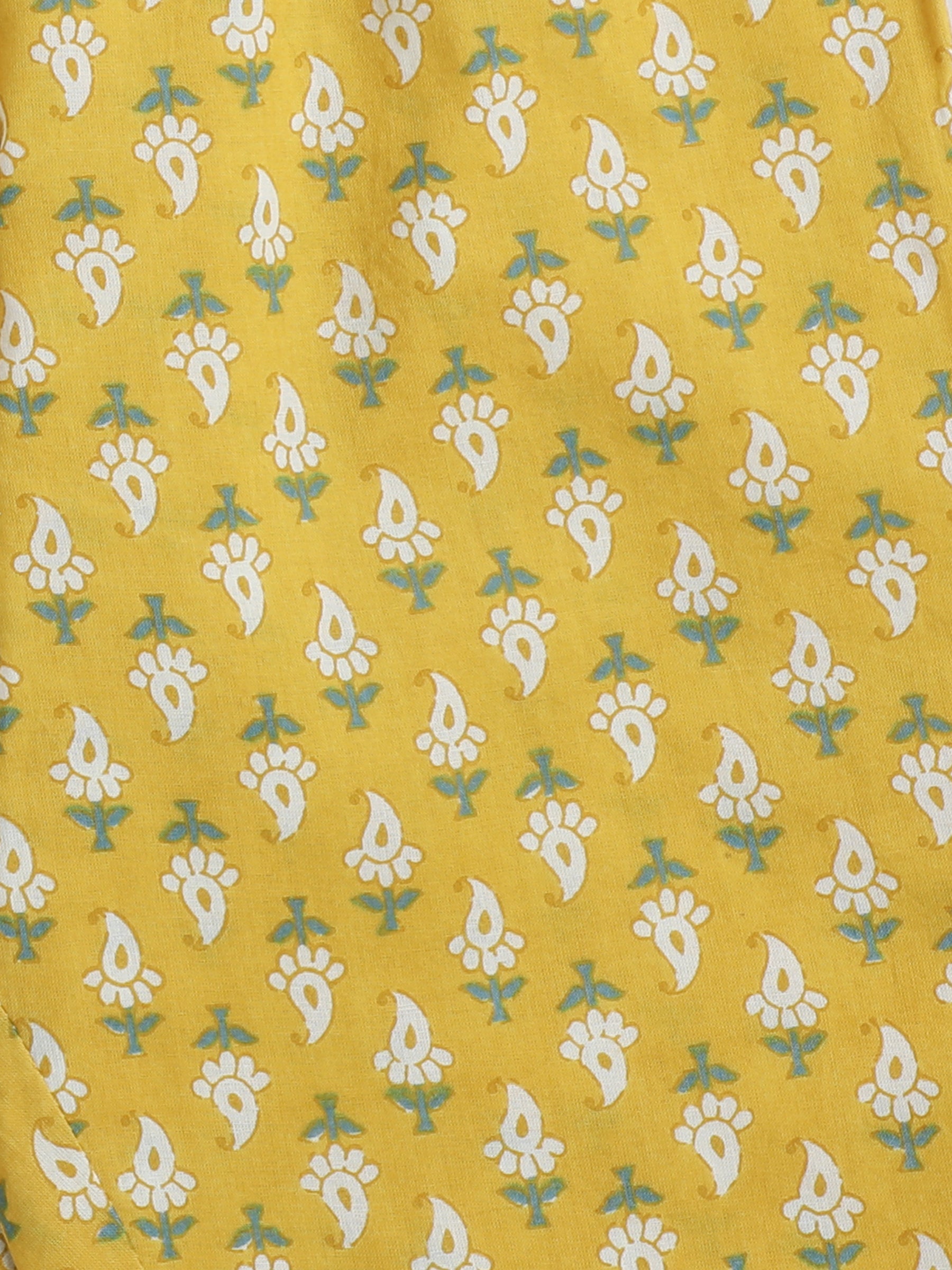 Printed Elbow Sleeves Tassled Gathered Aliya Cut Gota Kurta with Straight Pants-Yellow