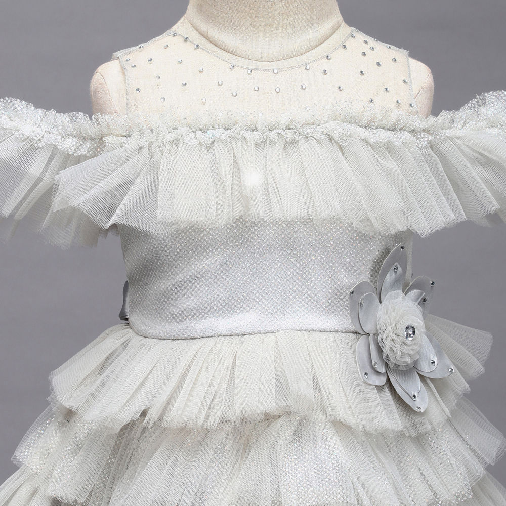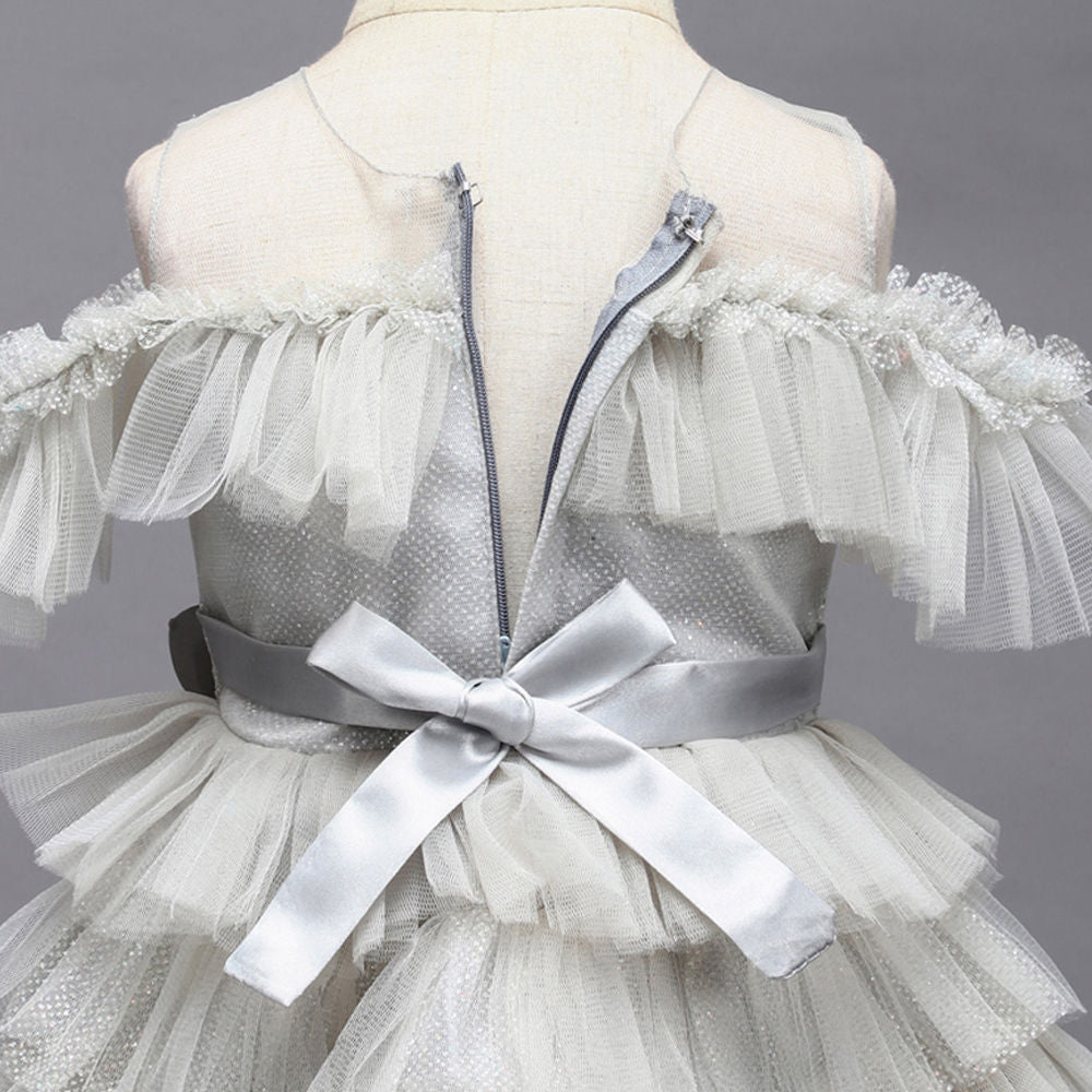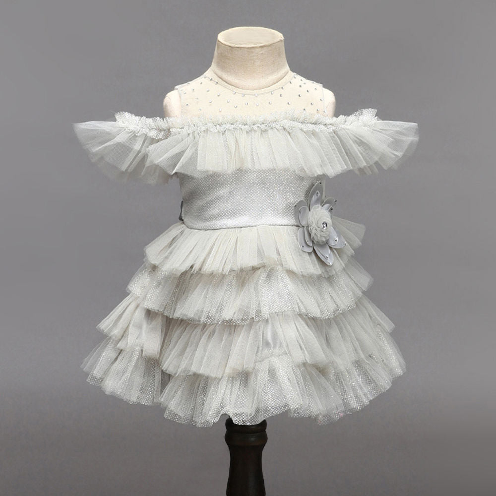 Short Cold Shoulder Sleeves Layered Dress - Grey