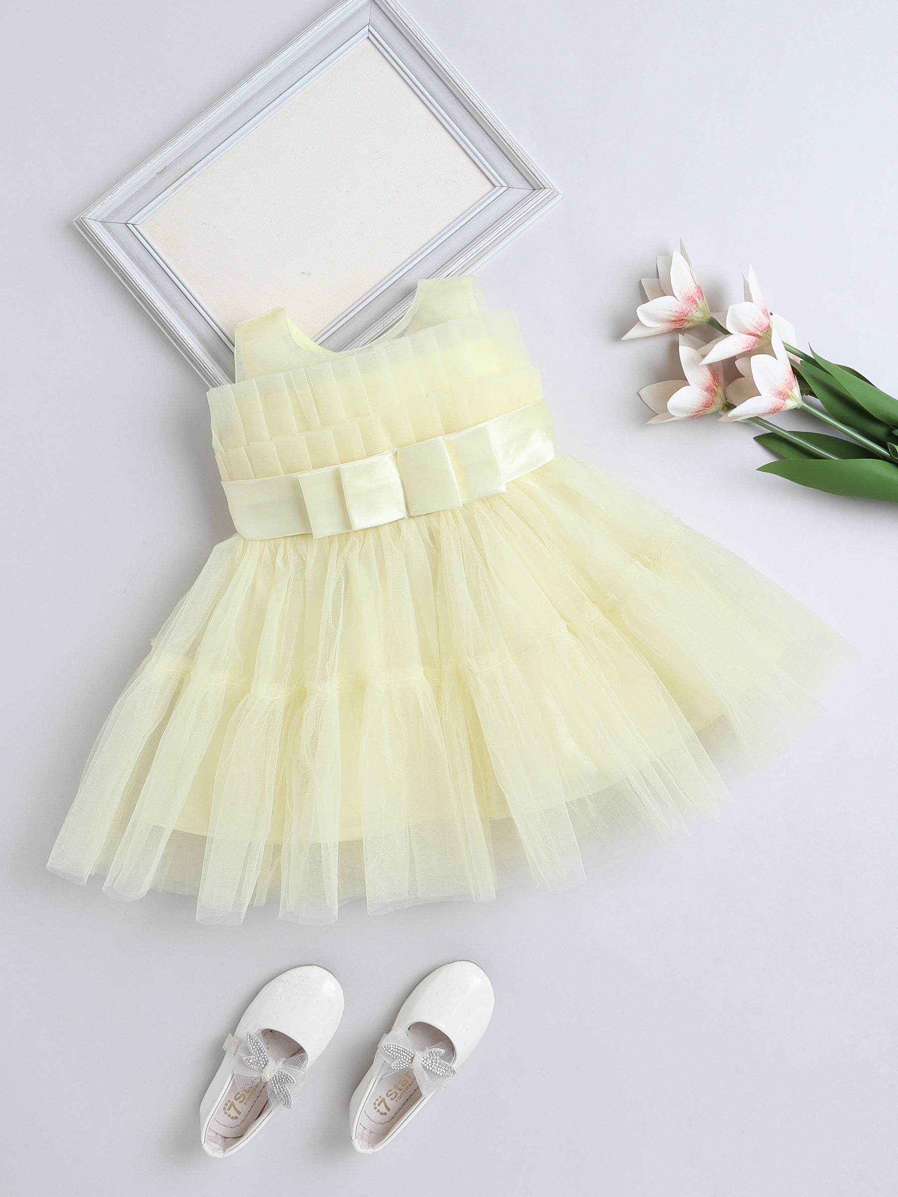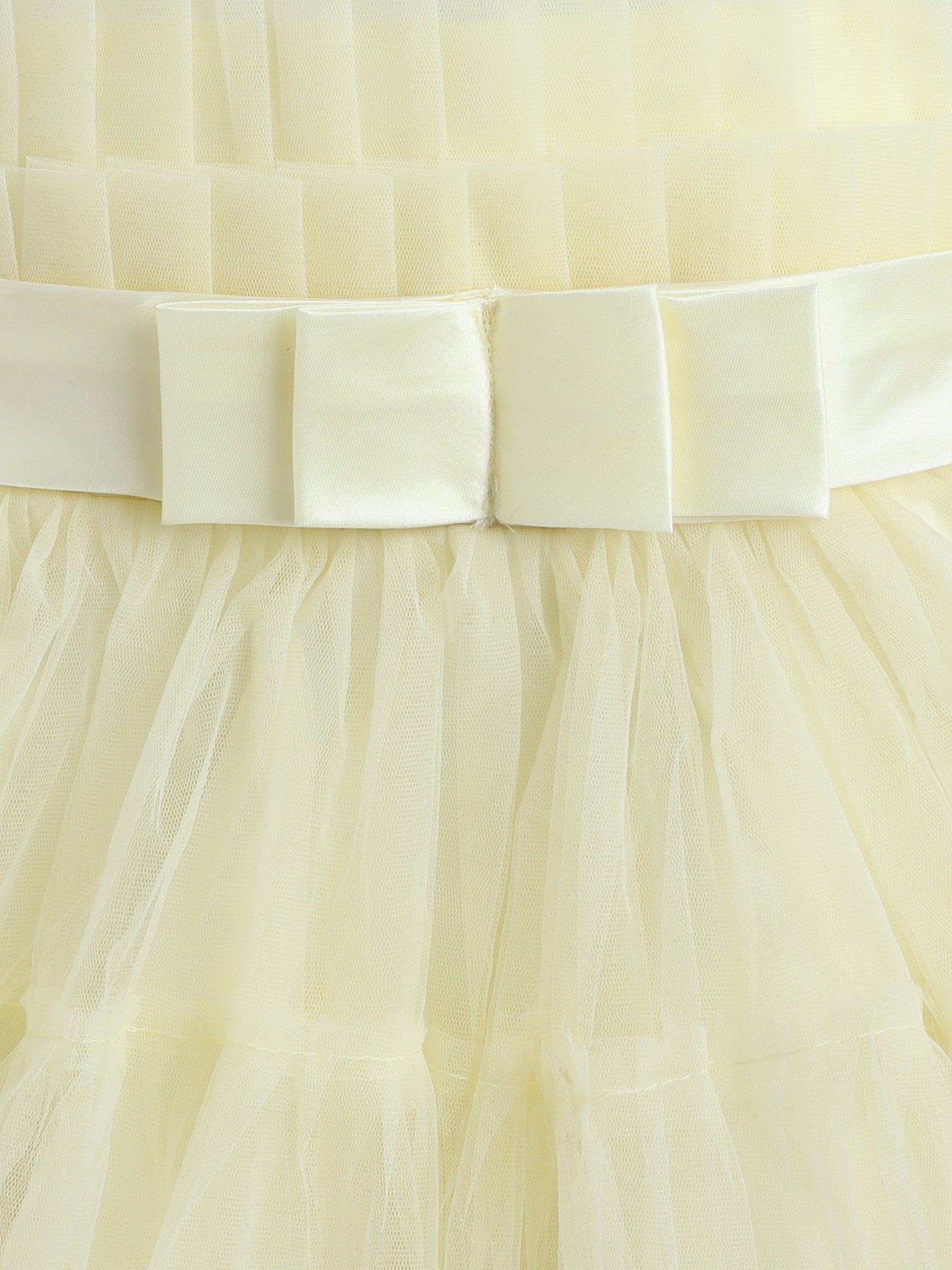 Sleeveless Bow Applique Detailed Flared Dress - Yellow