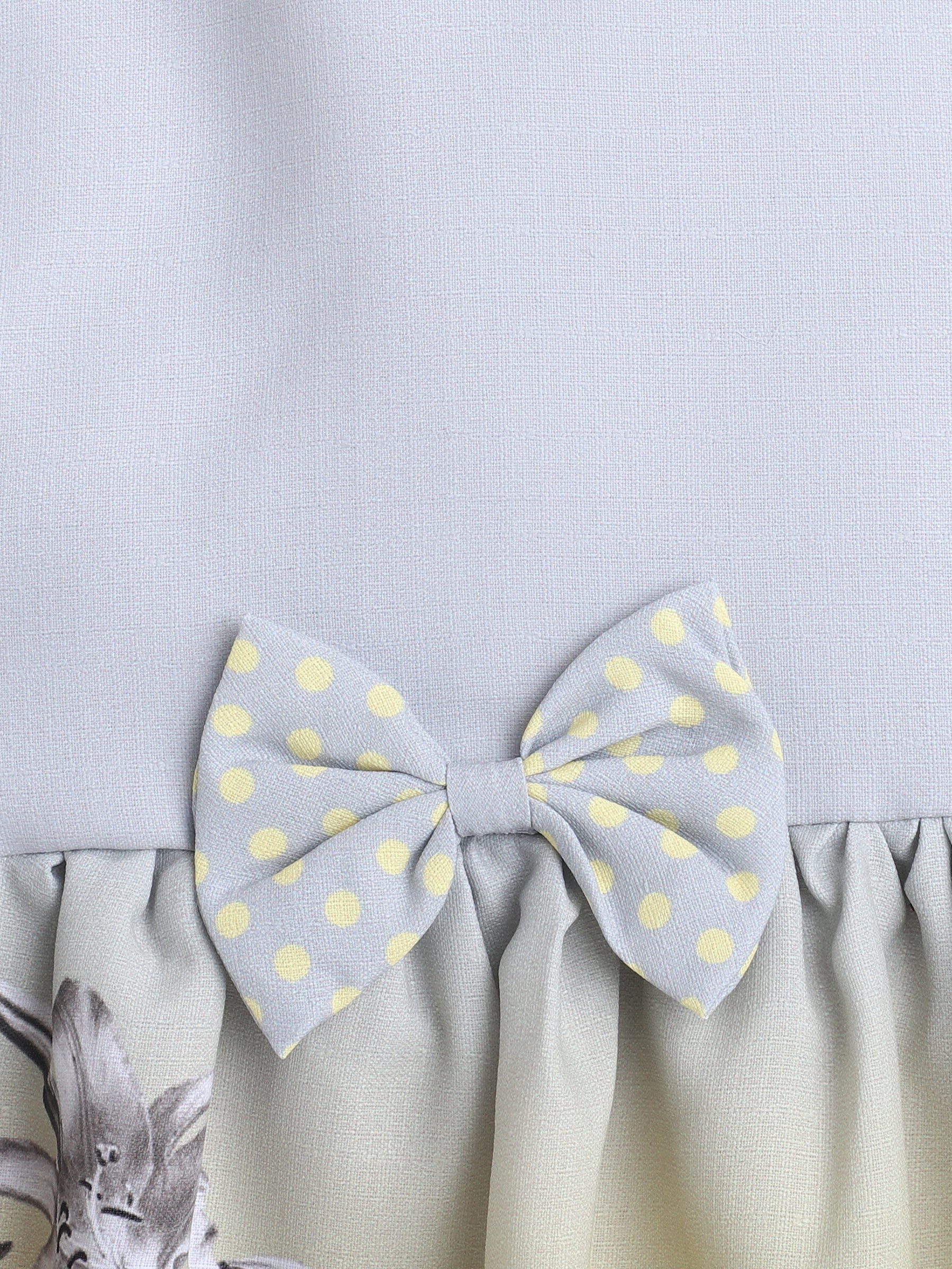 Sleeveless Bow Embellished Digital Floral Printed Dress With Short Sleeves Dotted Print Jacket - Yellow