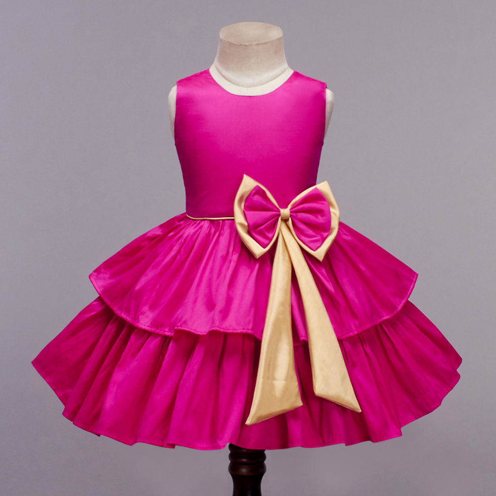 Sleeveless Bow Embellished Tiered Dress - Fuchsia