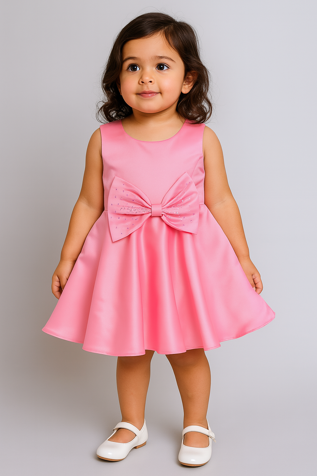 Sleeveless Bow & Stone Embellished Fit & Flared Dress - Peach