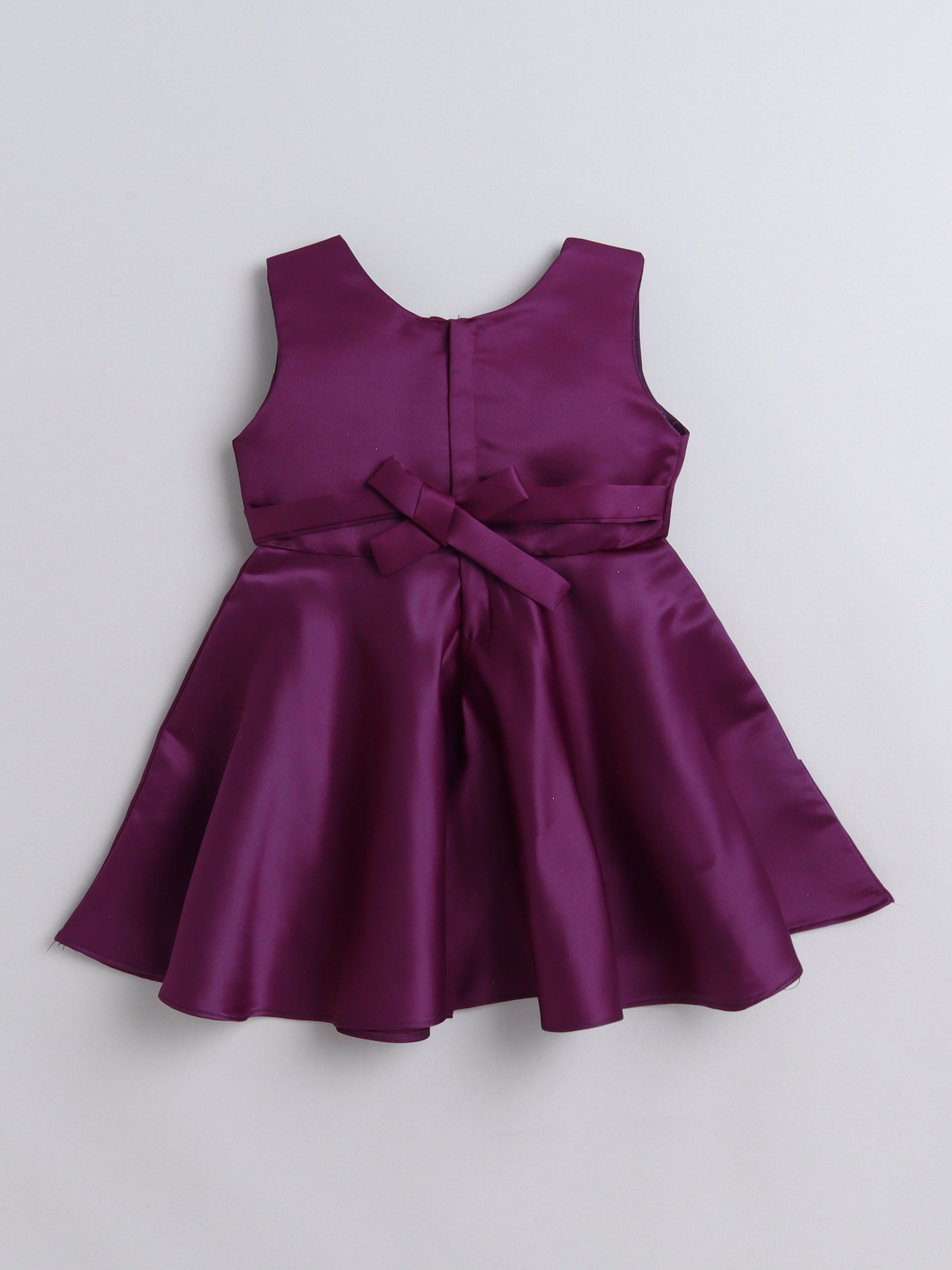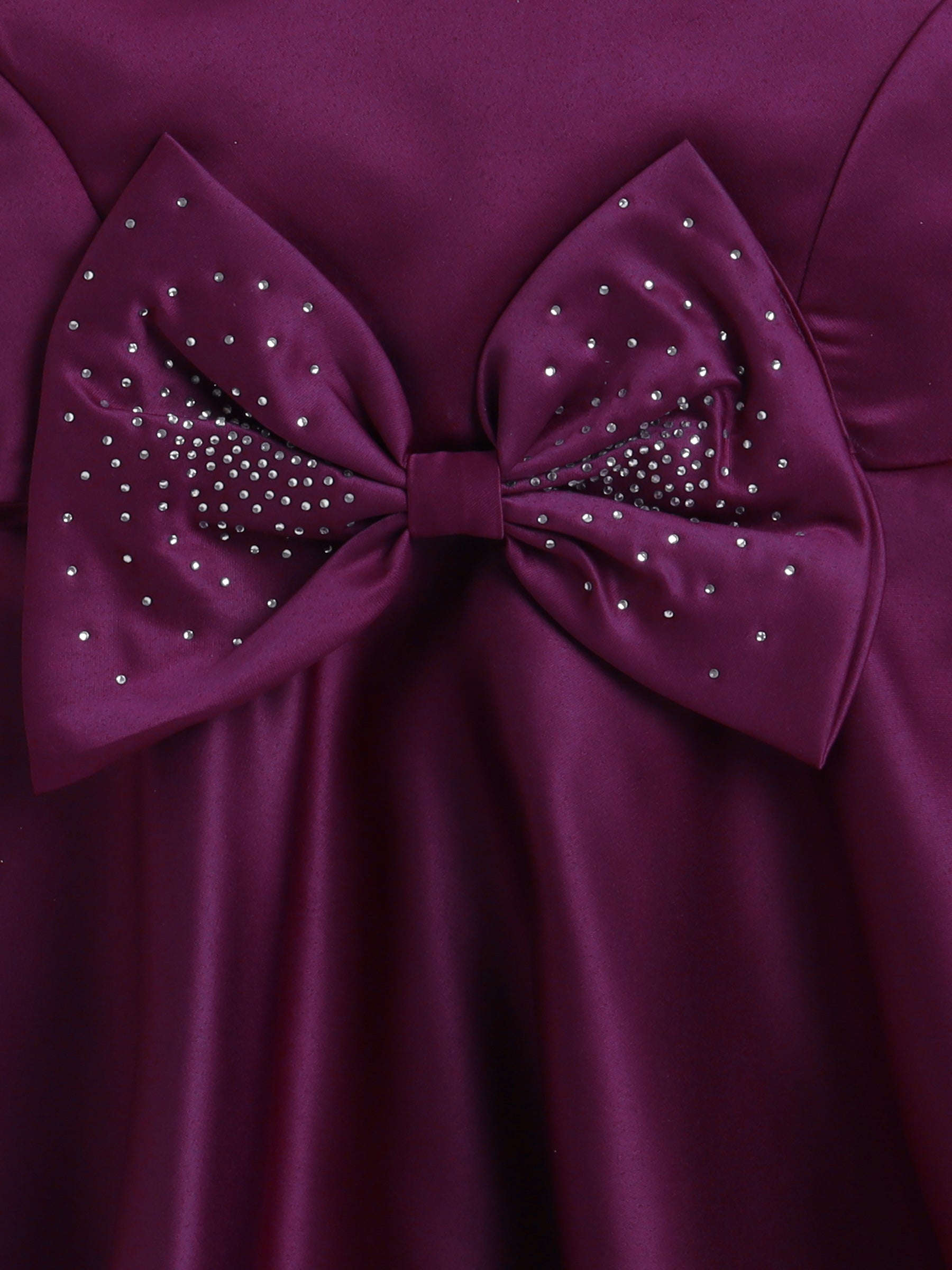 Sleeveless Bow & Stone Embellished Fit & Flared Dress - Wine