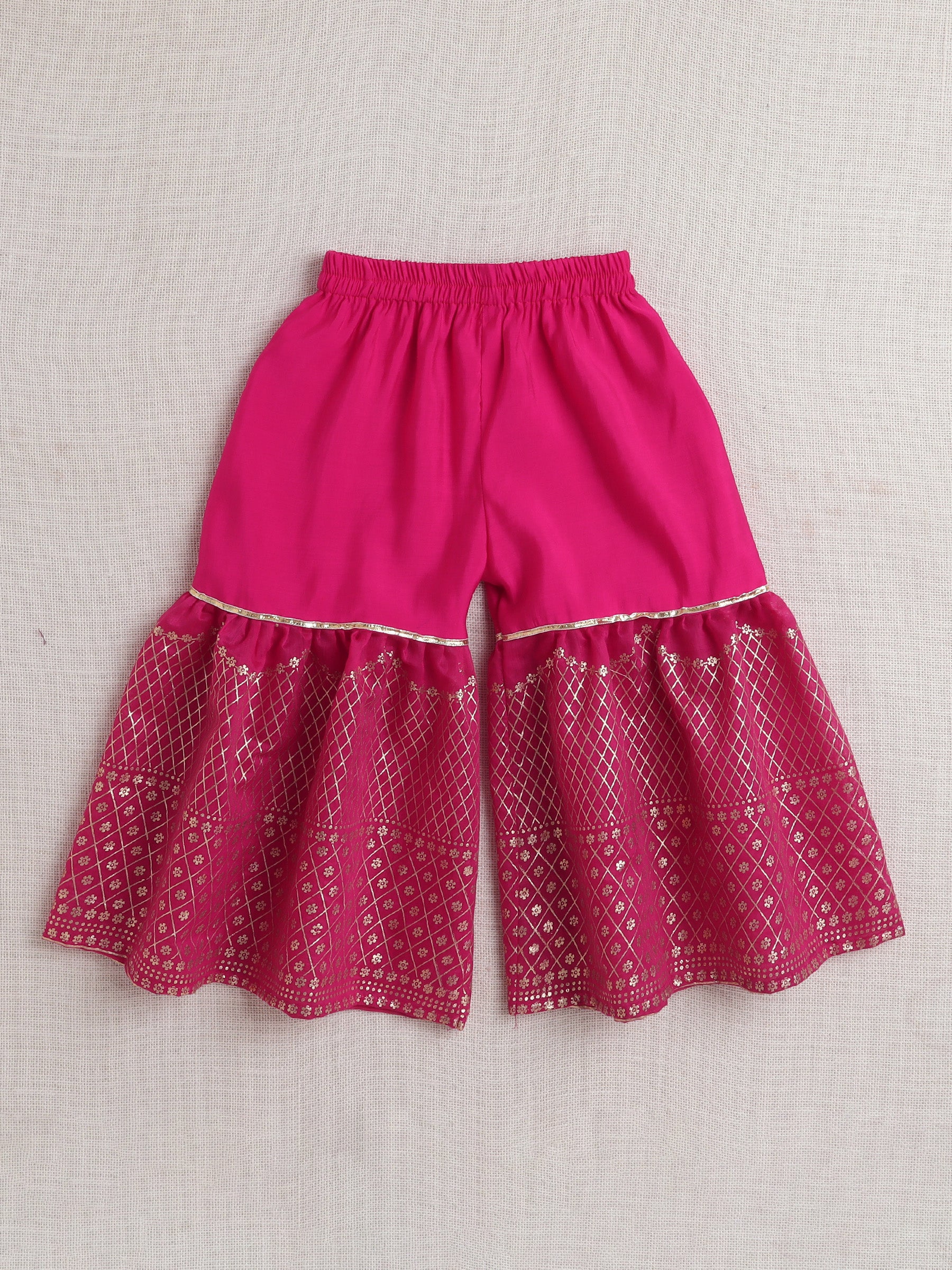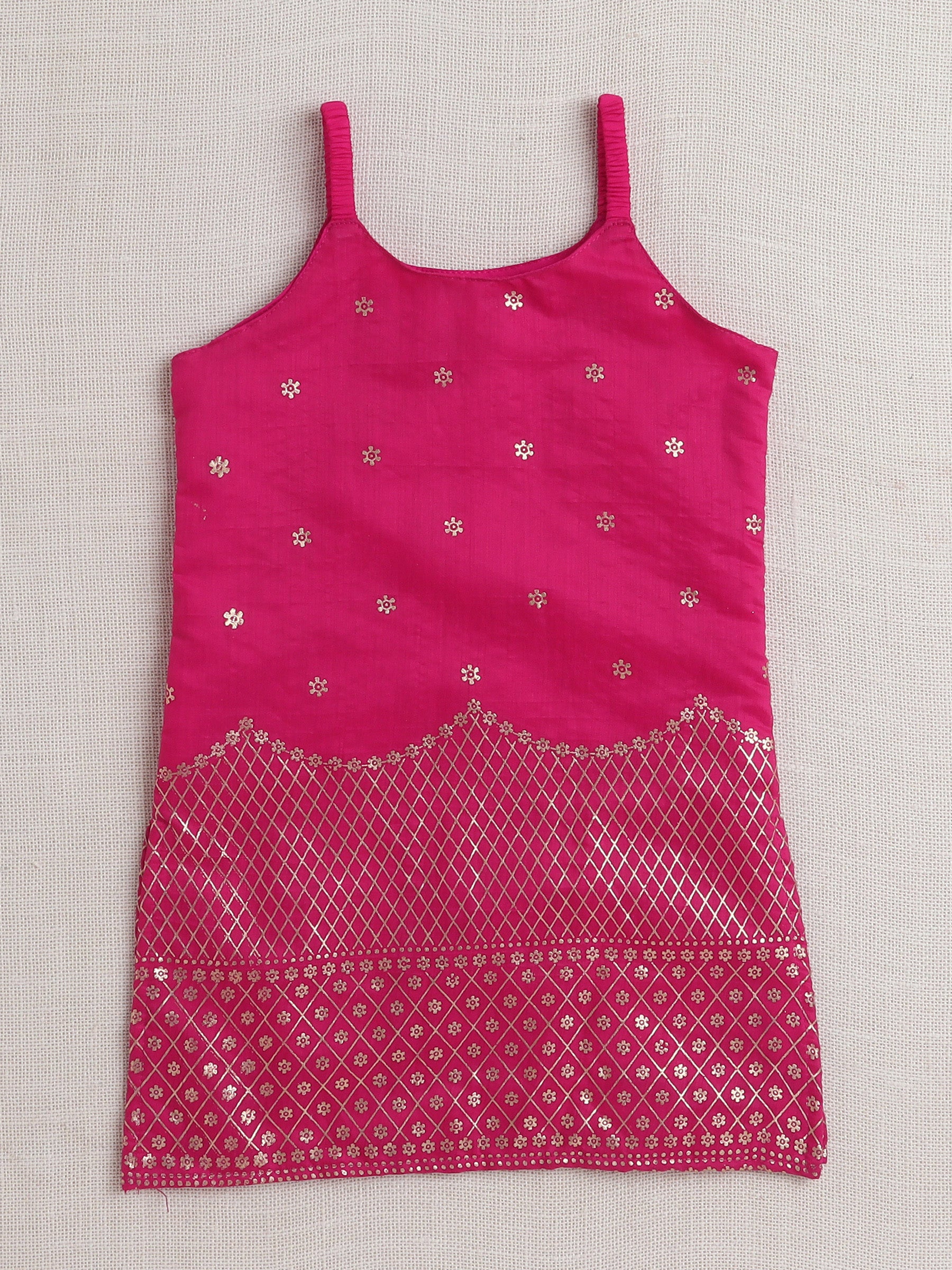 Sleeveless Embellished Kurta Set with Lace- Pink