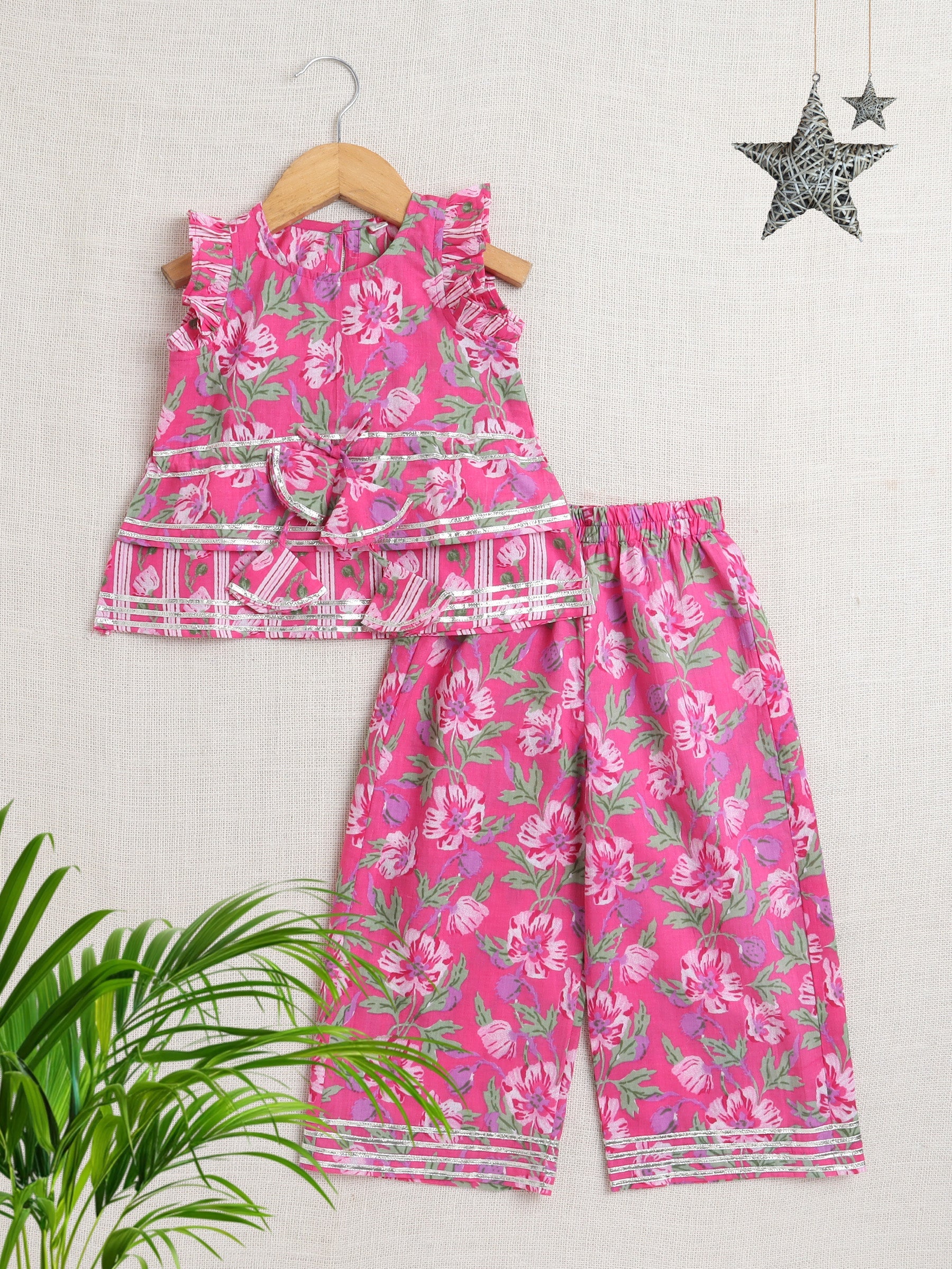 Sleeveless Floral Printed Coordinating Set - Fuchsia