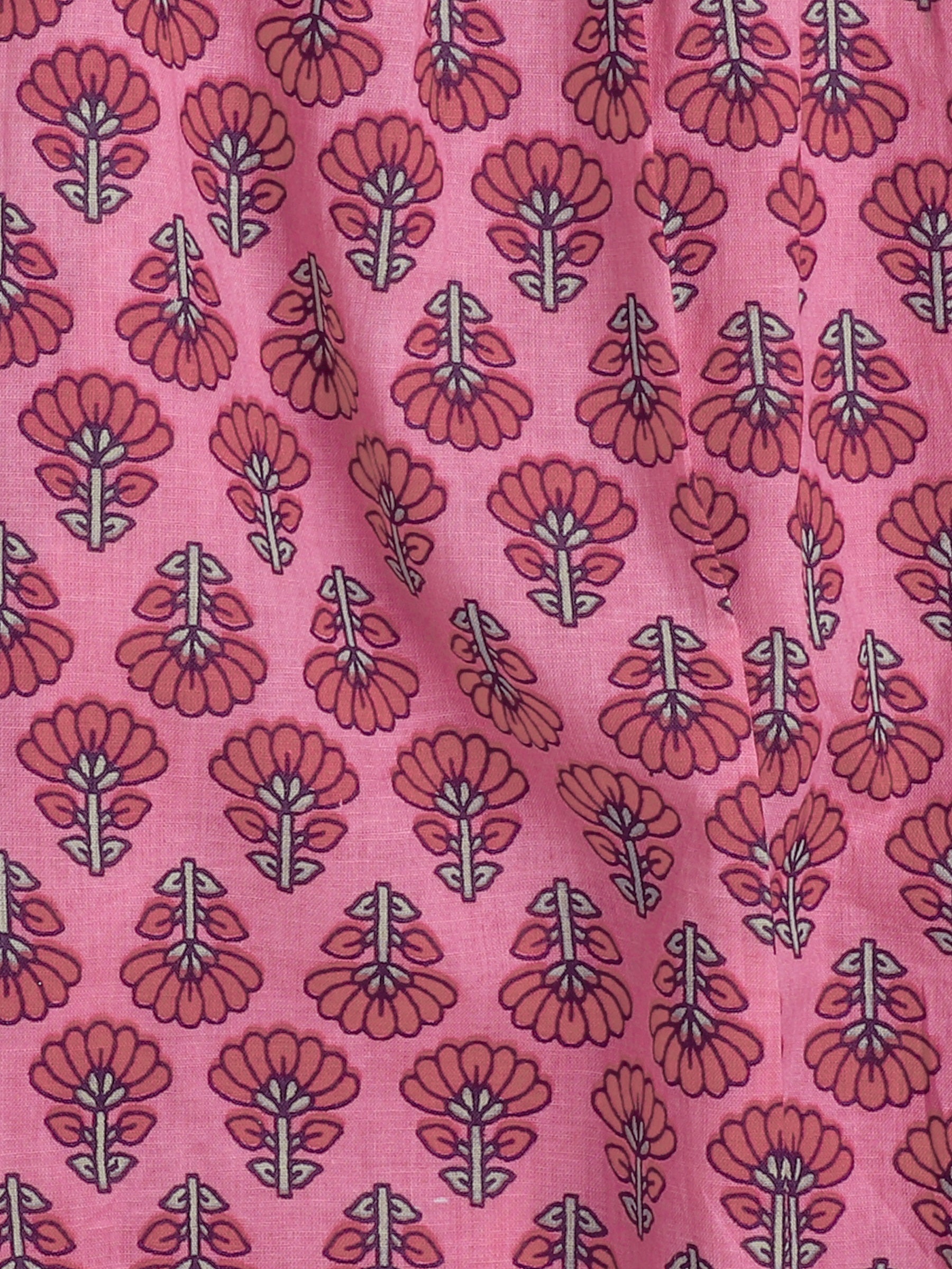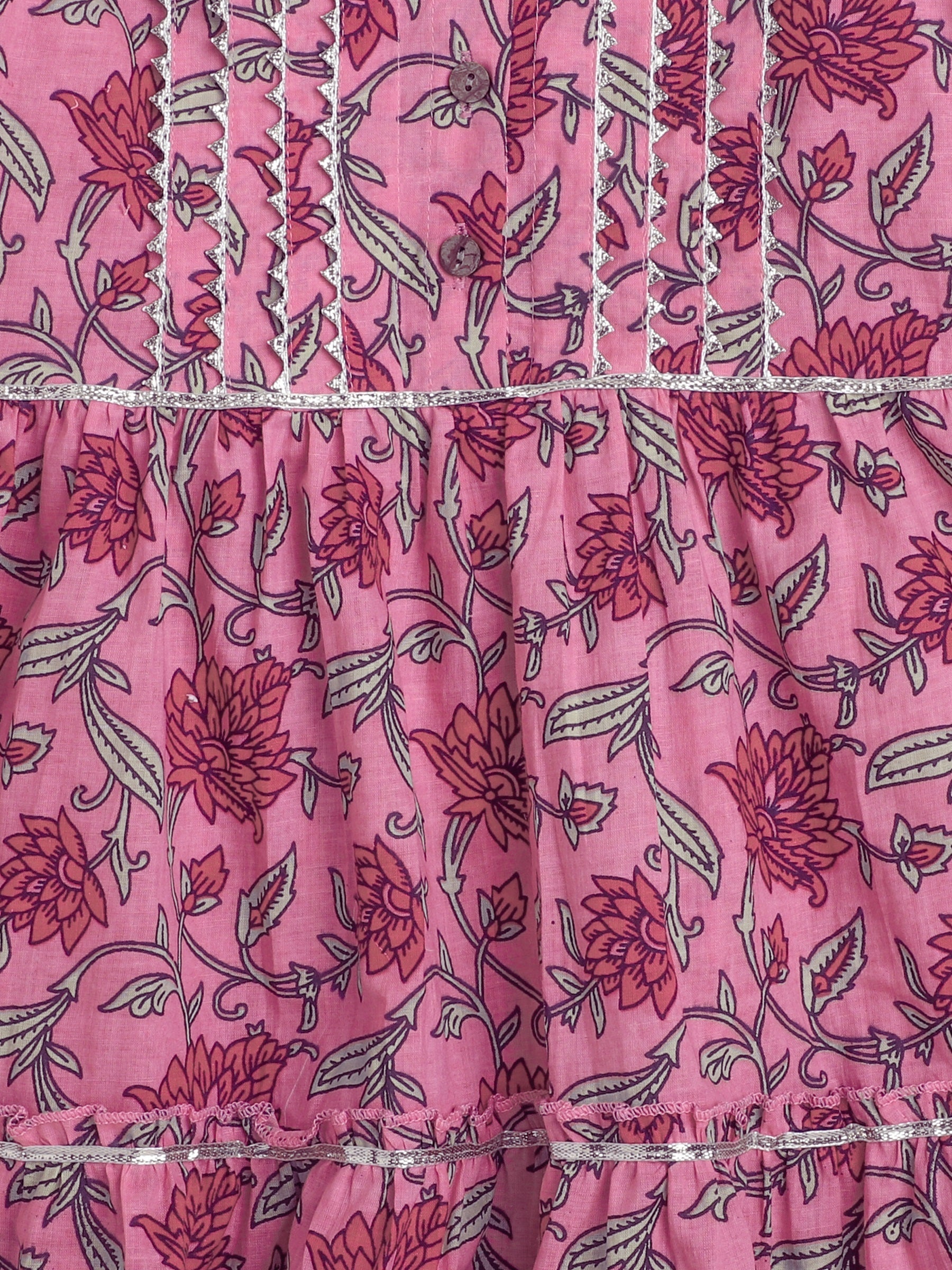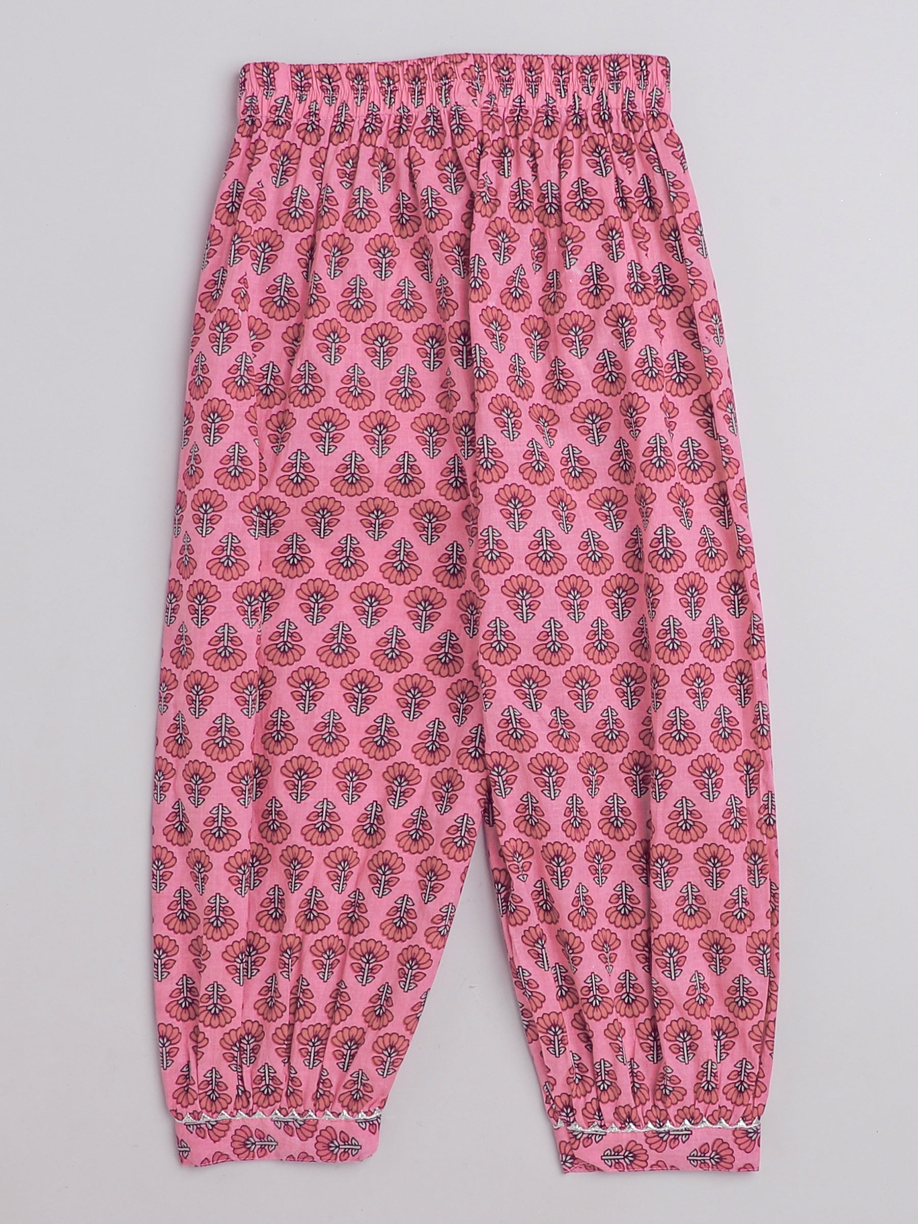 Sleeveless Floral Printed & Gota Lace Embellished Gathered Top With Afghani Pants - Pink