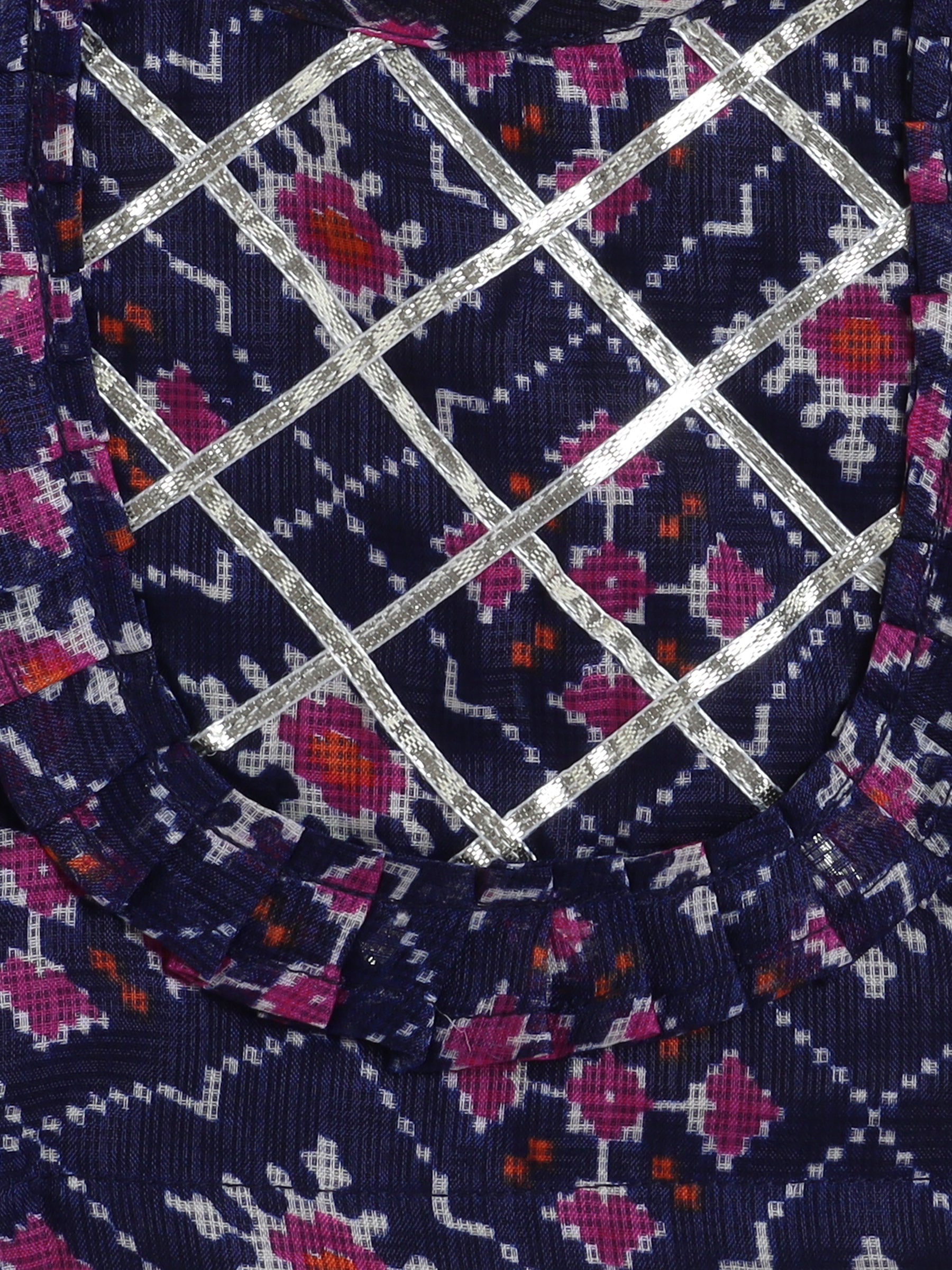 Sleeveless Floral Printed Gota Lace Embellished Top & Pant Set Co-Ords Set-Navy Blue