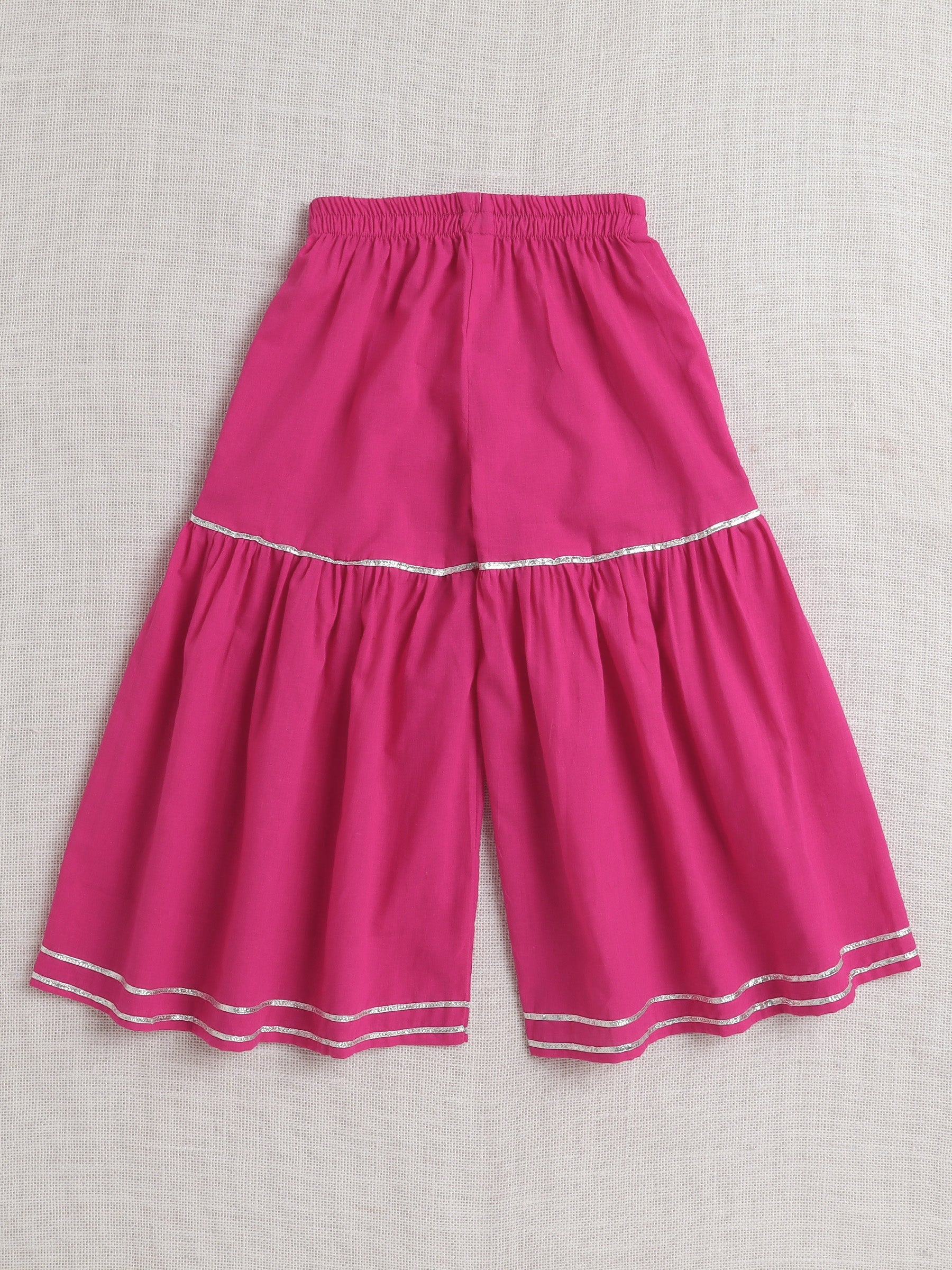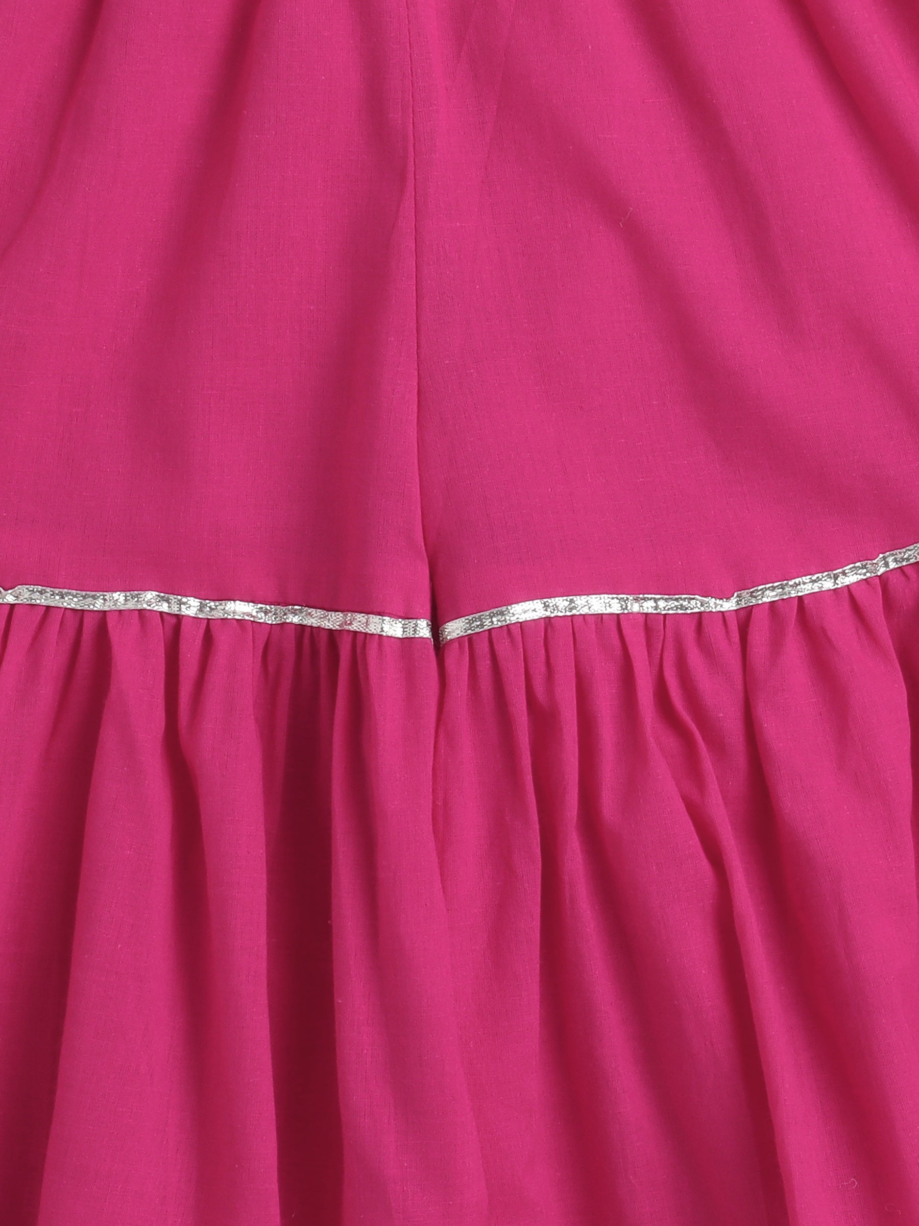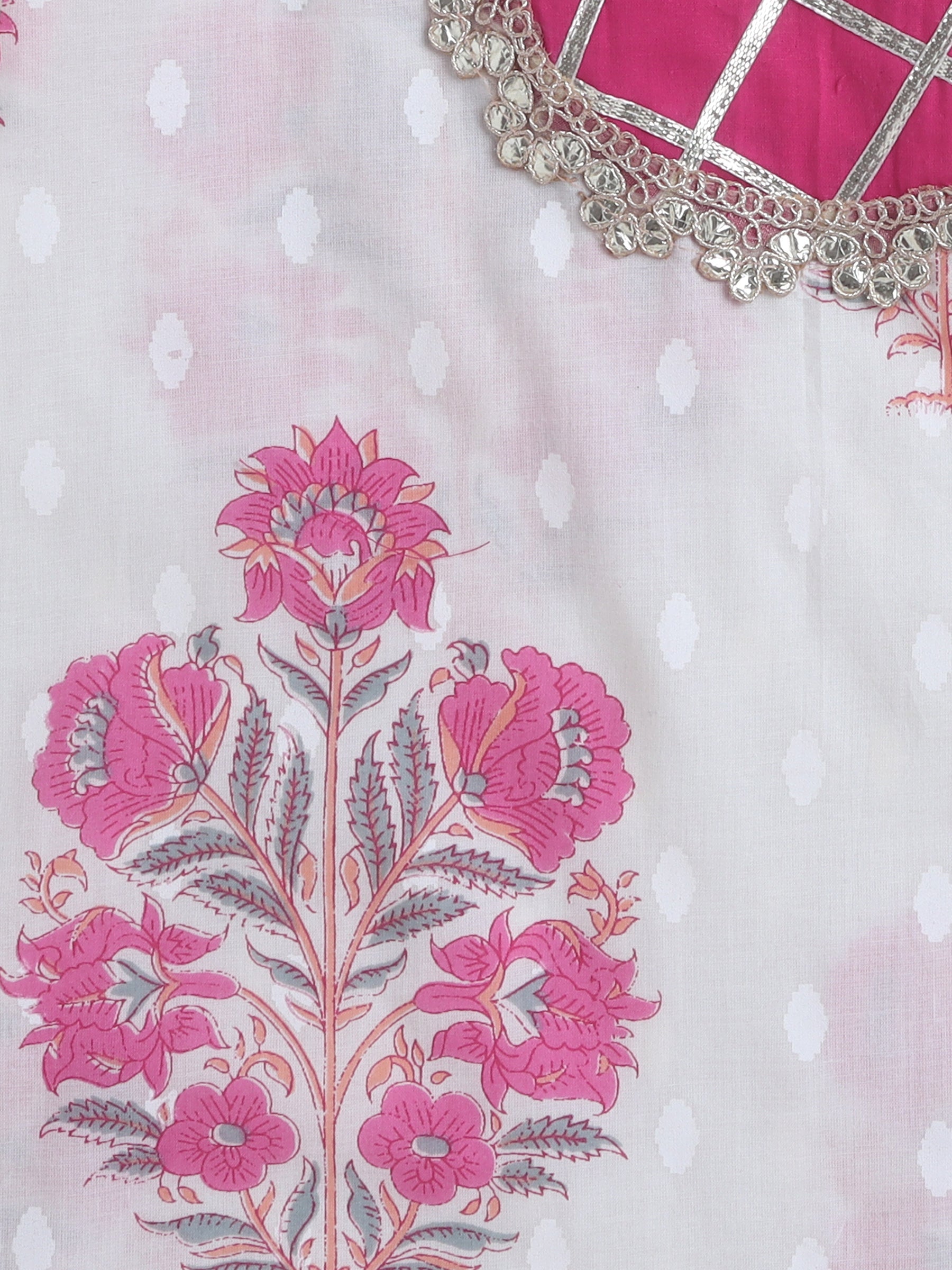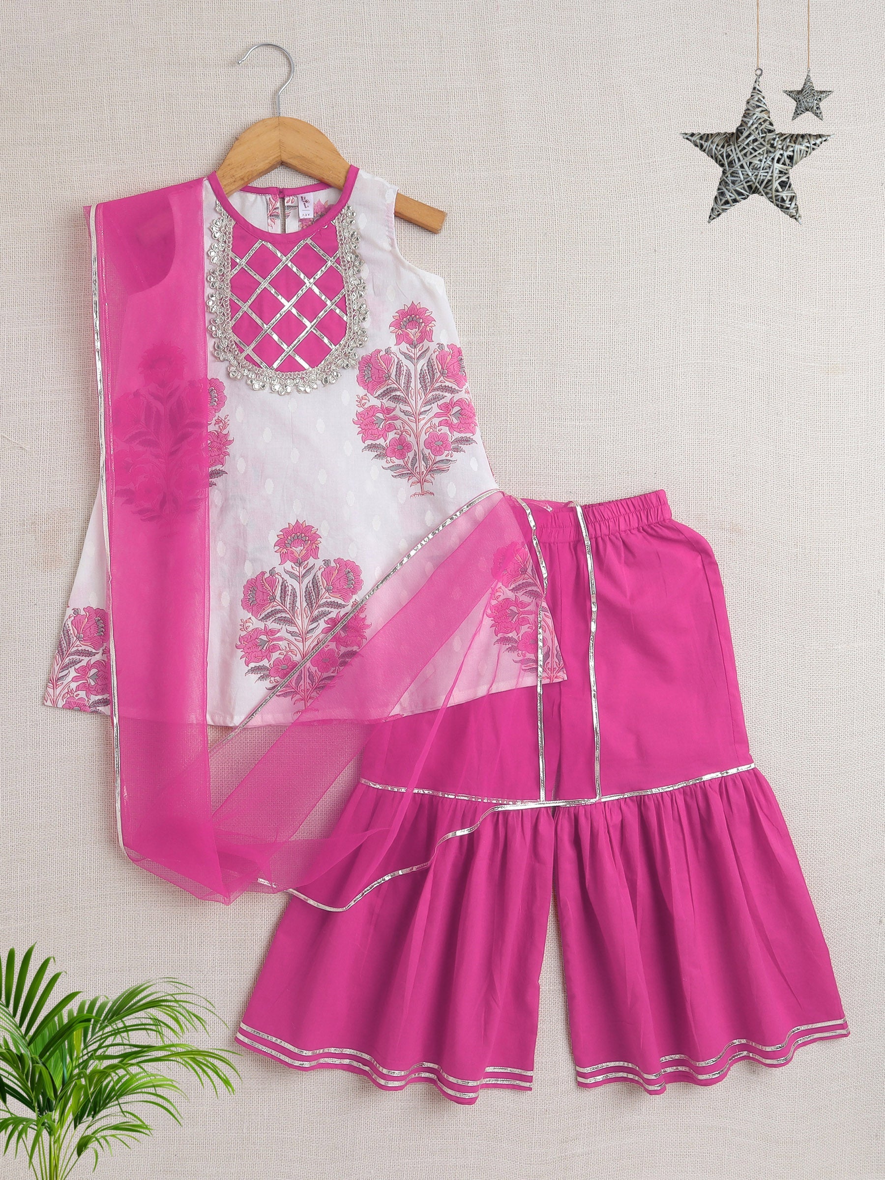 Sleeveless Floral Printed & Lace Embellished Kurta Sharara & Duppata Set- Pink