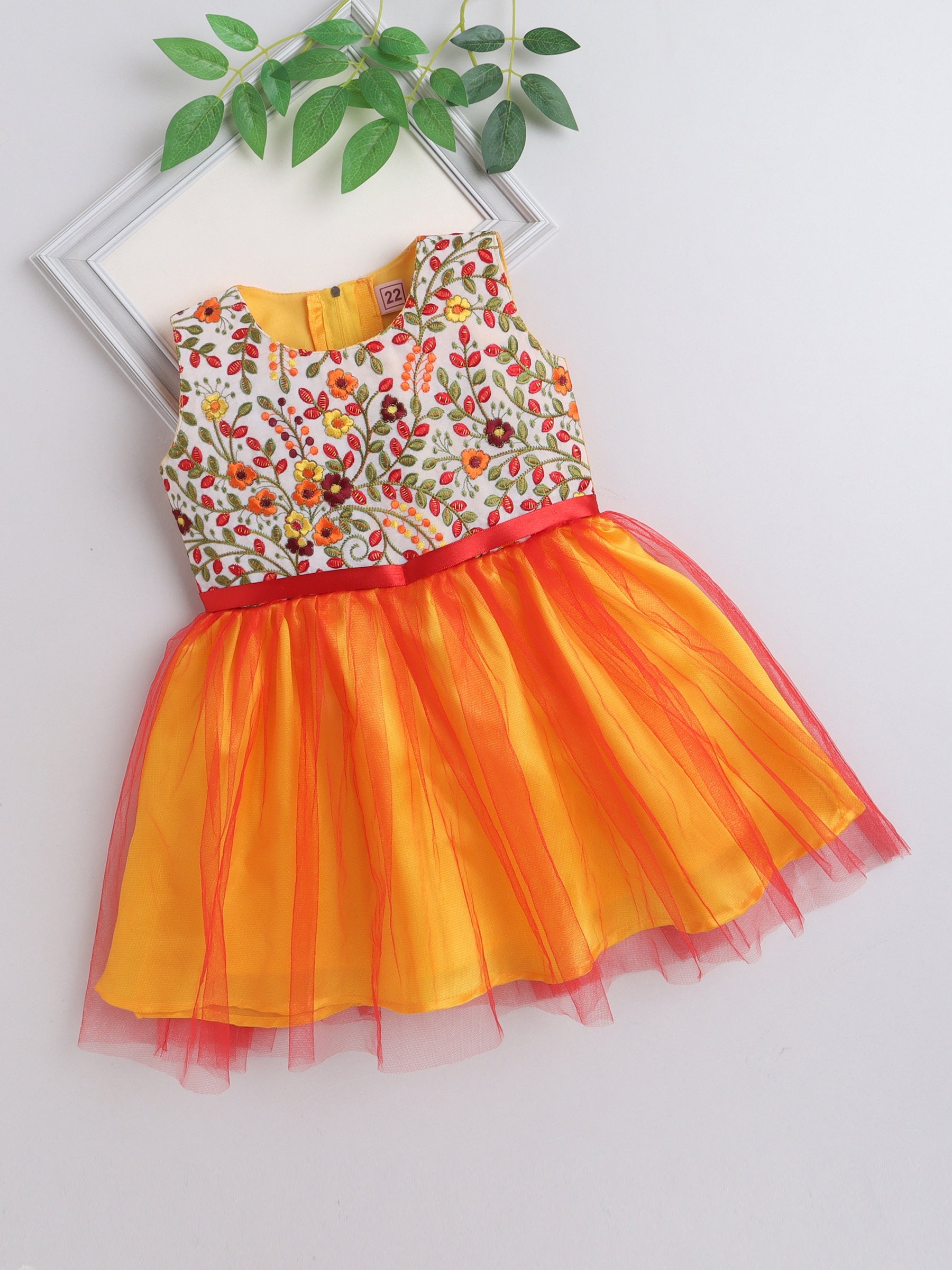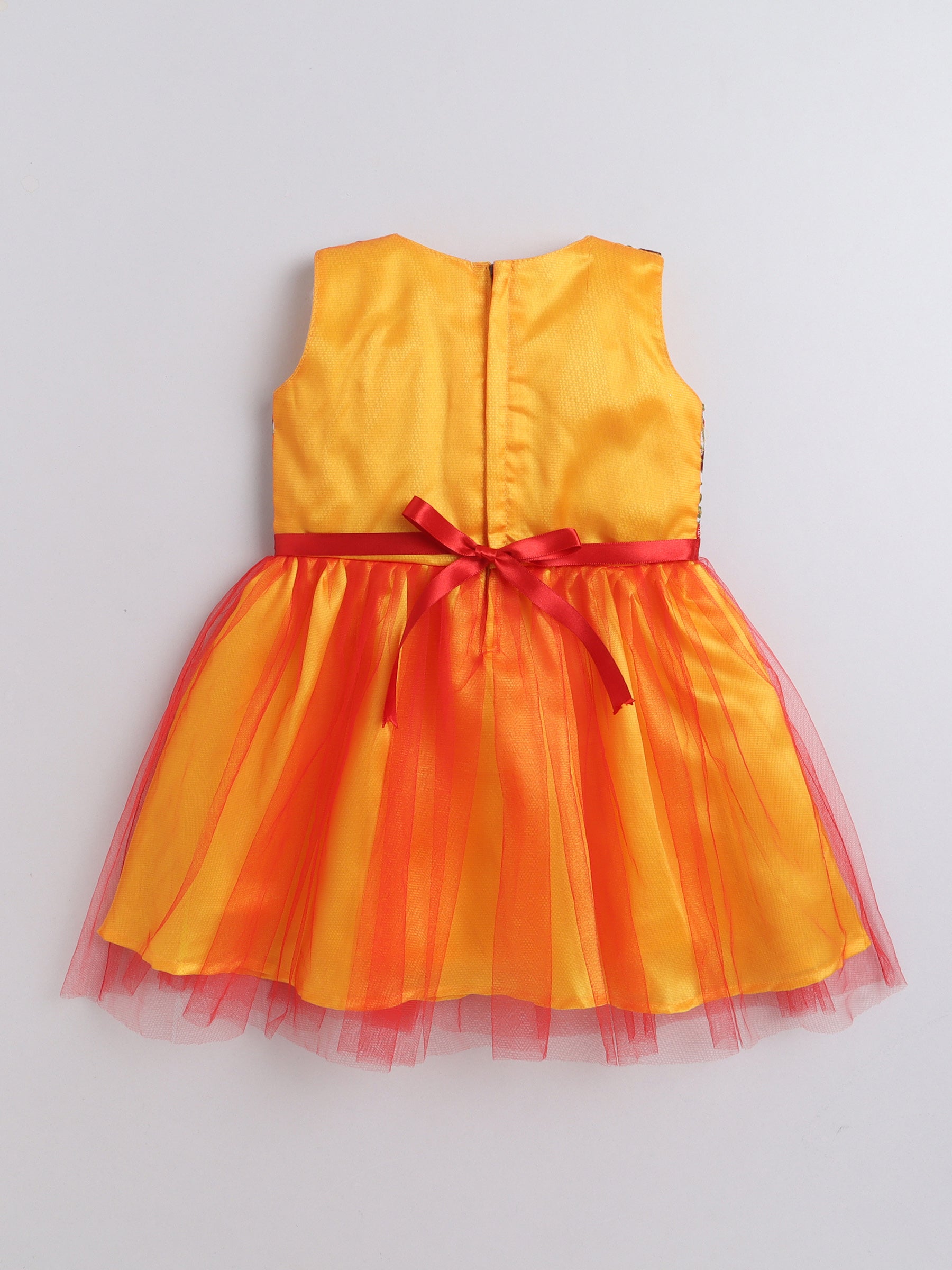 Sleeveless Kashmir Garden Embroidered Tulle Overlay Sleeveless Party Dress - Yellow And Red