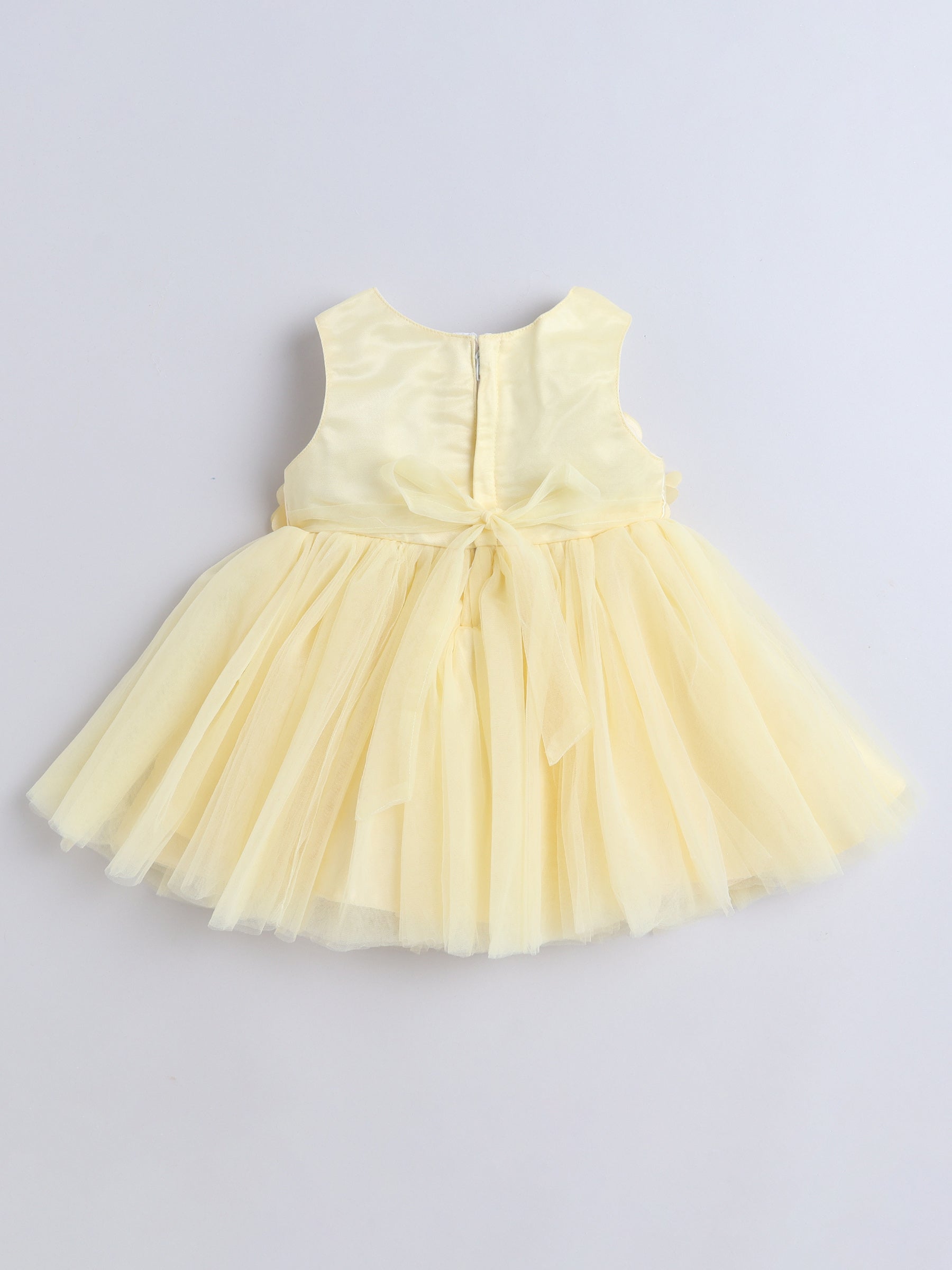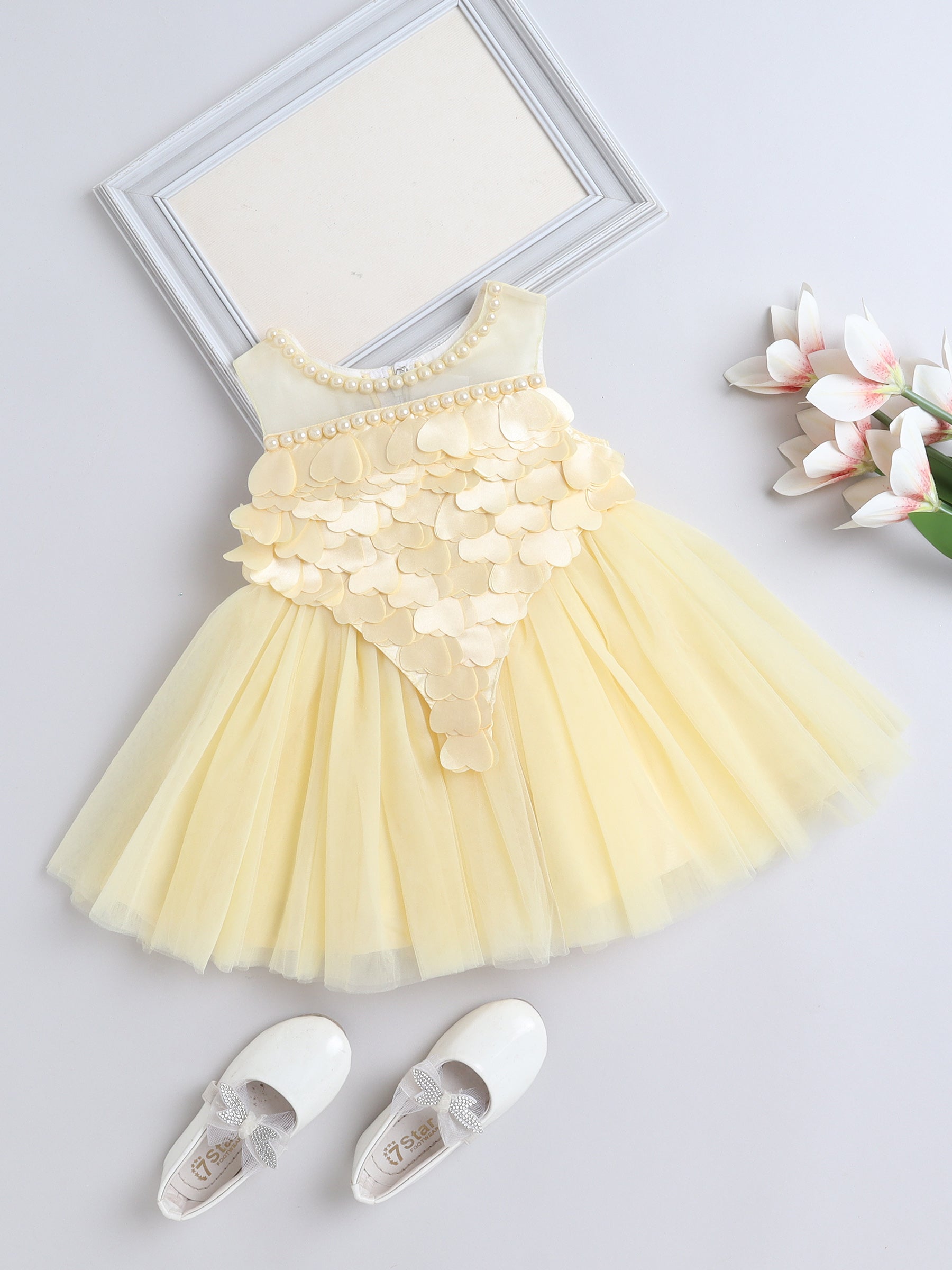 Sleeveless Pearls & Heart Bodice Embellished Flared Dress - Yellow