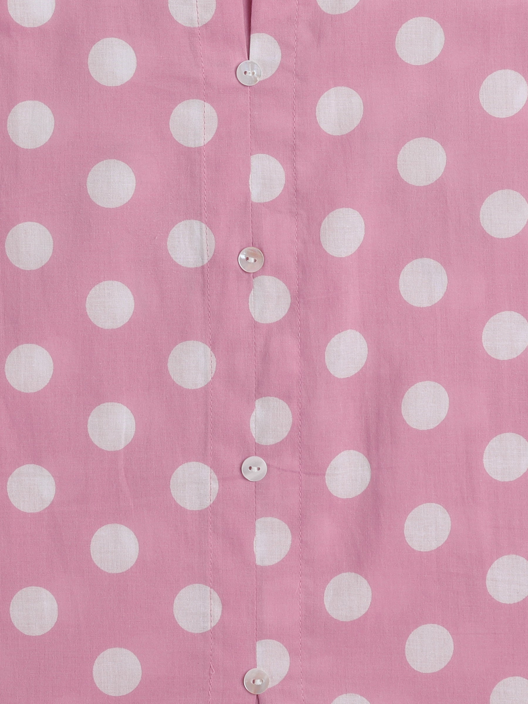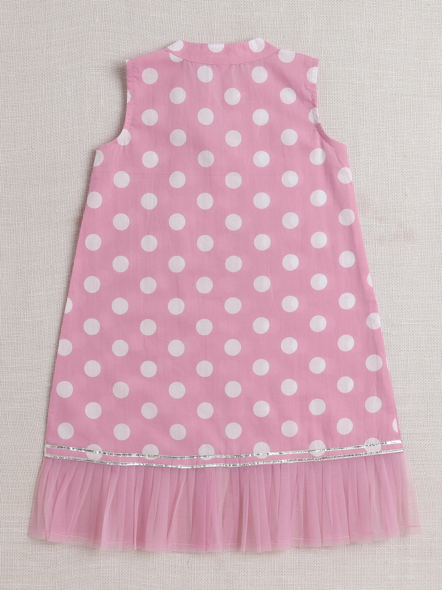 Sleeveless Polka Dots Printed & Lace Embellished Kurta With Salwar Set - Pink