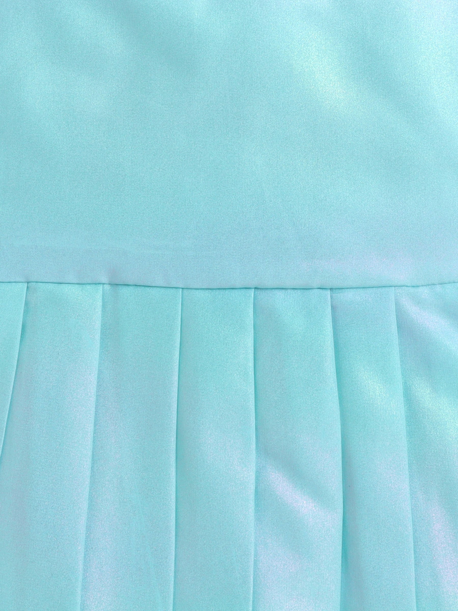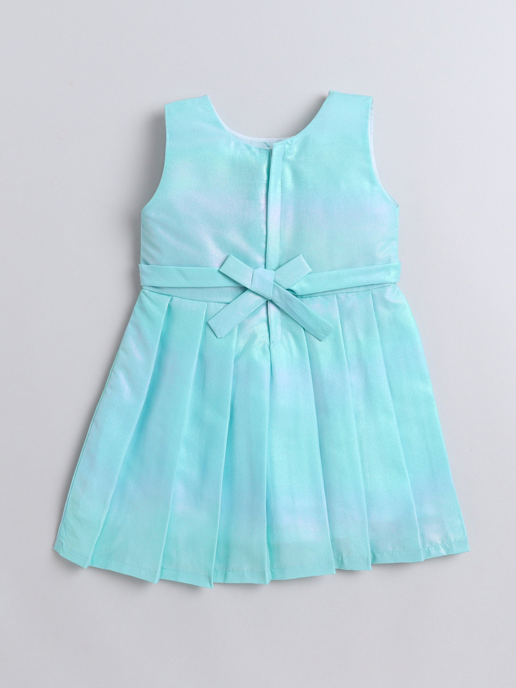 Sleeveless Solid Fit & Flare Dress With Full Sleeves Checks Printed Shrug With Applique For Girls-Aqua