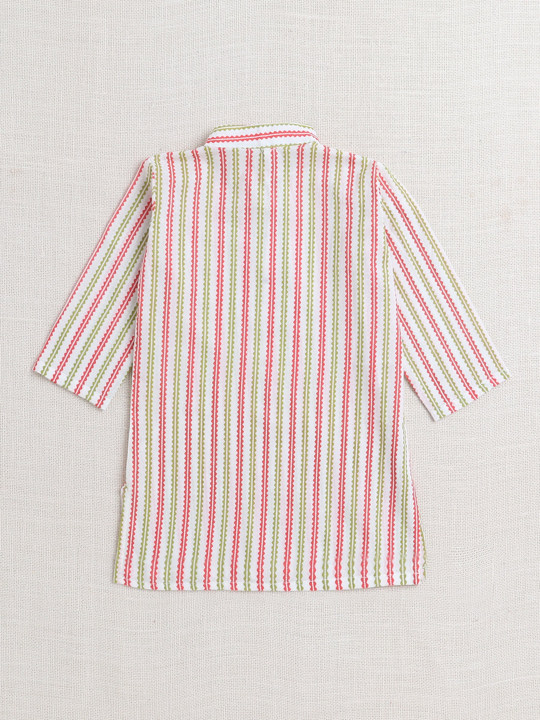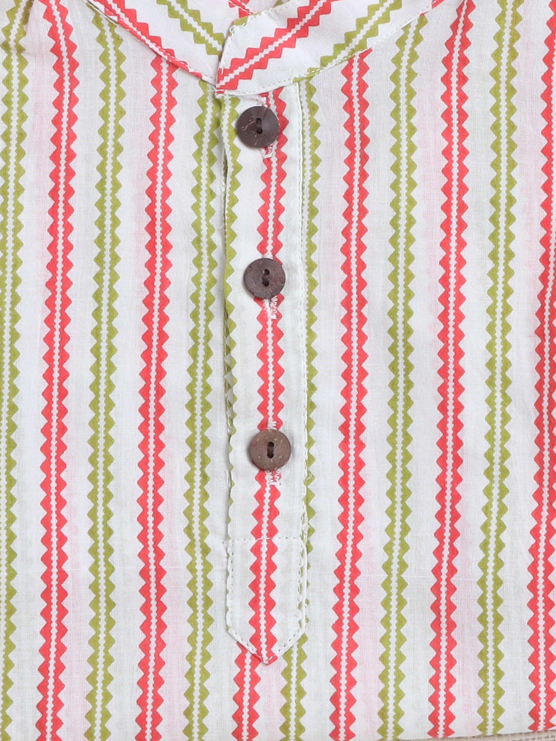 Stripes Printed Mandarin Collar Full Sleeves Kurta And Pant Set-Peach