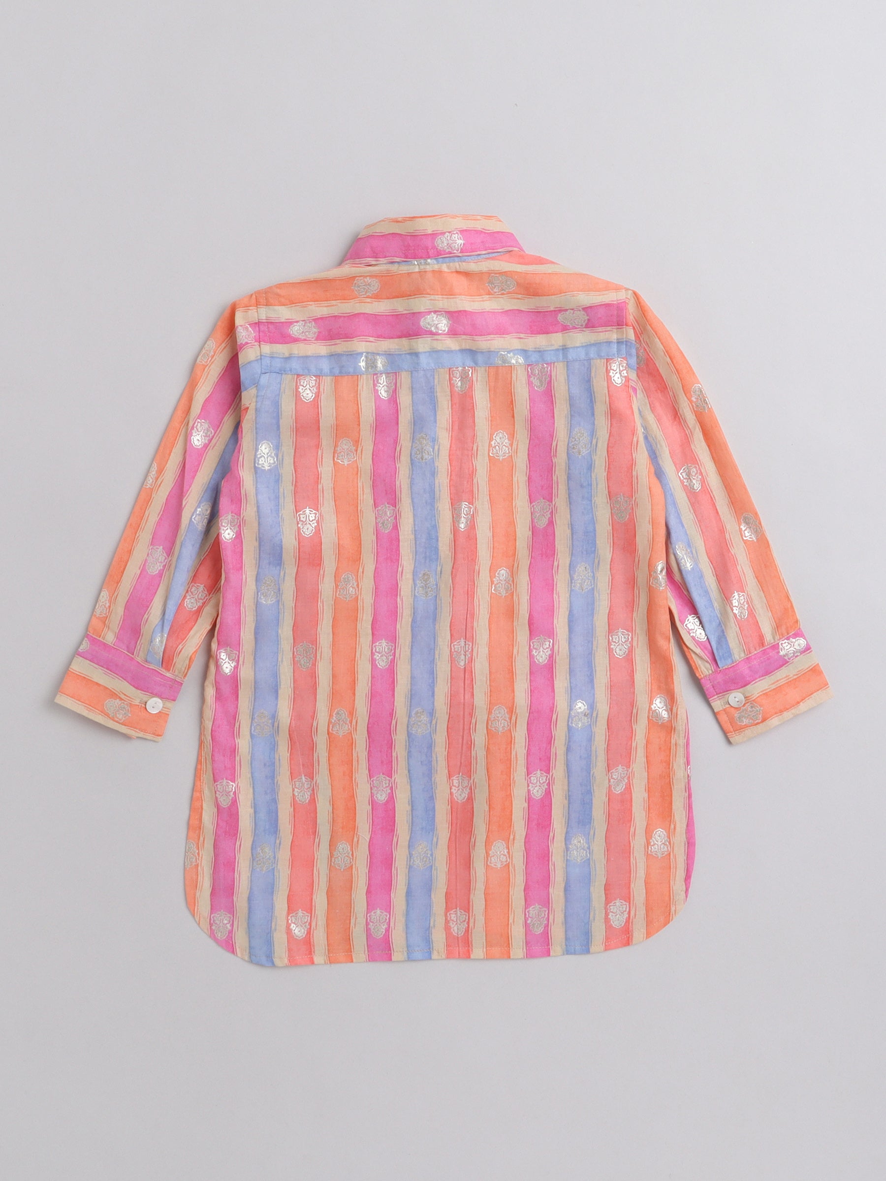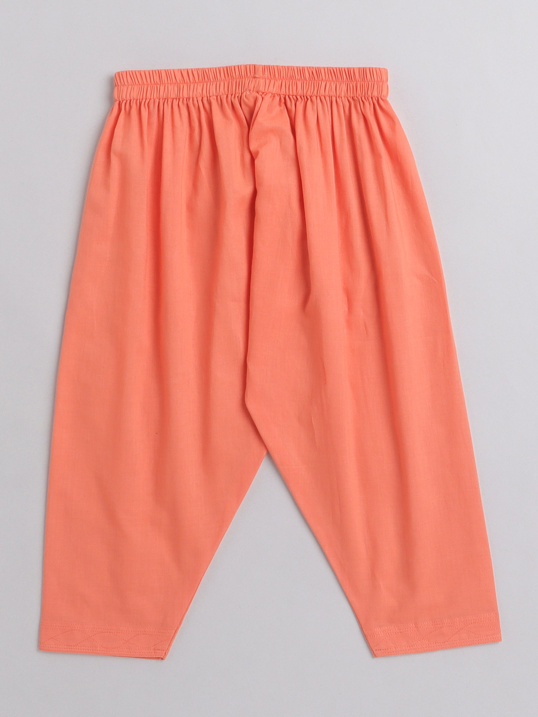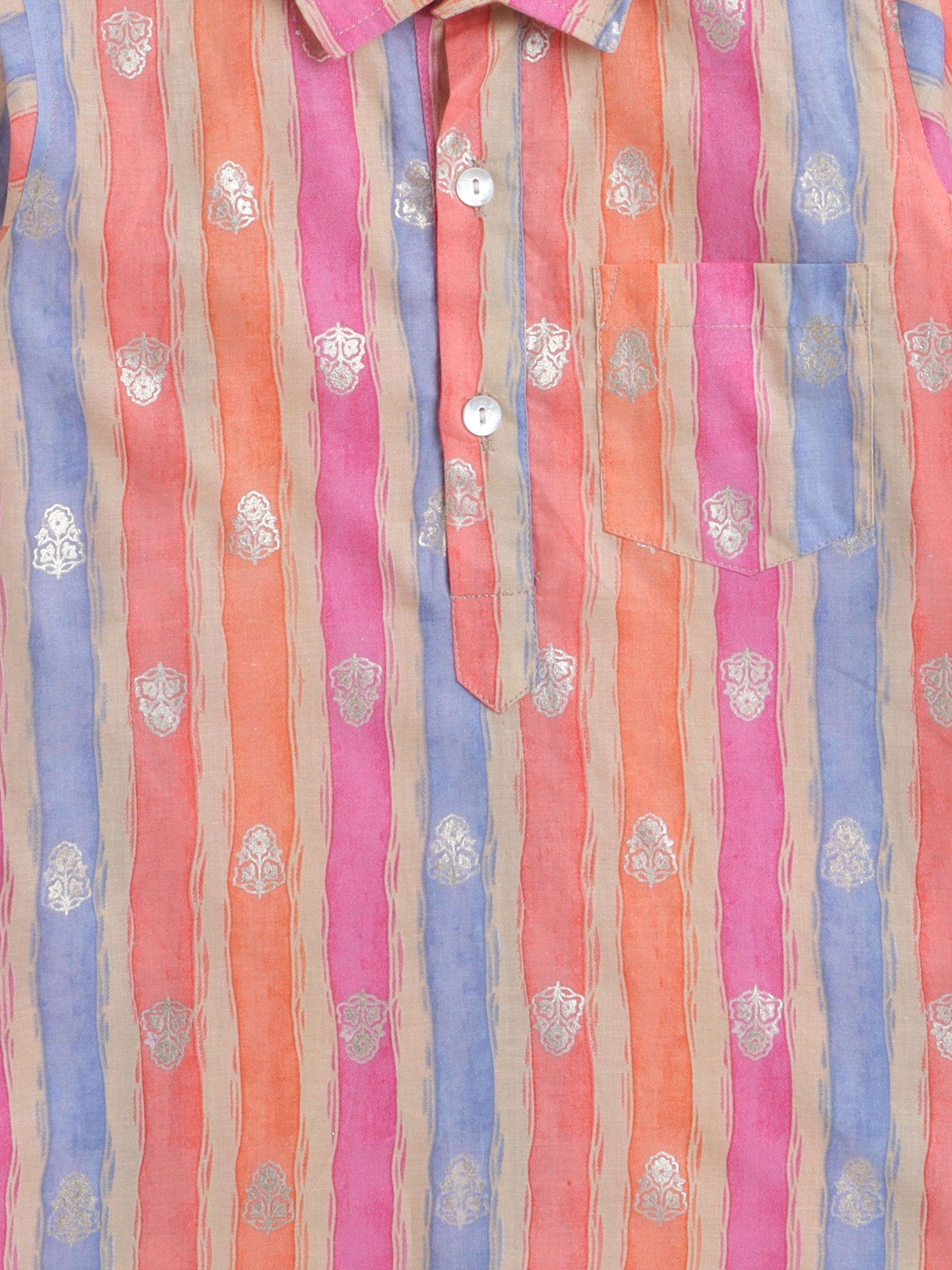 Stripes Printed Mandarin Collar Full Sleeves Pathani Kurta and Pant Set For Boys-Peach