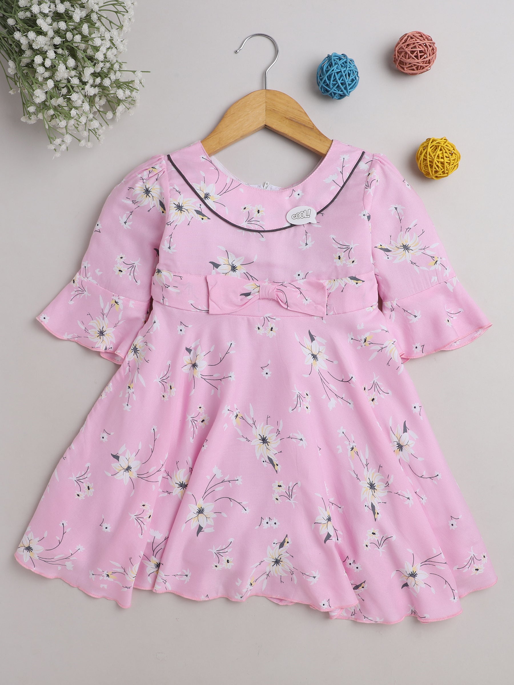 The Magic Wand All Over Printed 3/4th Sleeves Fit & Flare Dress Pink