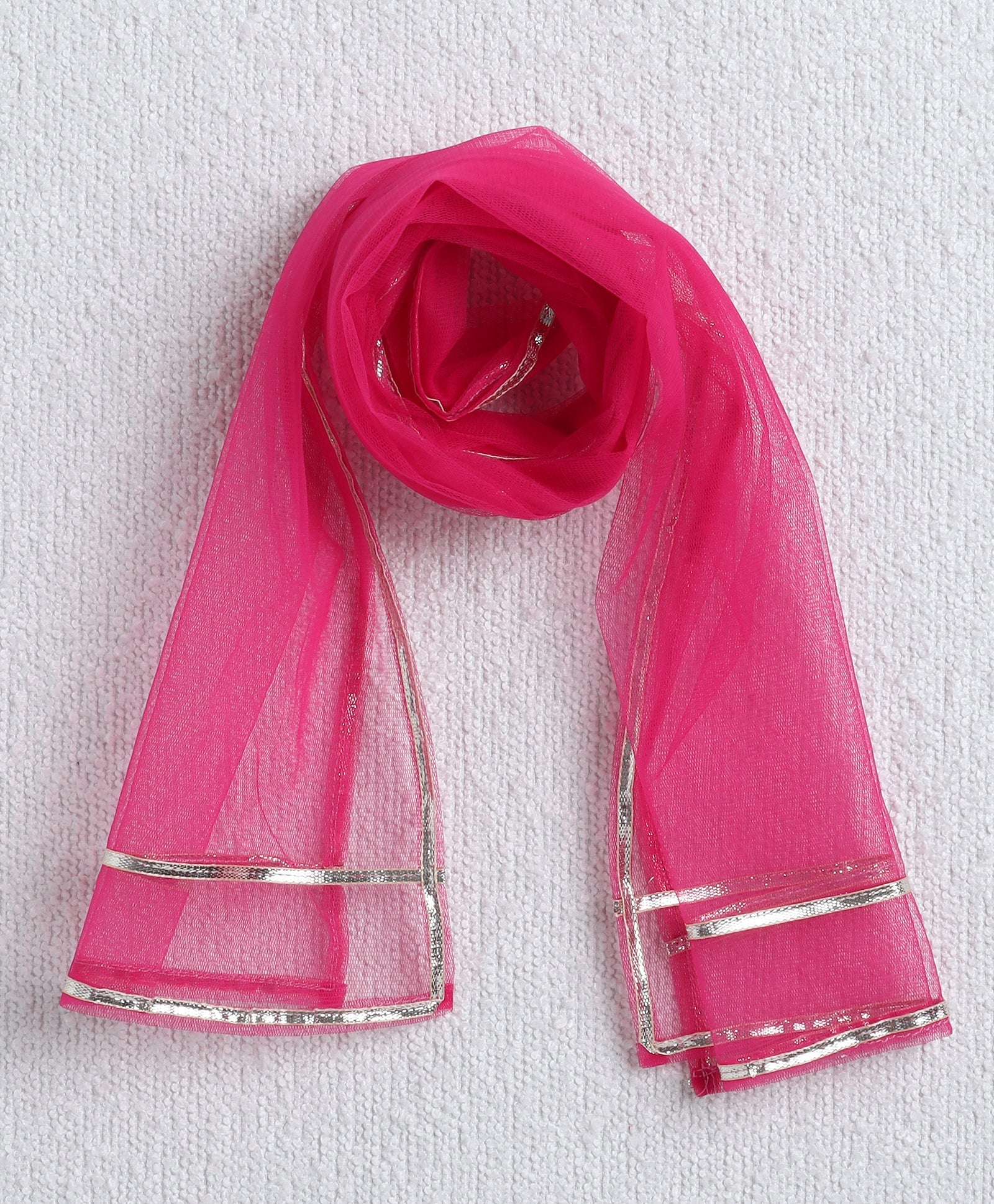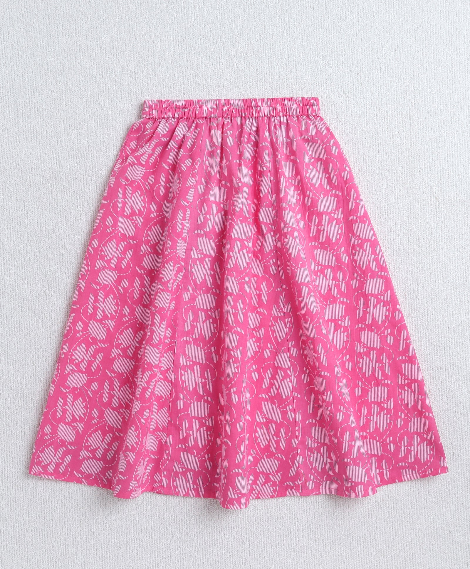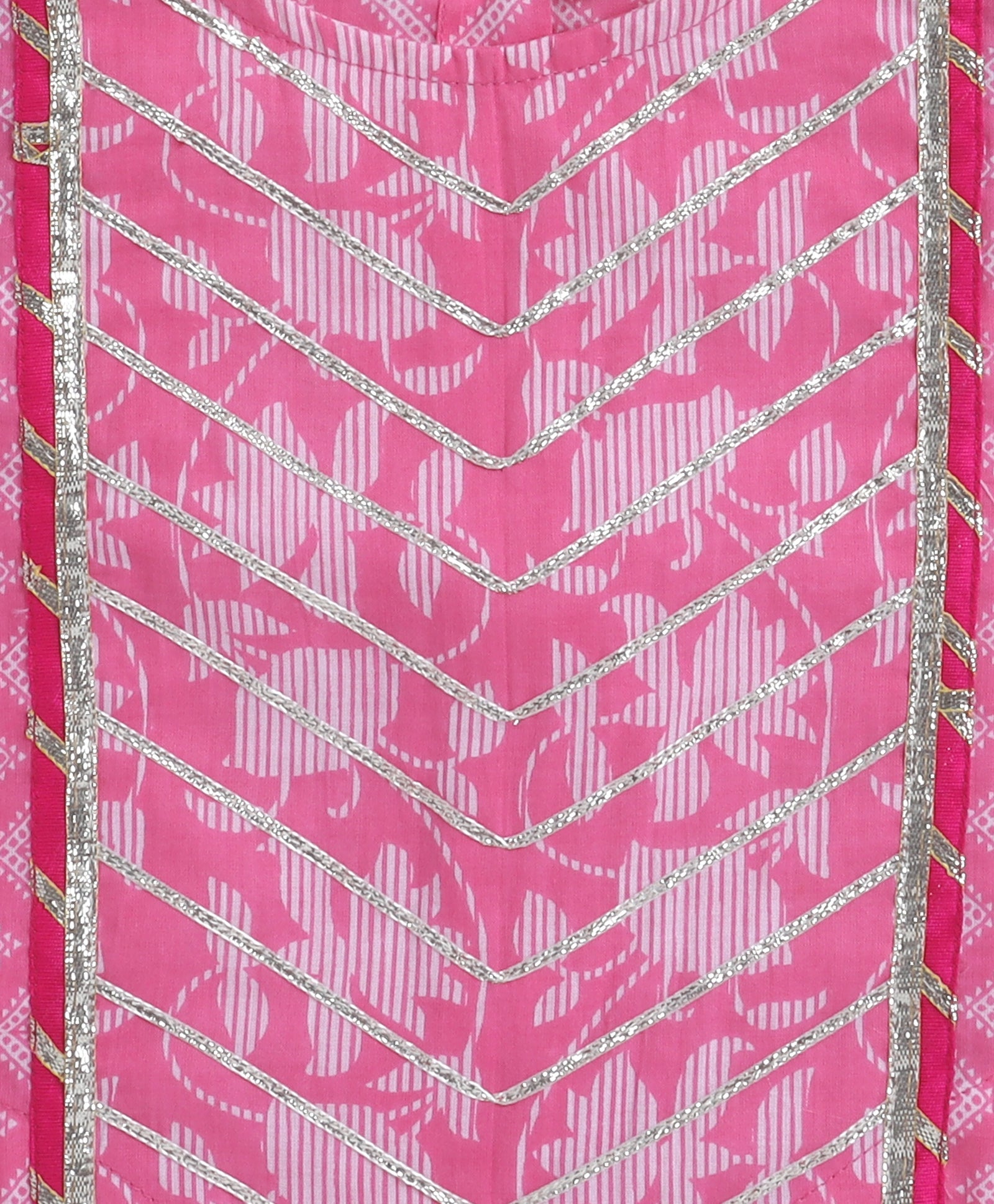 The Magic Wand Cambric Cotton Frill Sleeves AII Over Printed Lace Detailing Choli and Lehenga With Dupatta Set- Pink