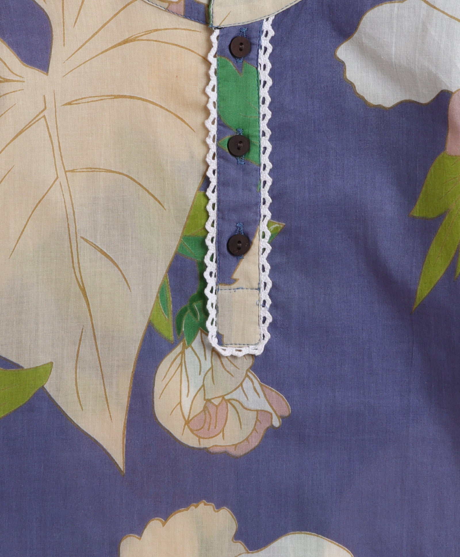 The Magic Wand Cambric Cotton woven Full Sleeves Big Floral Lace Detail Kurta Pyjama Set - Blue