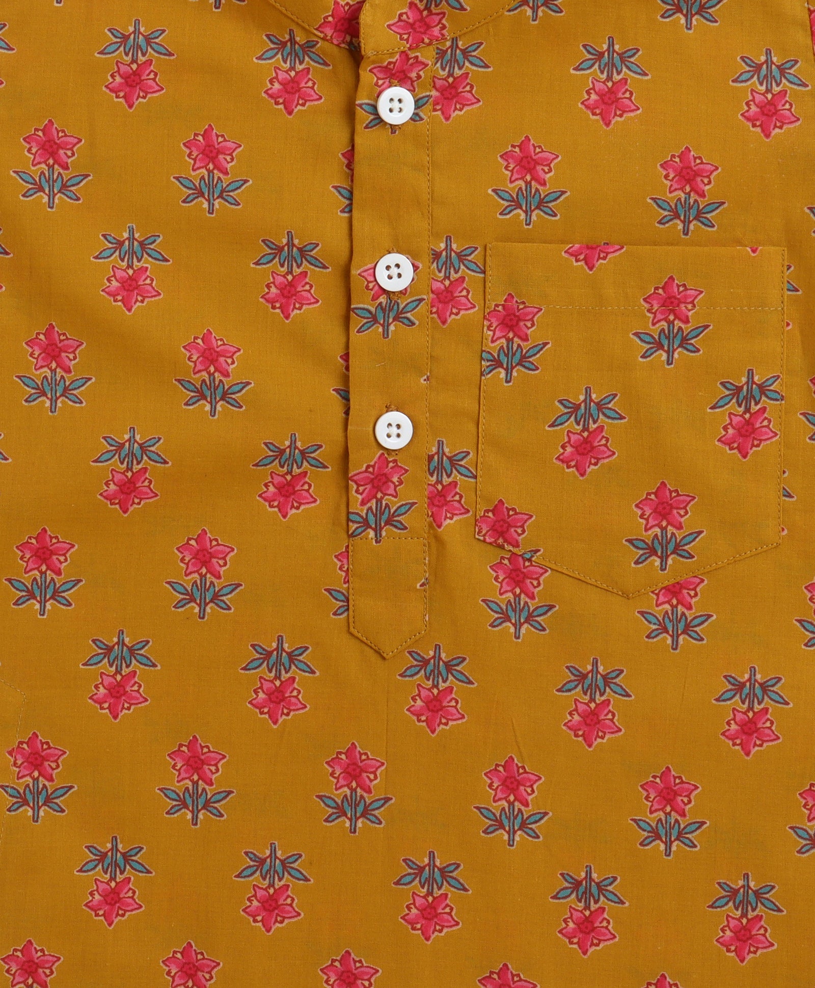 The Magic Wand Cambric Cotton woven Full Sleeves Floral Printed Kurta Pyjama With Modi Jacket - Mustard