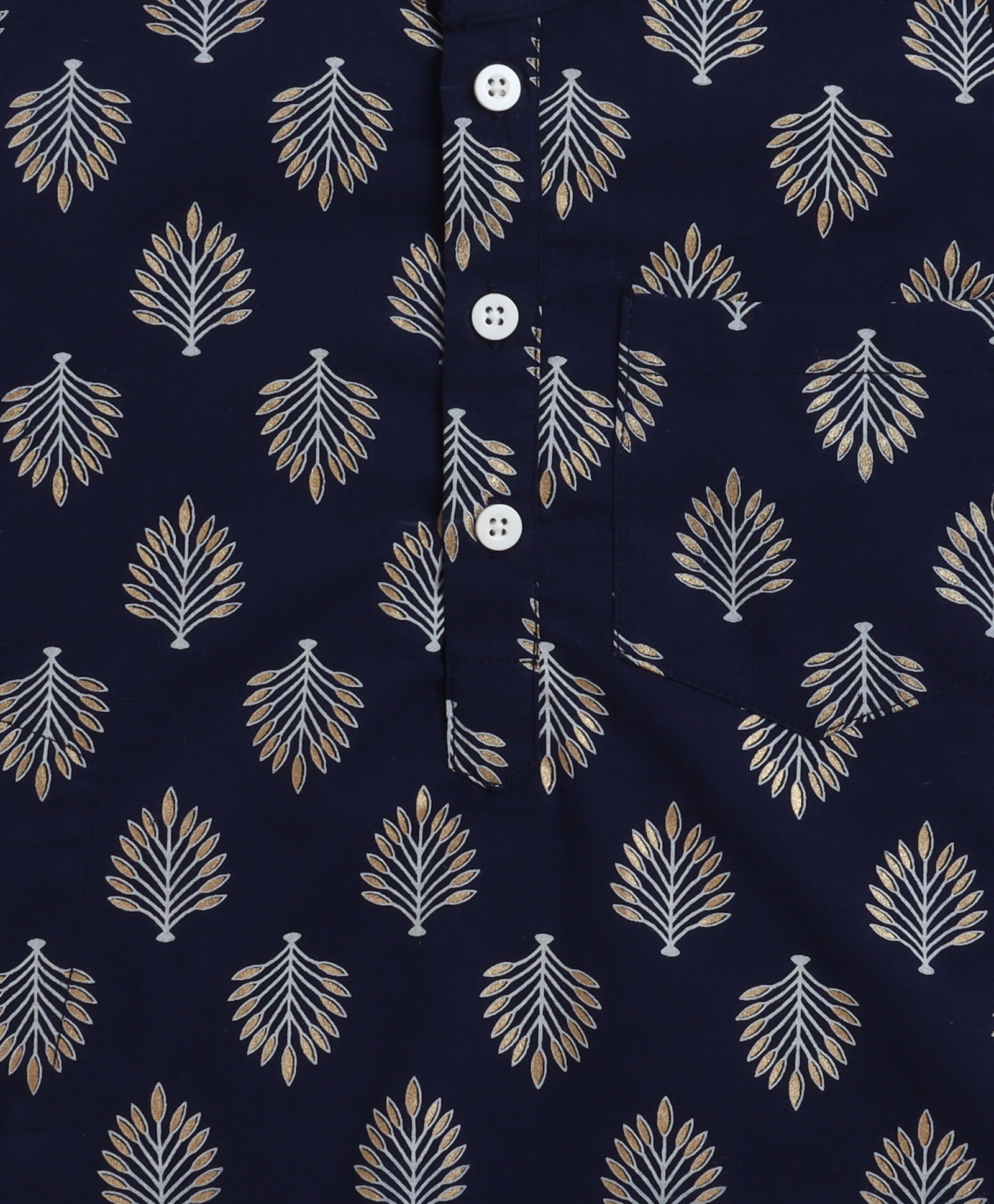 The Magic Wand Cambric Cotton woven Full Sleeves Printed Kurta Pyjama With Modi Jacket -Navy Blue