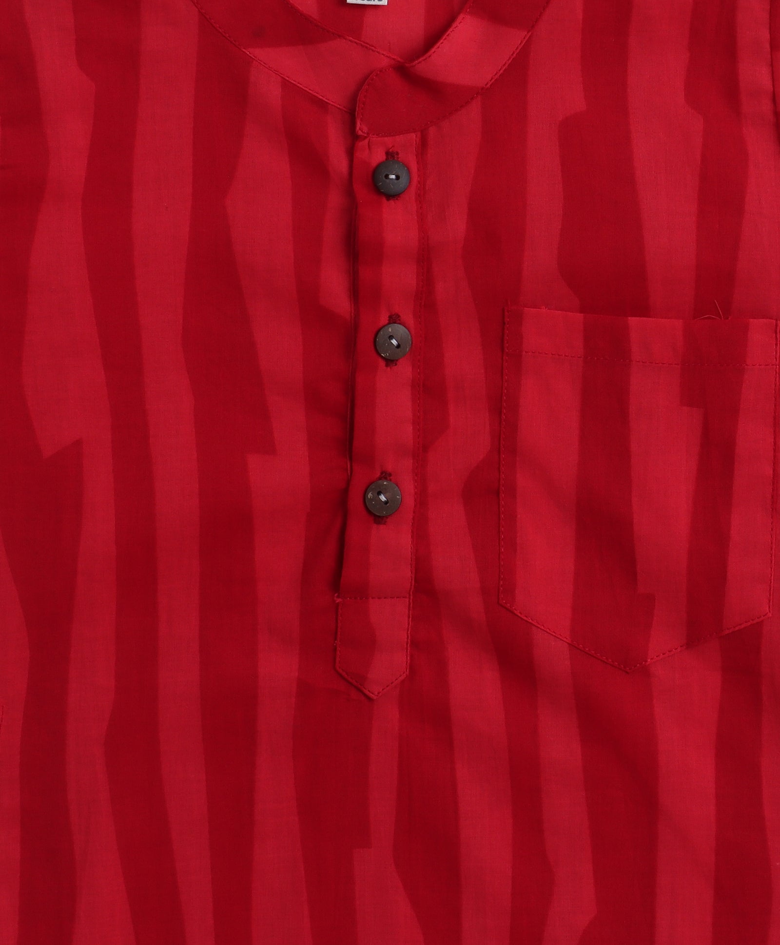 The Magic Wand Cambric Cotton Full Sleeves Stripes Printed Kurta Pyjama With Lace Modi Jacket- Red