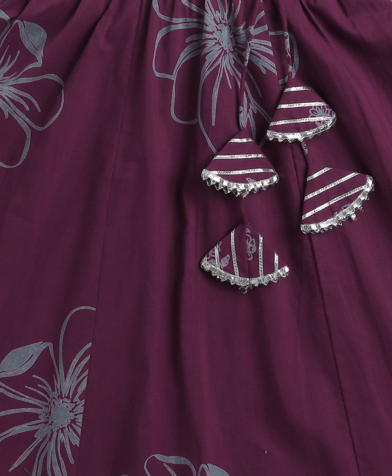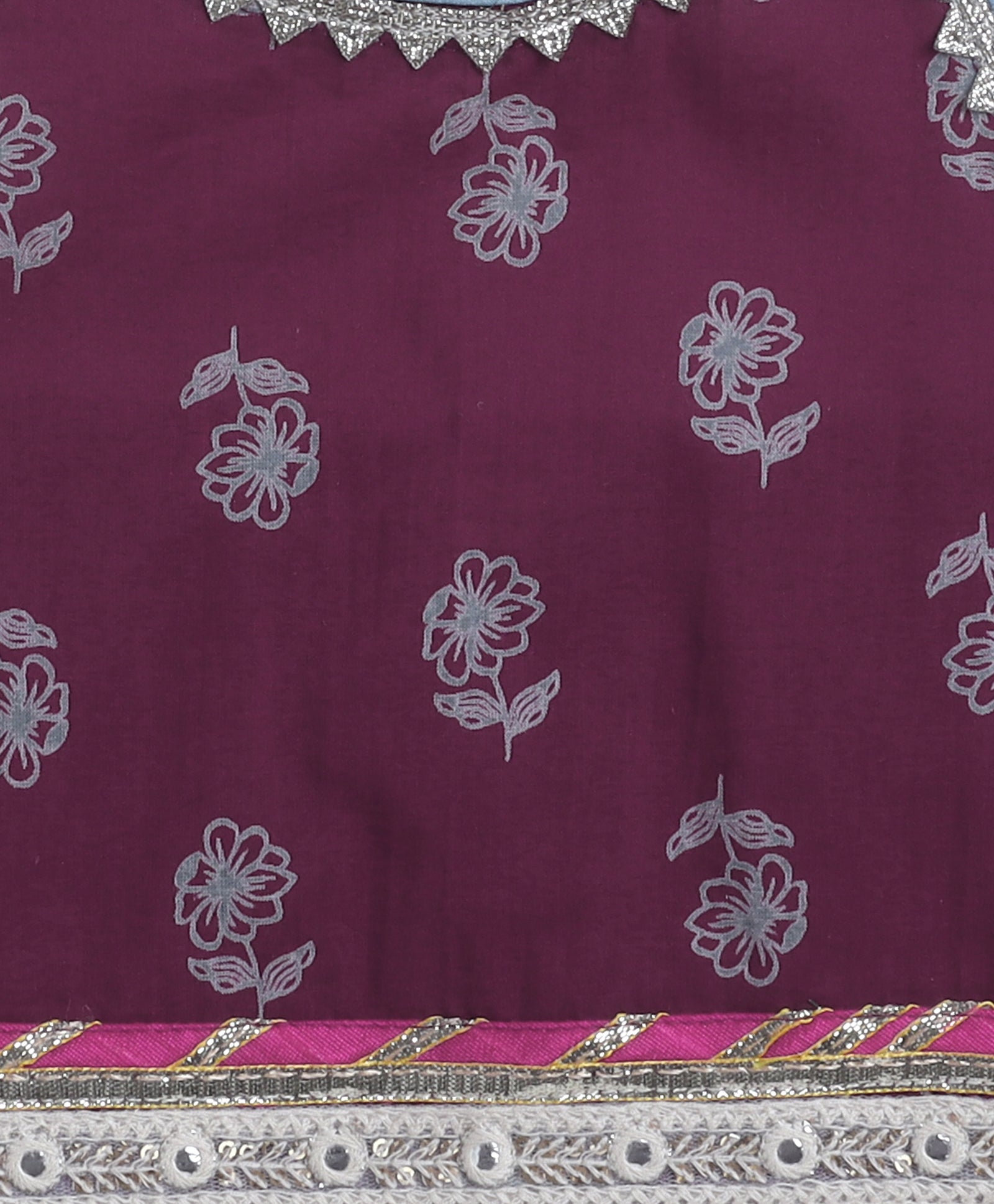 The Magic Wand Cambric Cotton Halter Neck AII Over Printed Choli and Lehenga with Dupatta Set- Wine