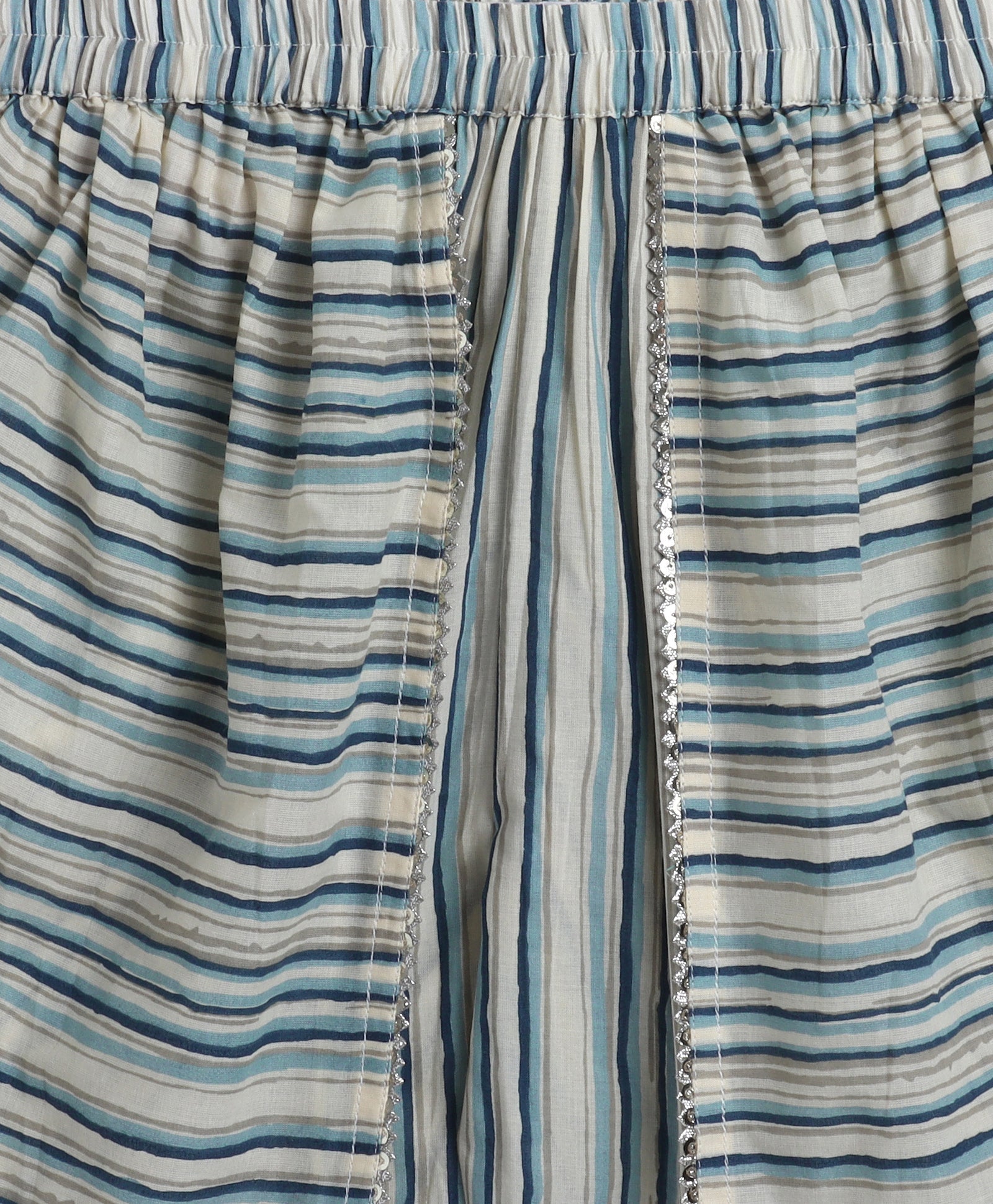 The Magic Wand Cambric Cotton Incut Floral Printed Gota Lace Top and Dhoti Set-Off White