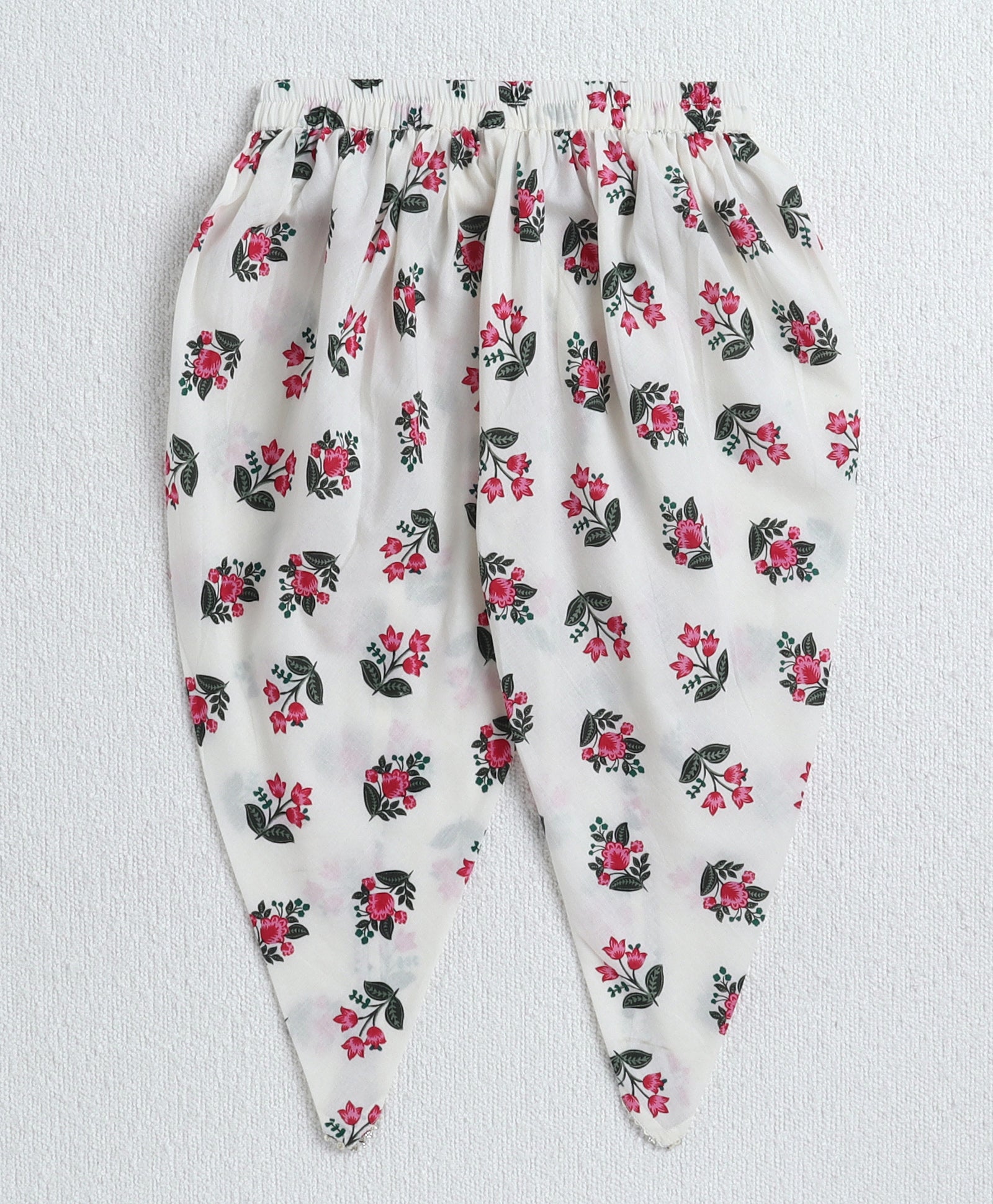 The Magic Wand Cambric Cotton Incut Floral Printed Gota Lace Top and Dhoti Set- White