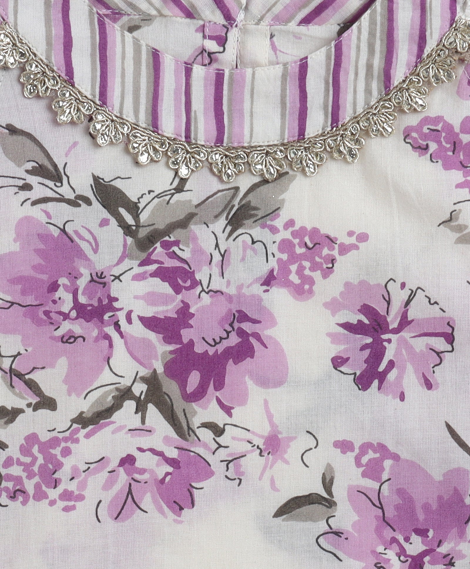 The Magic Wand Cambric Cotton Incut Neck Floral Printed Gota Lace Top and Dhoti Set-Off White